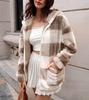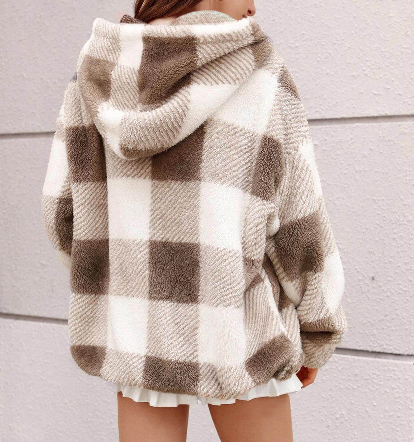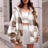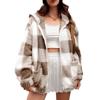 Chaqueta de felpa con capucha y estampado a cuadros, informal, de moda, para mujer, talla grande, transfronteriza entre Europa y América, de Amazon