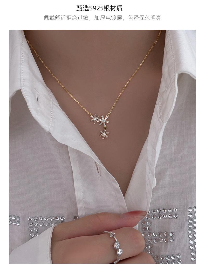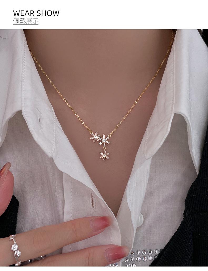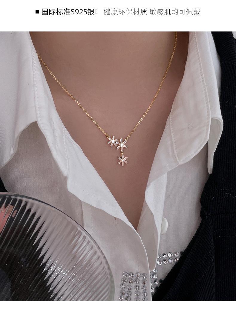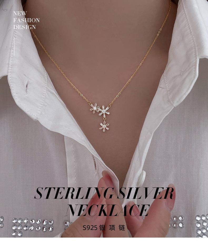 Collar de plata de ley S925 con flores frescas y dulces para mujer, de lujo, con cristales de hielo románticos y copos de nieve, joyería de alta calidad.