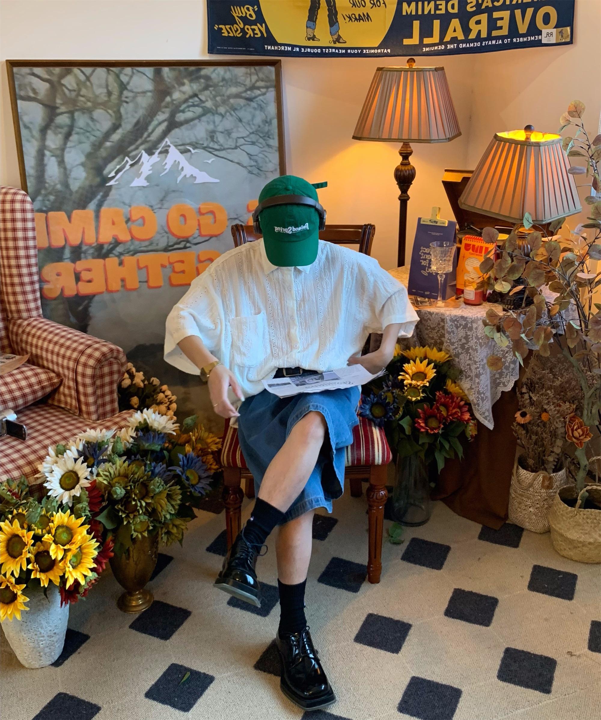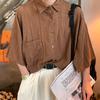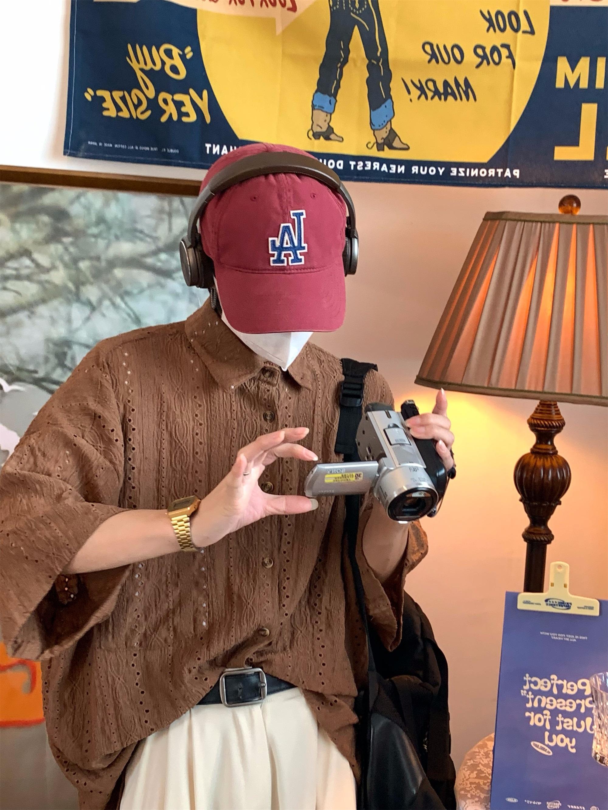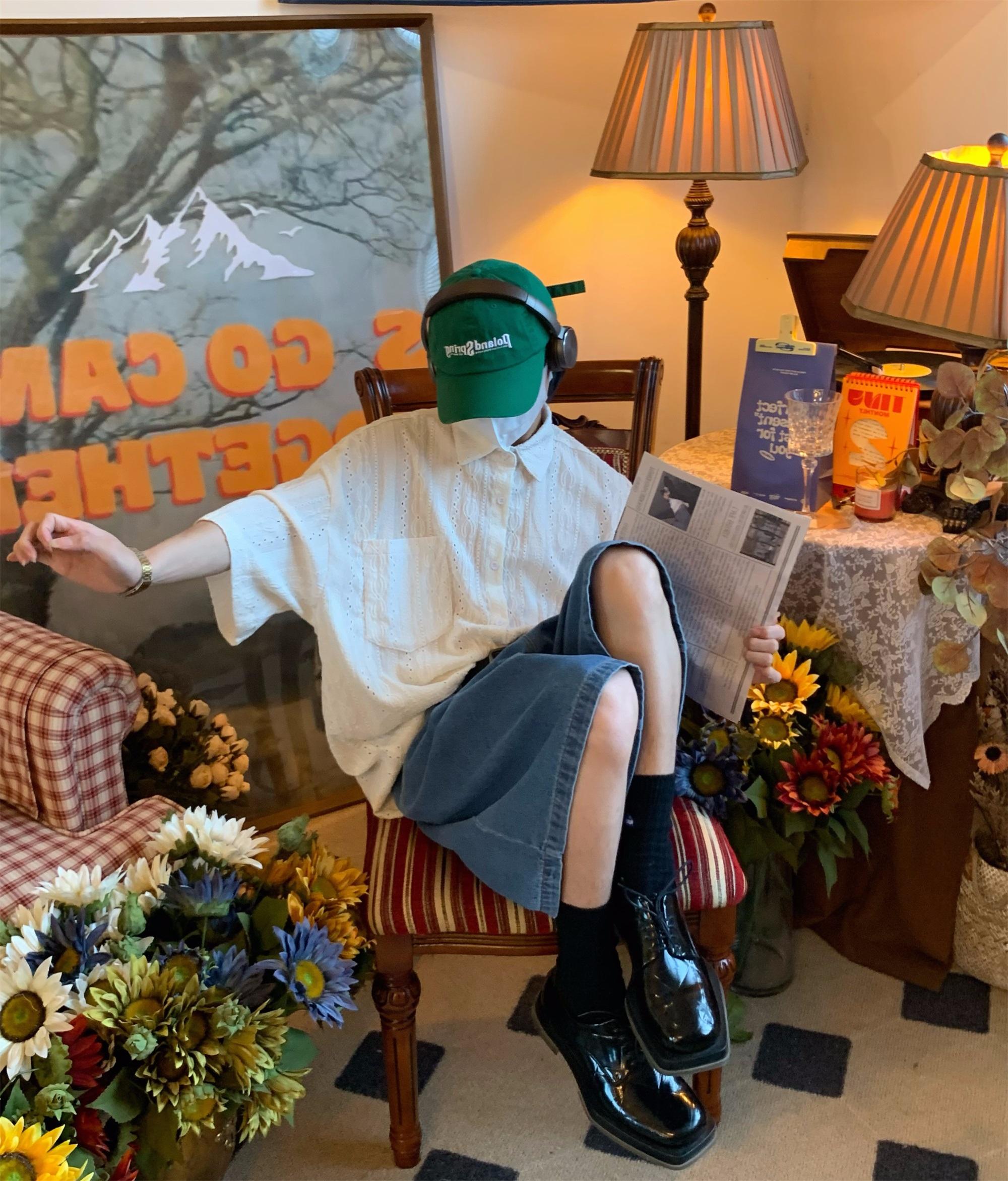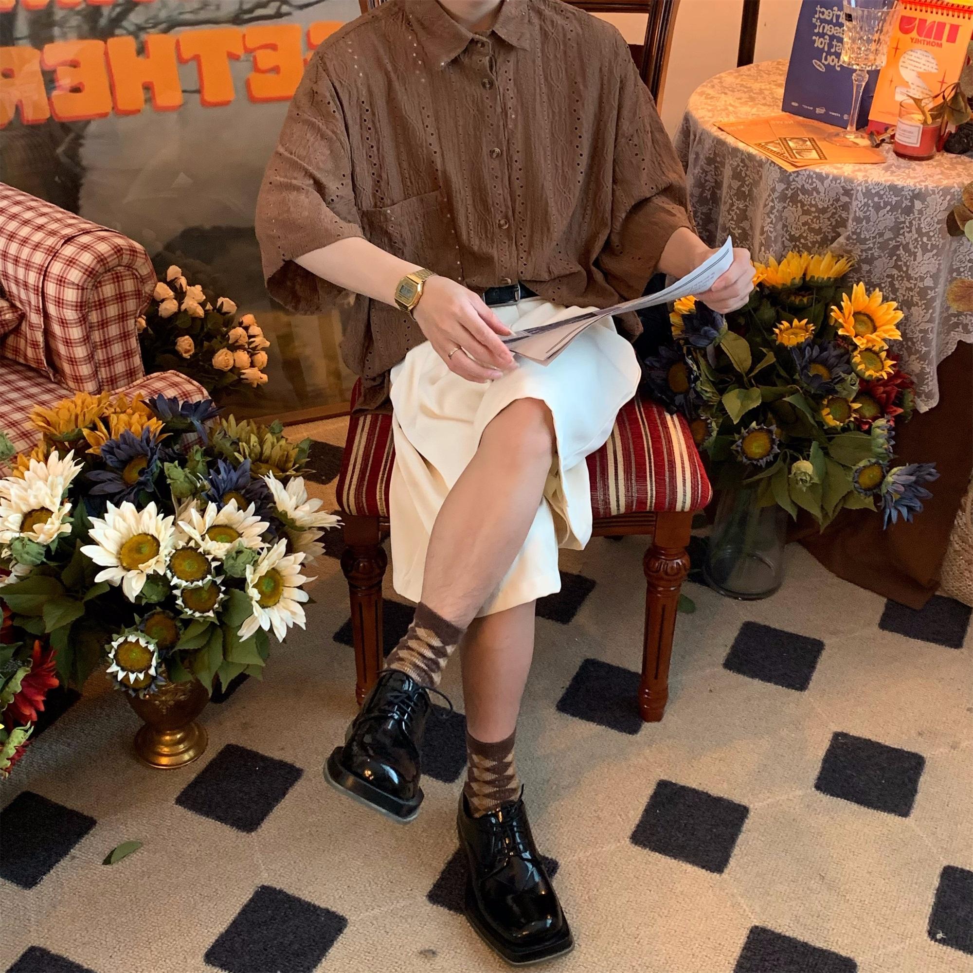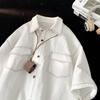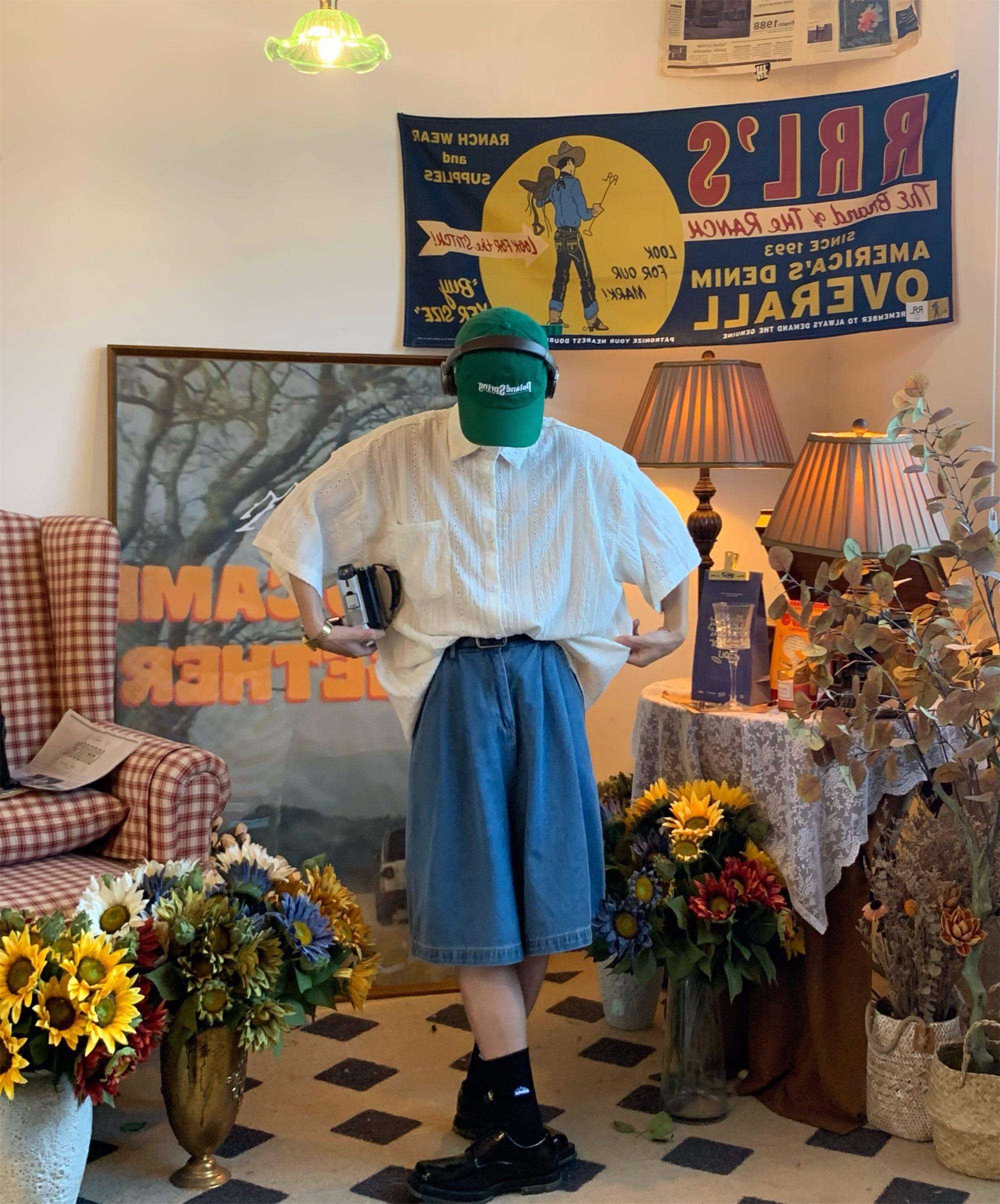 Camisa de manga corta hueca estilo japonés retro simple para hombre, diseño fino de verano, estilo neutro, perezoso y moderno.
