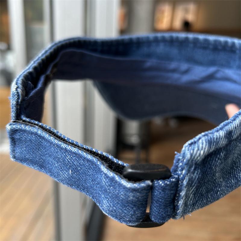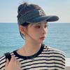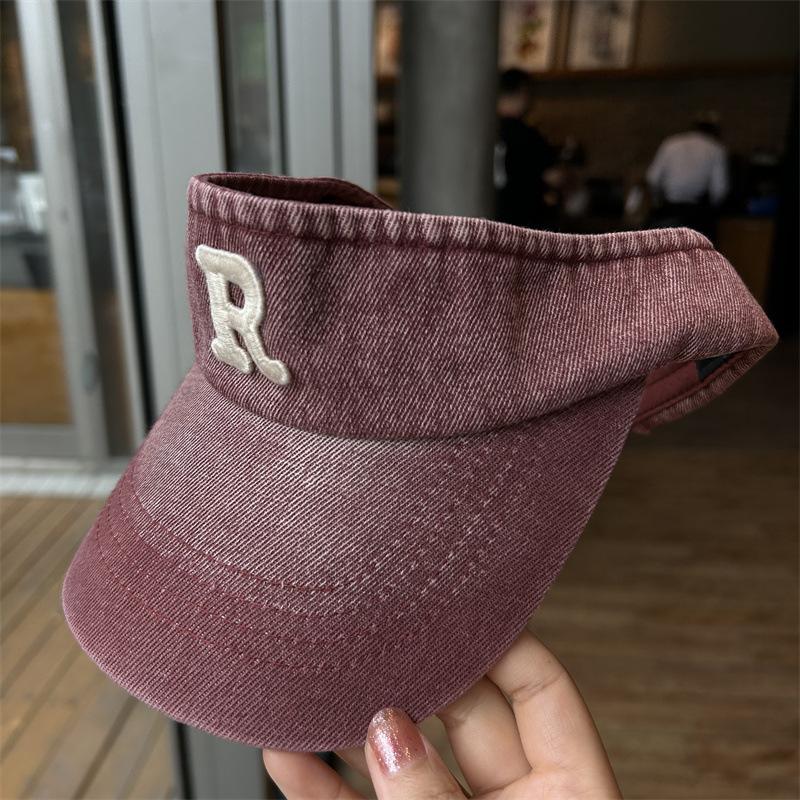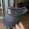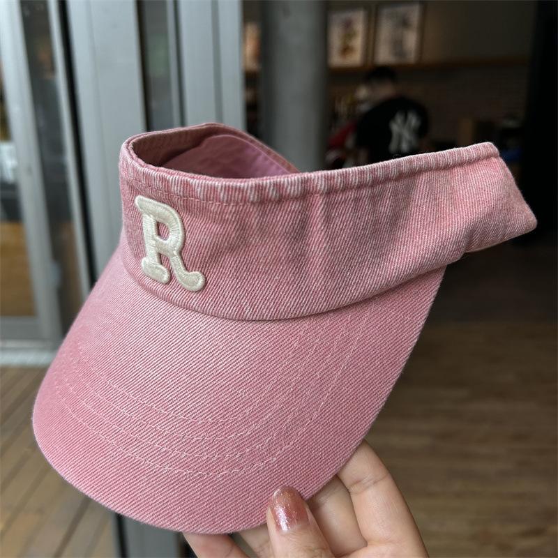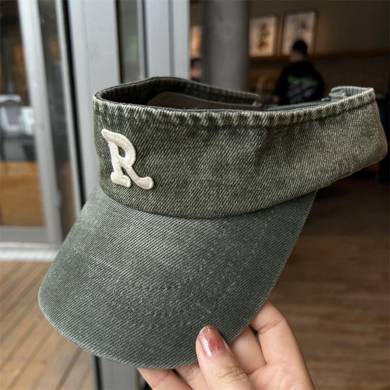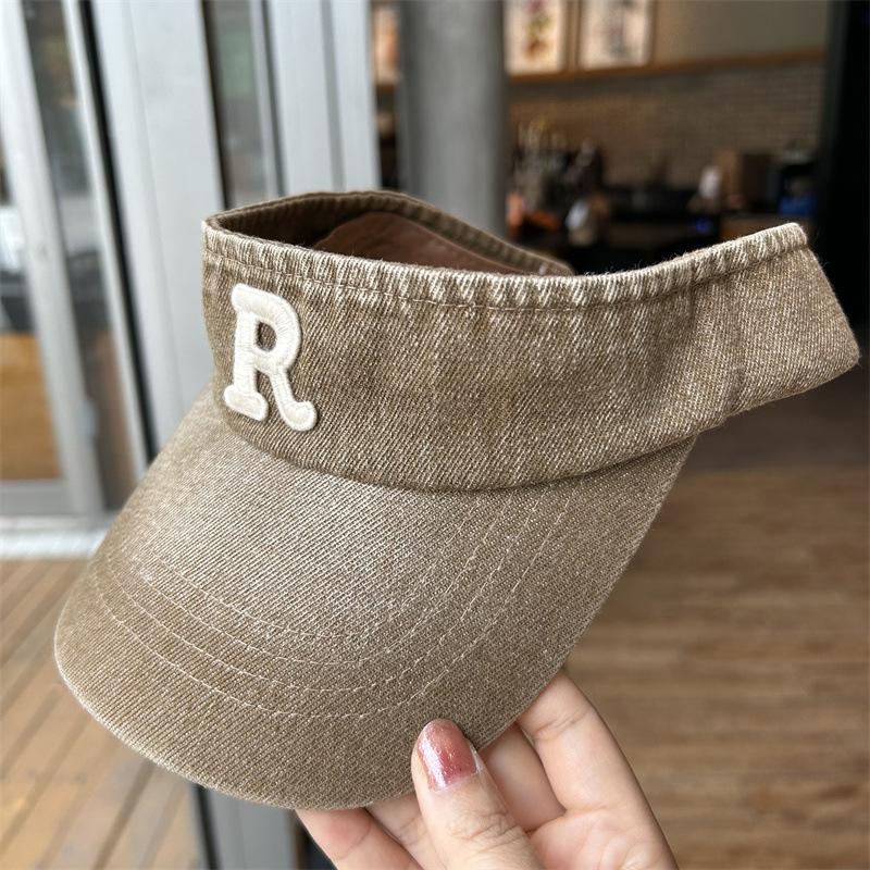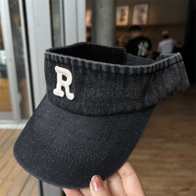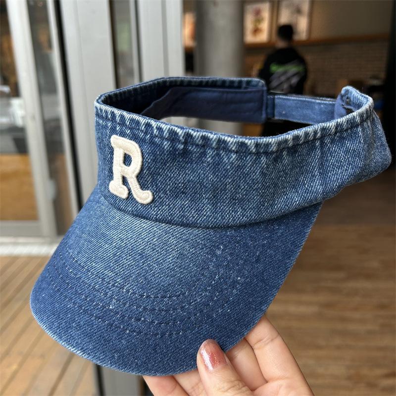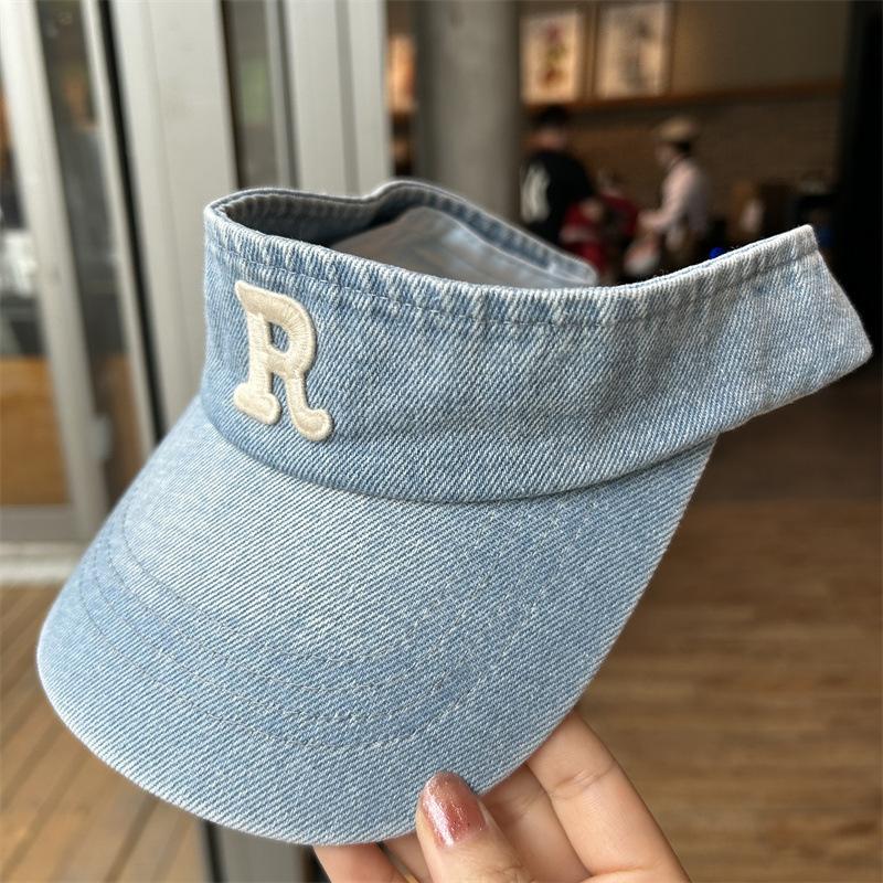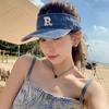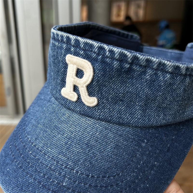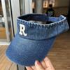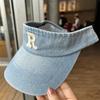 Gorra con visera letra R a prueba de sol de verano Denim sombrero de copa vacía para mujer viaje al aire libre sombrero para el sol cubre la cara sombrero para el sol combinable