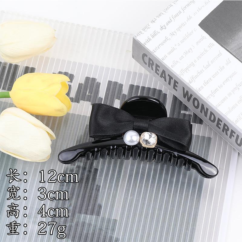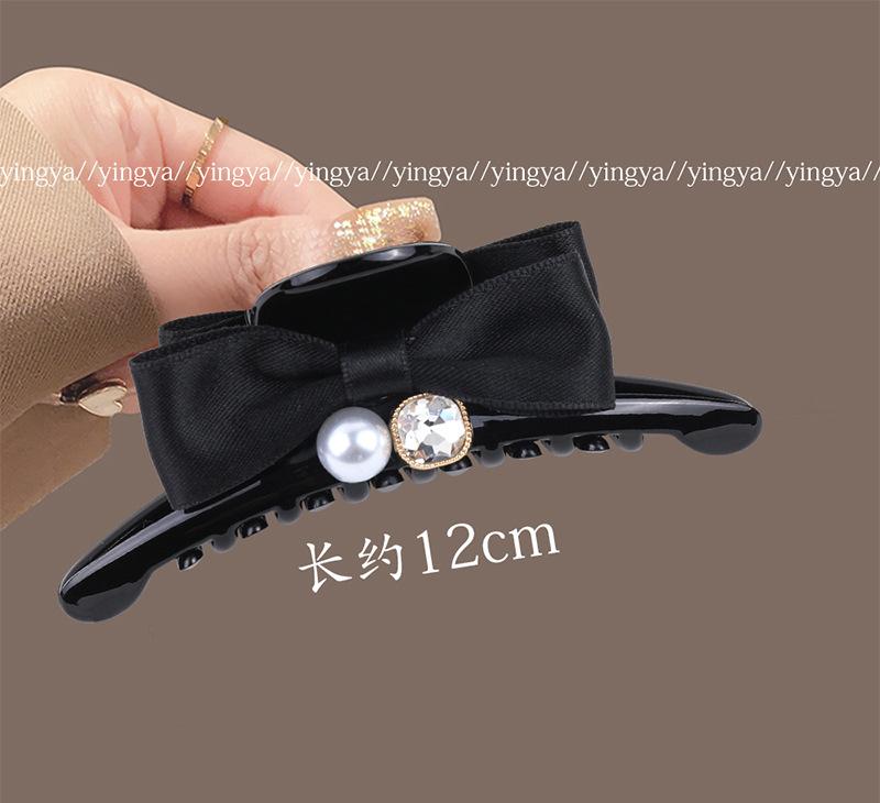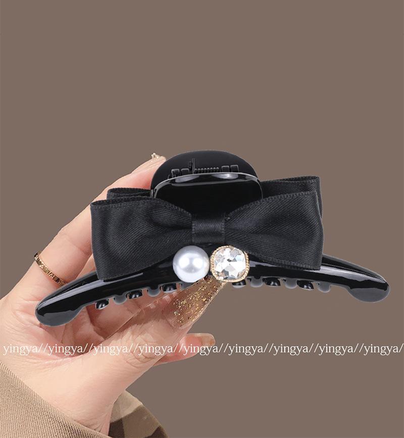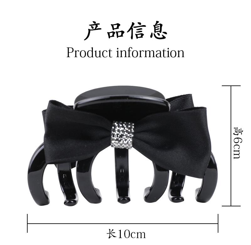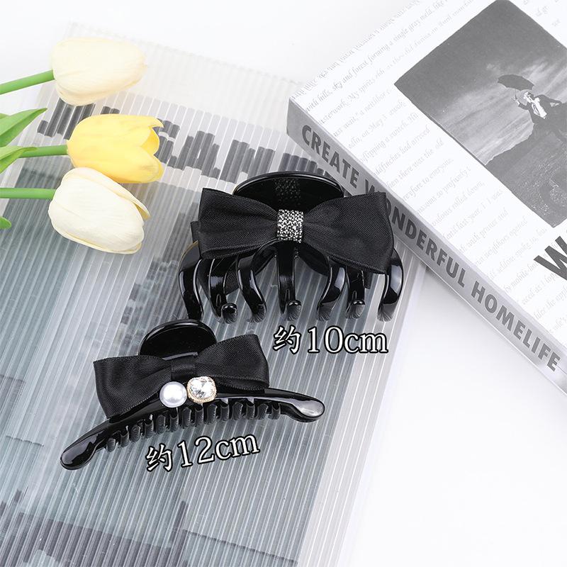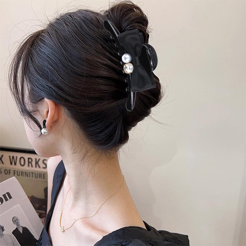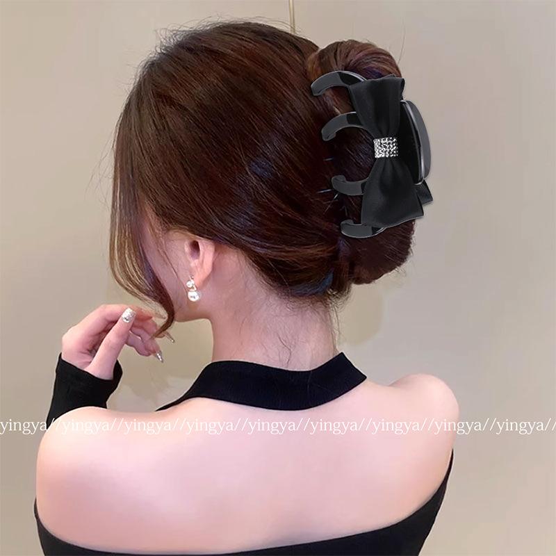 Horquilla de lazo de satén estilo francés para mujer, coreana, con pedrería, de tela, pinza para la parte posterior de la cabeza, adorno para el cabello