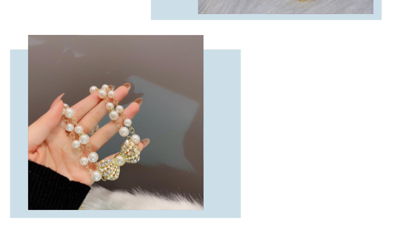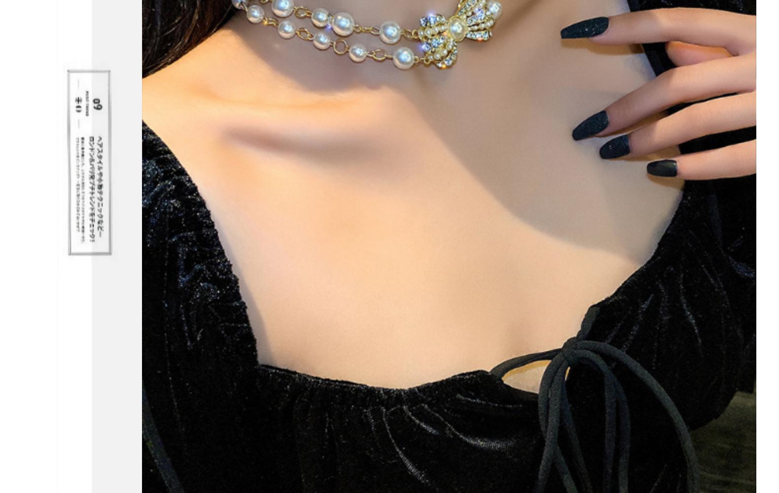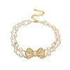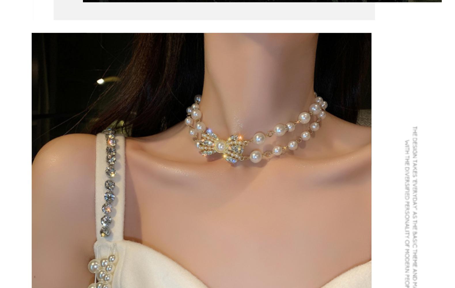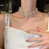 Collar de cadena de clavícula con lazo de diamantes y perlas de doble capa, diseño de moda retro europeo y americano, elegante y ligero de lujo con diseño de celebridades de Internet.