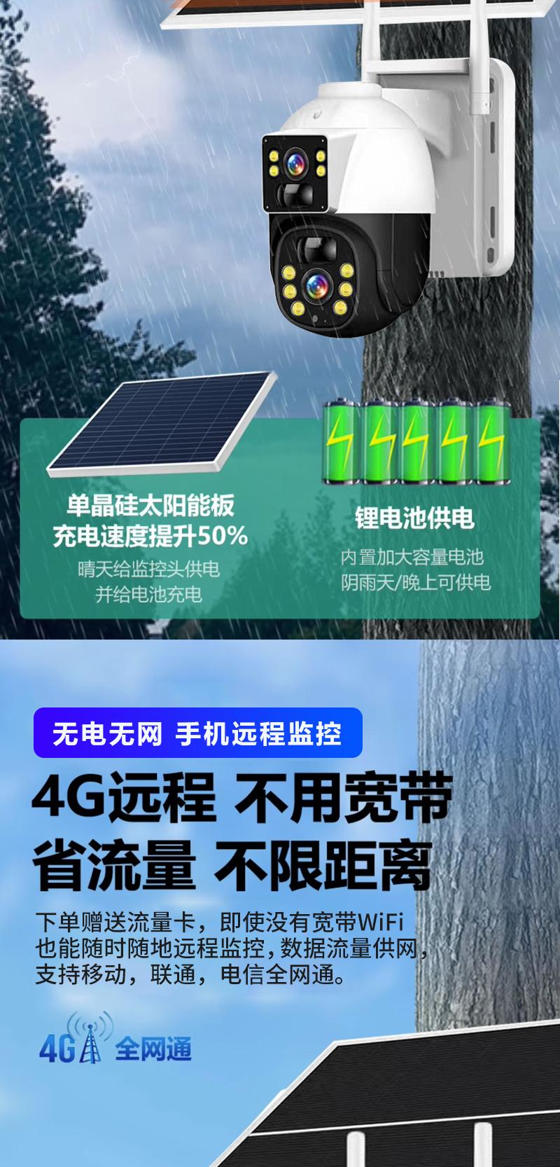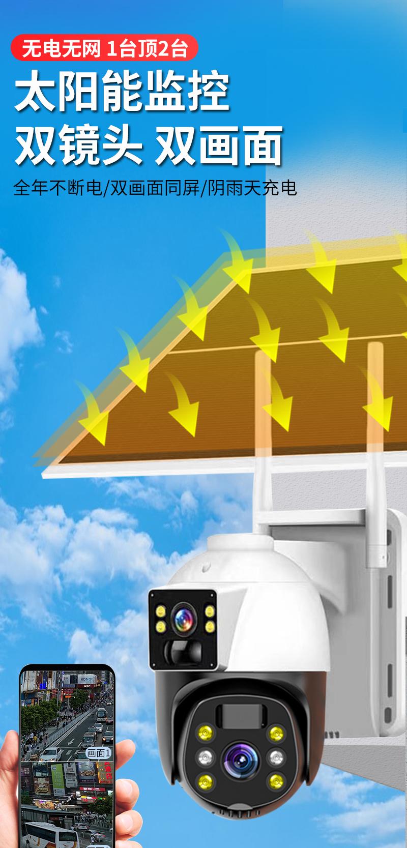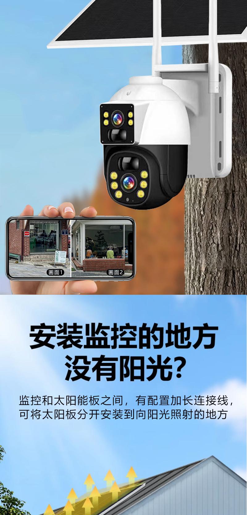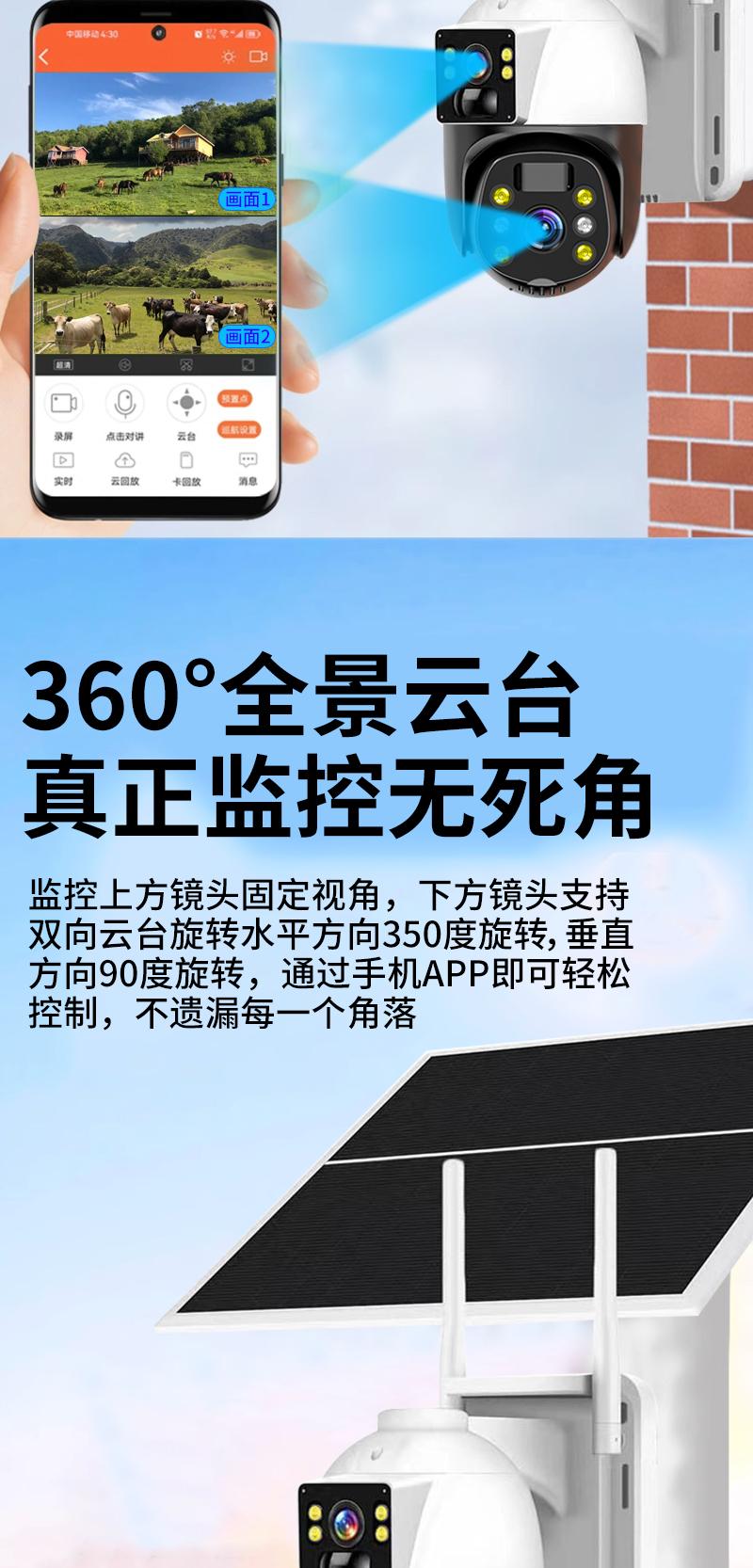 Cámara de Vigilancia Solar de Doble Imagen Exterior Red 4g Remota para Teléfono Móvil Hogar Alarma Panorámica de 360 Grados