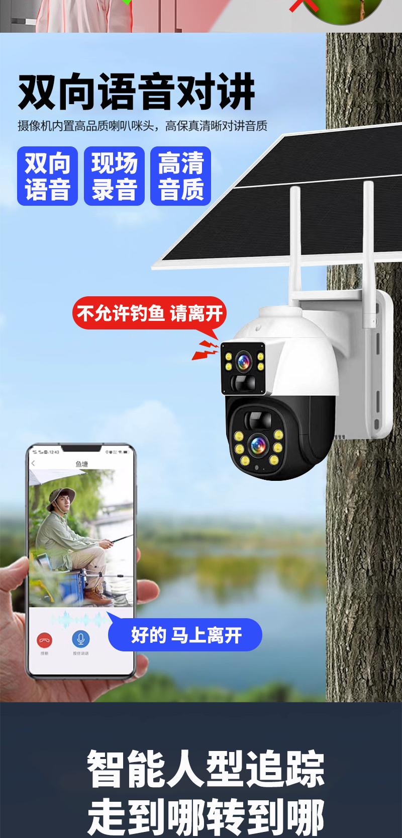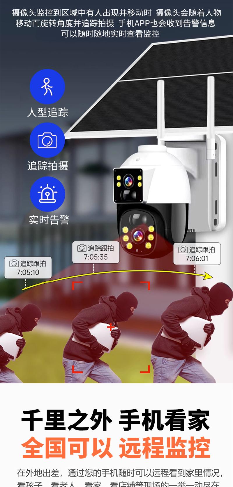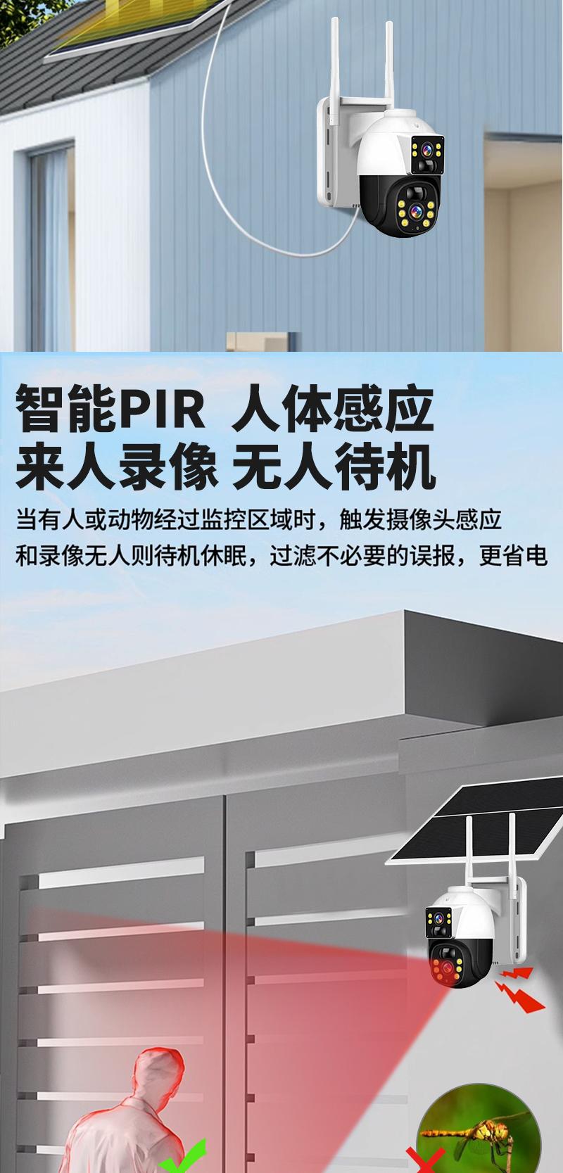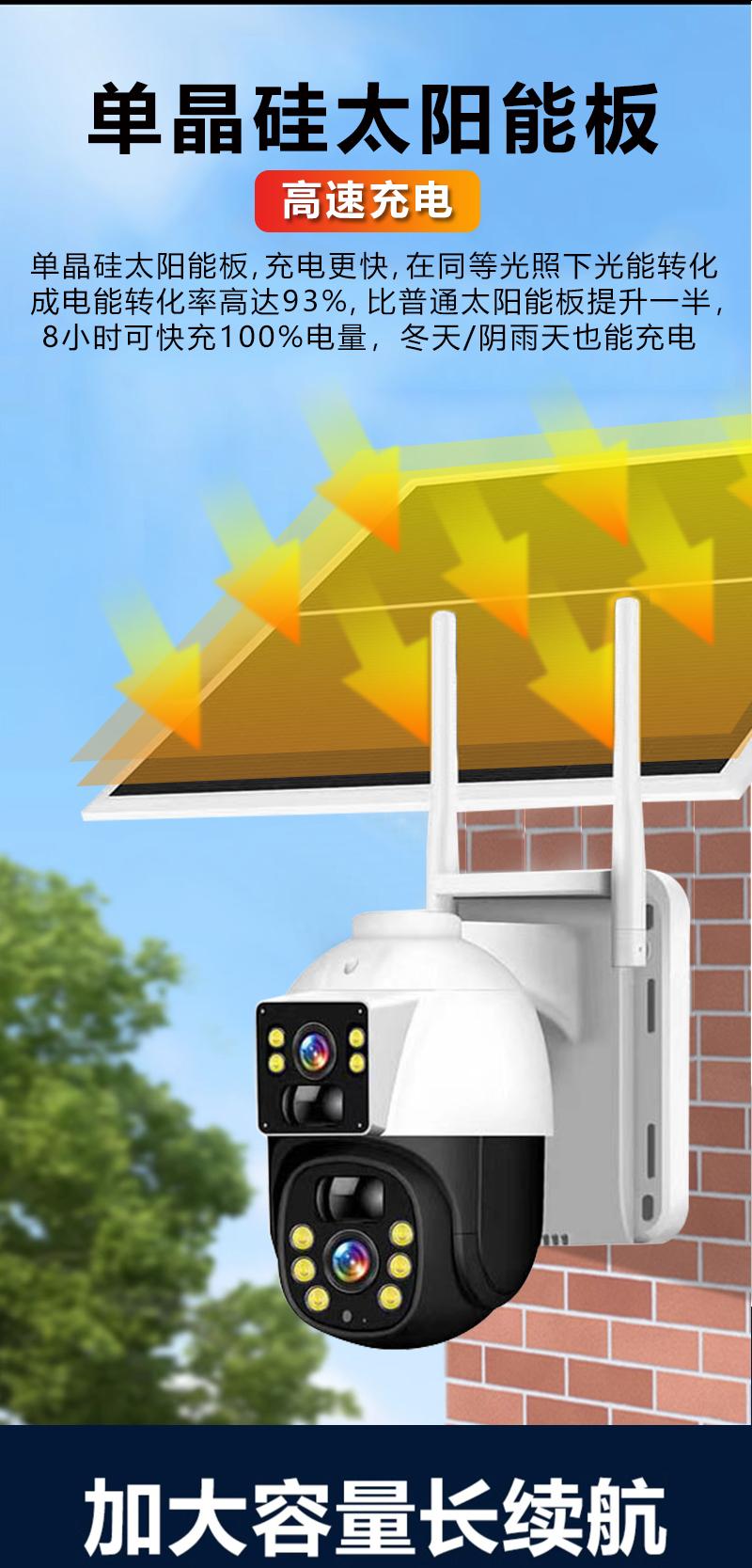 Cámara de Vigilancia Solar de Doble Imagen Exterior Red 4g Remota para Teléfono Móvil Hogar Alarma Panorámica de 360 Grados
