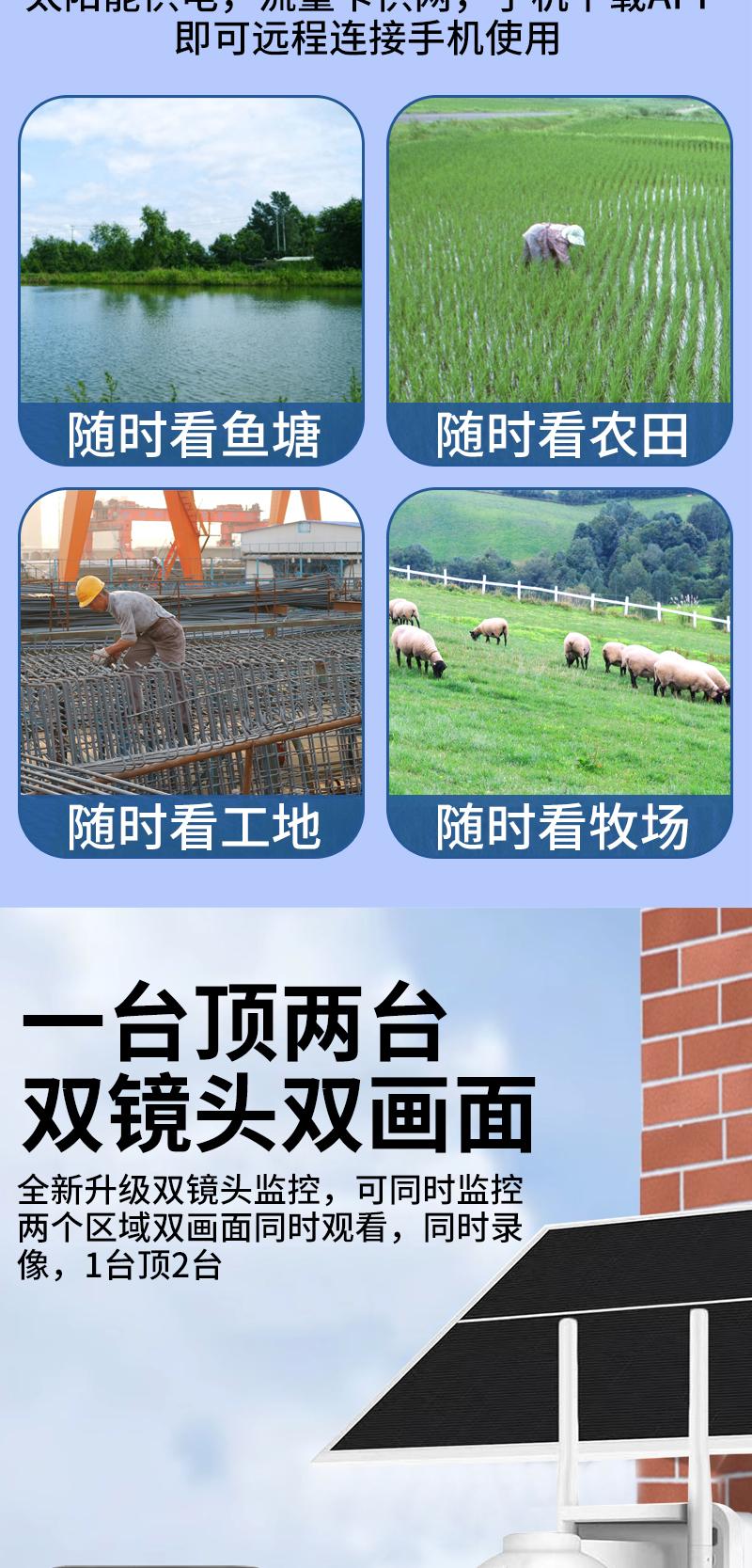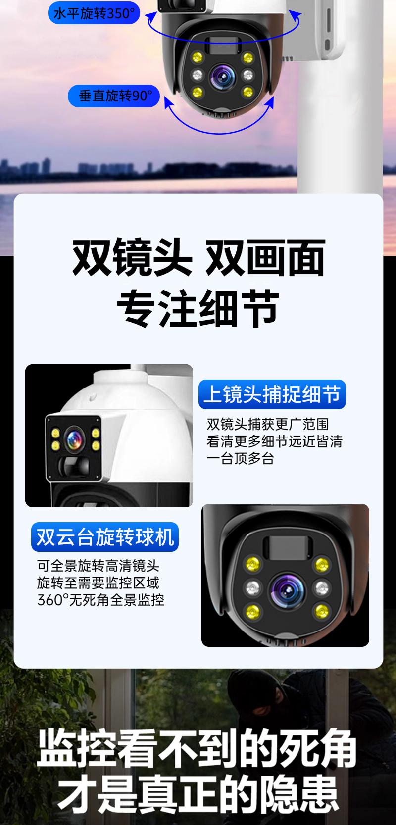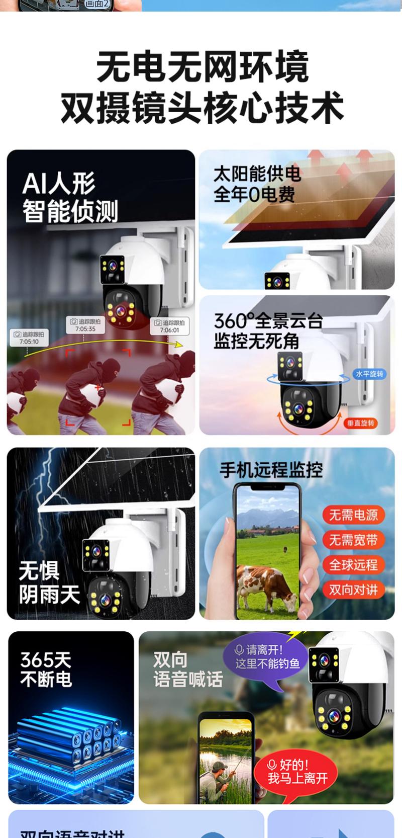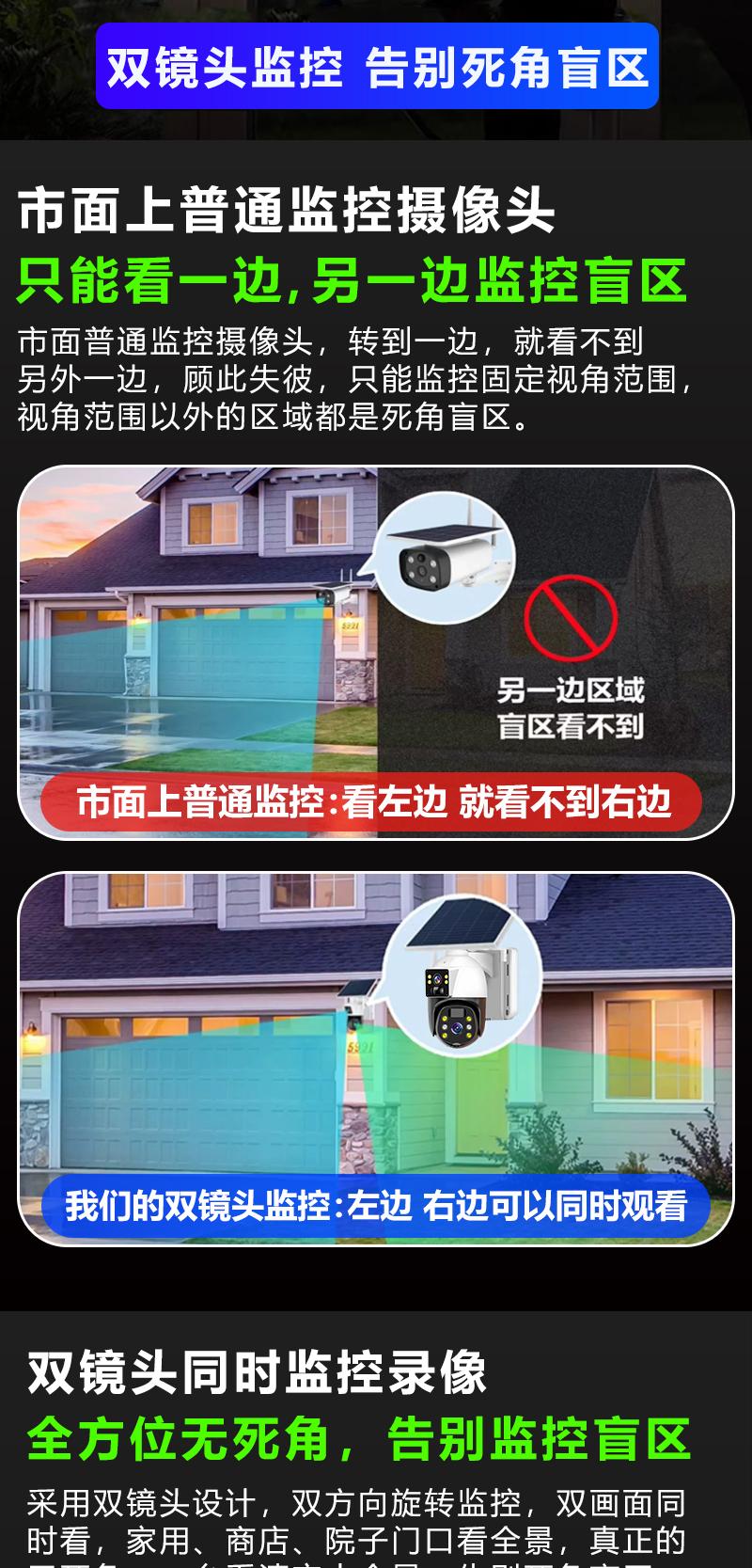Cámara de Vigilancia Solar de Doble Imagen Exterior Red 4g Remota para Teléfono Móvil Hogar Alarma Panorámica de 360 Grados