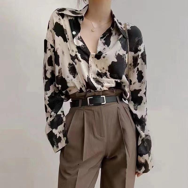 Buena Tela Otoño 2024 Camisa Casual Estampado Leopardo para Mujer Verano Estilo Coreano Retro Estilo Hong Kong Nicho Holgada Manga Larga Protección Solar