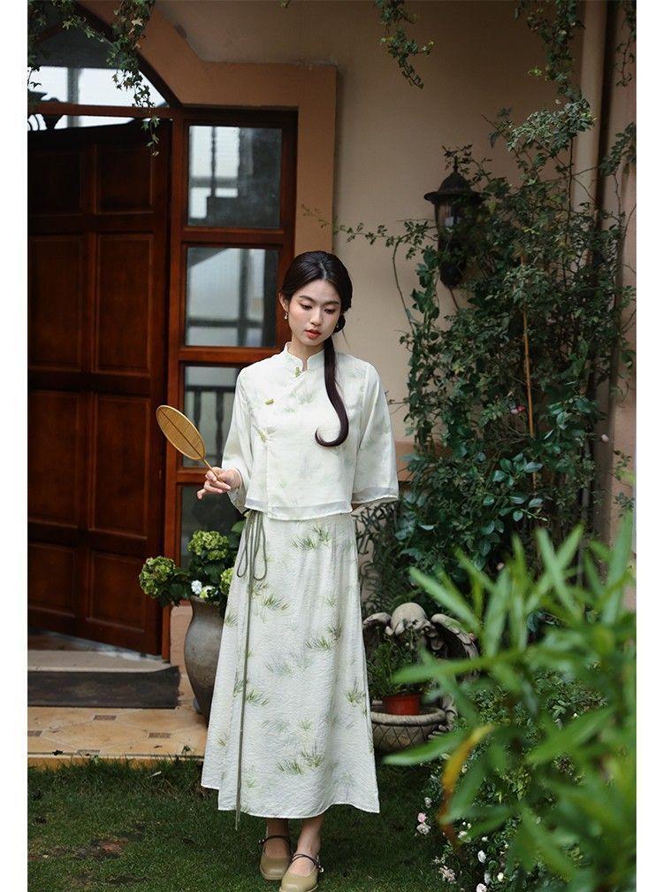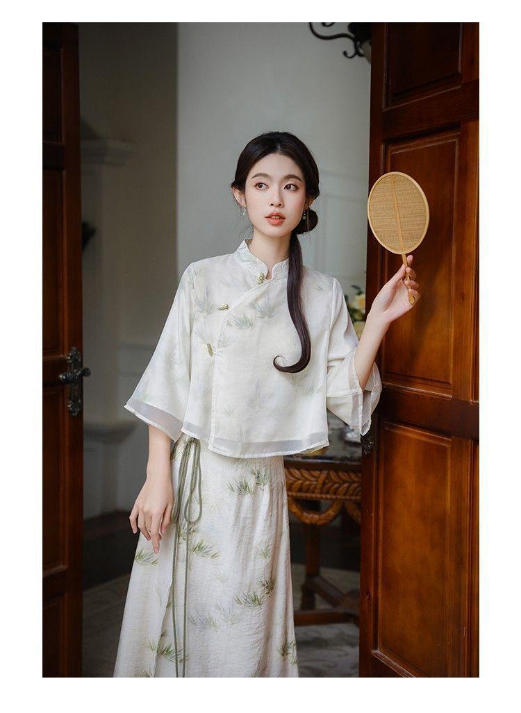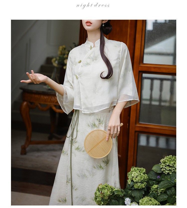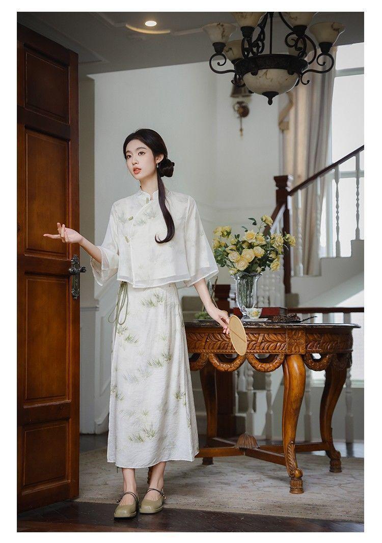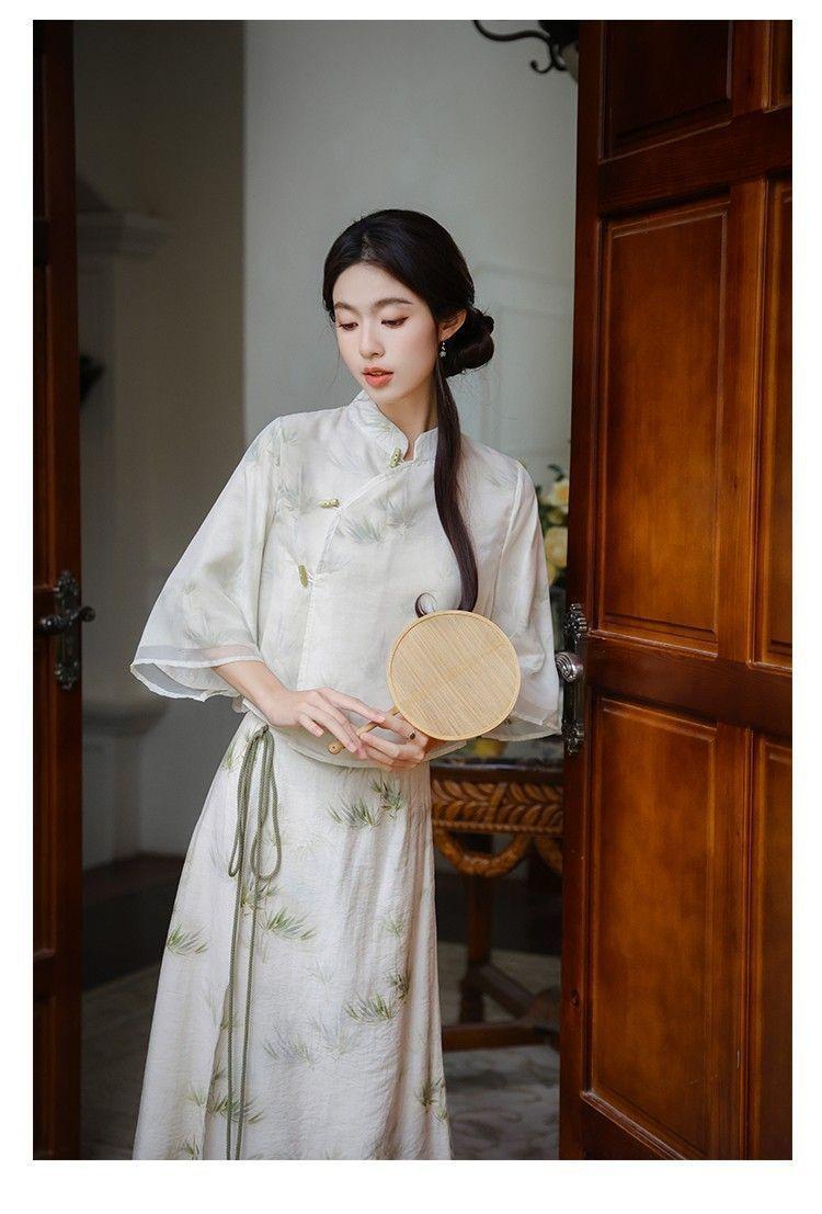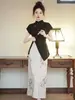 Traje de estilo nacional chino 2024, elegante estilo zen, ropa de mujer de dos piezas, cheongsam modificado para verano
