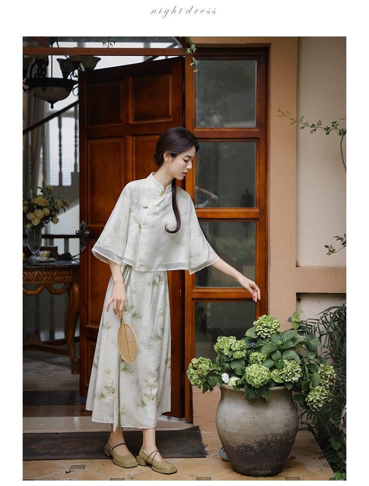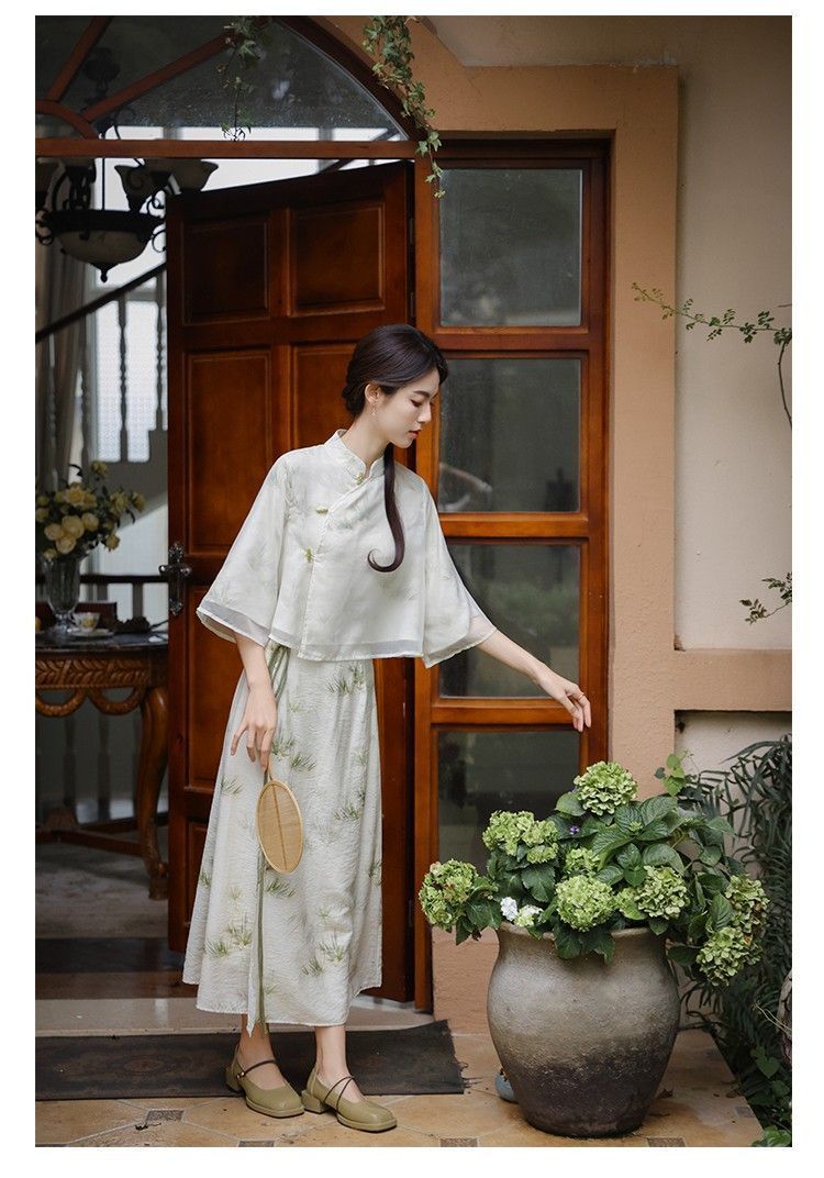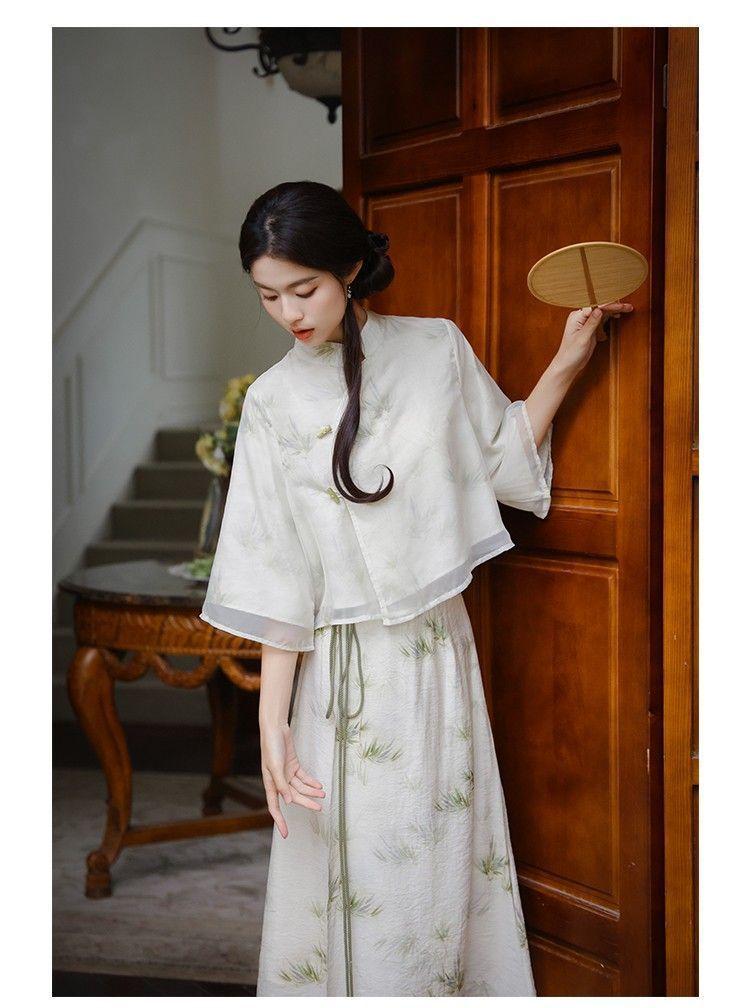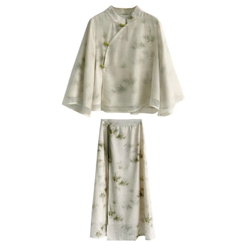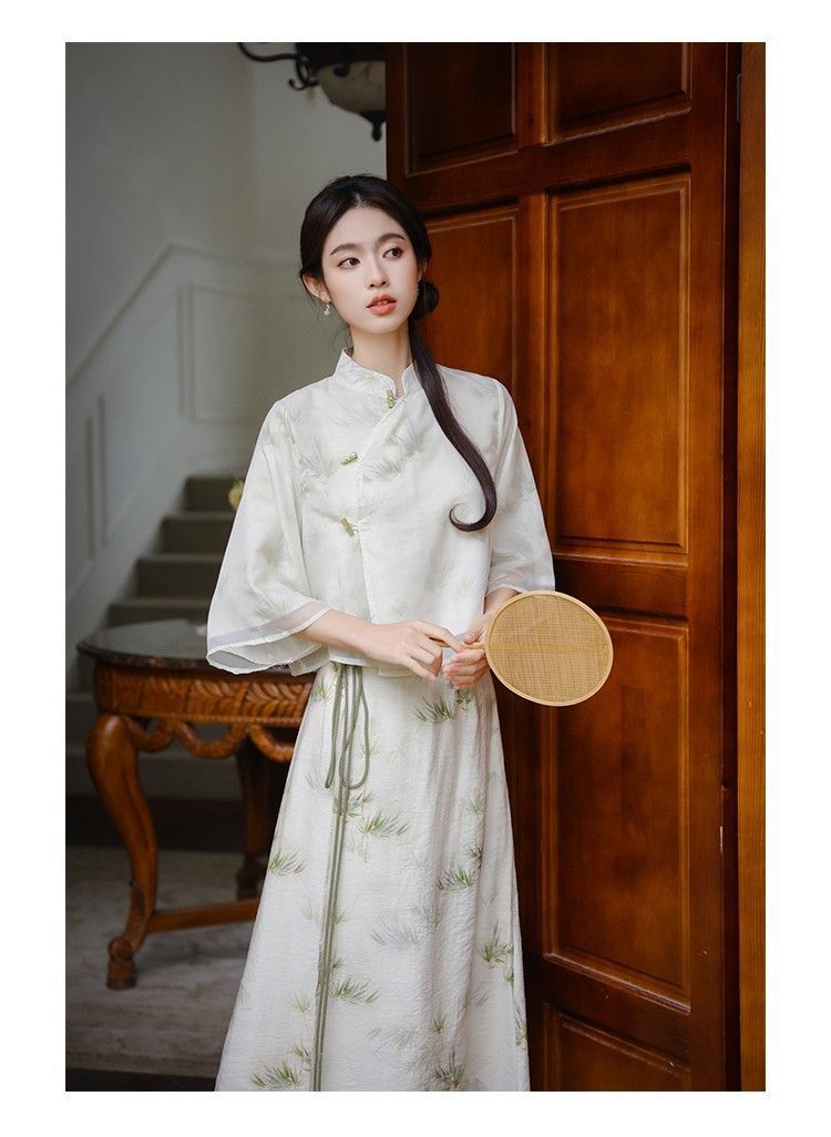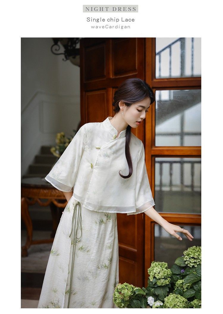 Traje de estilo nacional chino 2024, elegante estilo zen, ropa de mujer de dos piezas, cheongsam modificado para verano