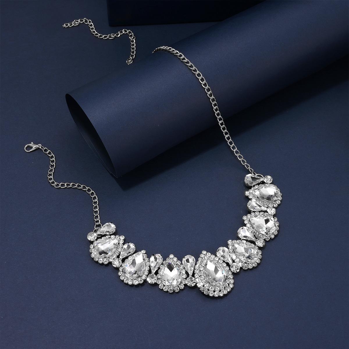 Collar de Cadena con Diamantes Exagerados de Personalidad Europea y Americana, Colgante de Diamante de Cristal en Forma de Gota, Accesorios Super Brillantes para Banquete, Accesorios Nupciales