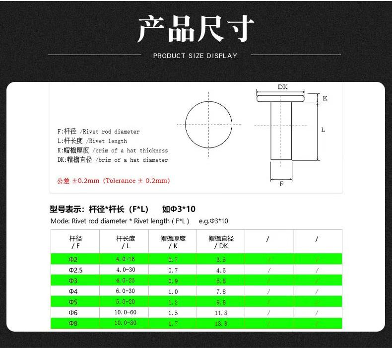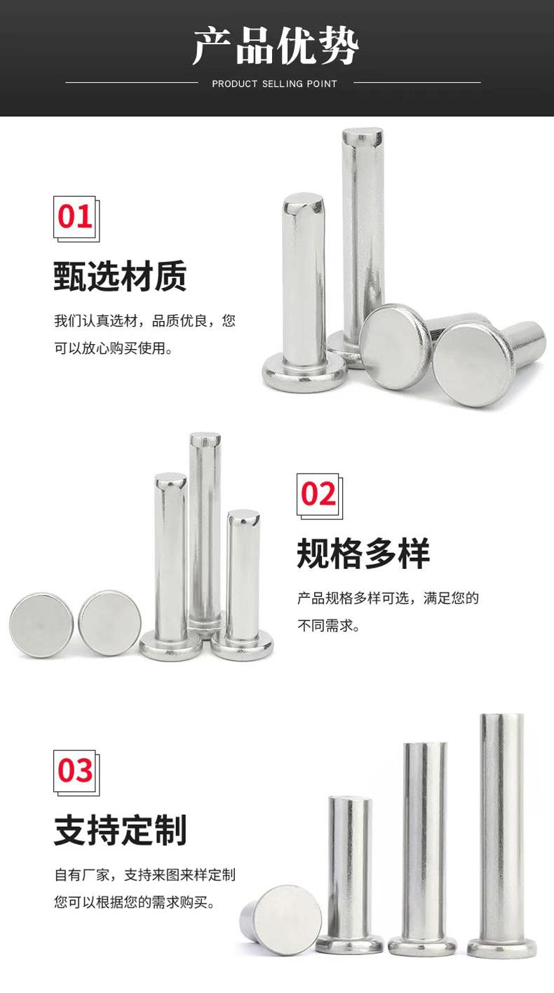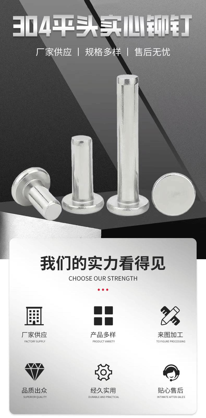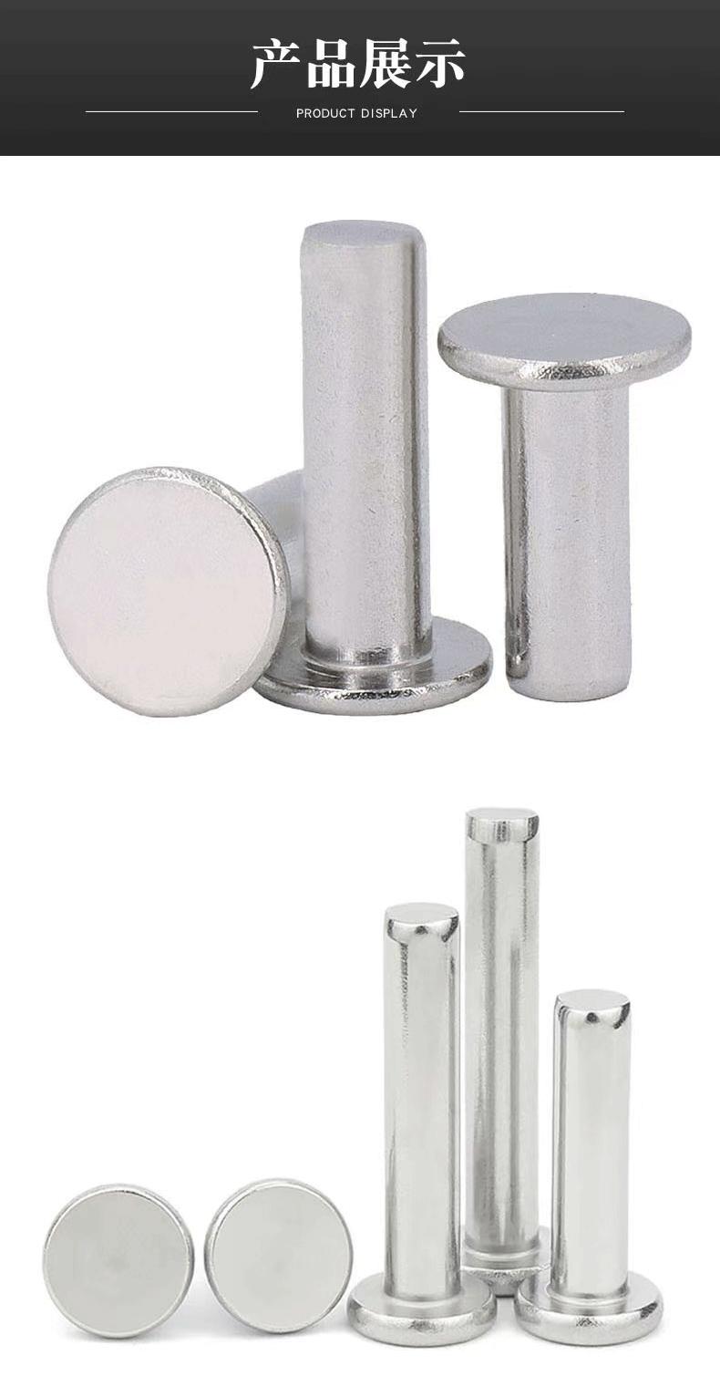 Remaches sólidos de cabeza plana personalizados, acero al carbono niquelado, acero inoxidable 304, estándar nacional GB109, remaches de cabeza plana de percusión.