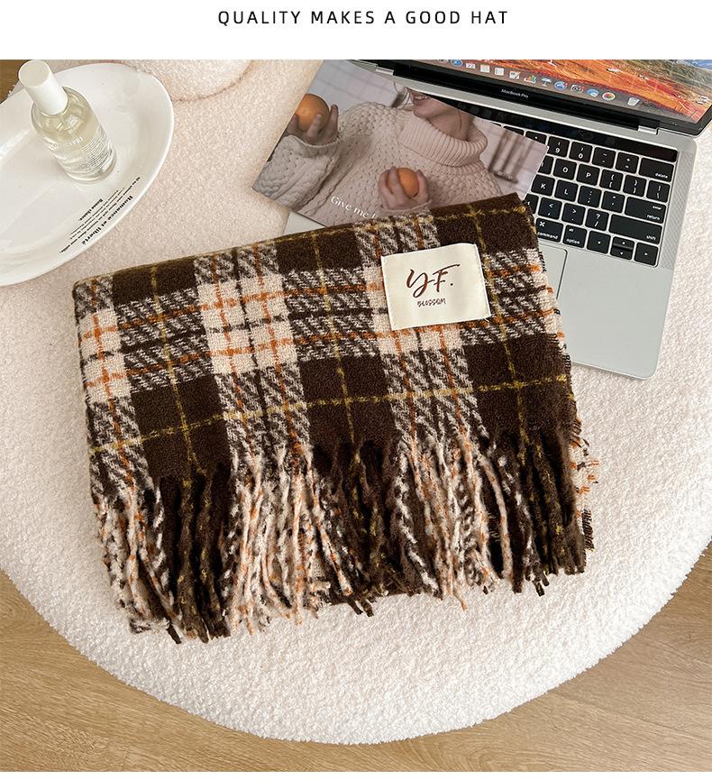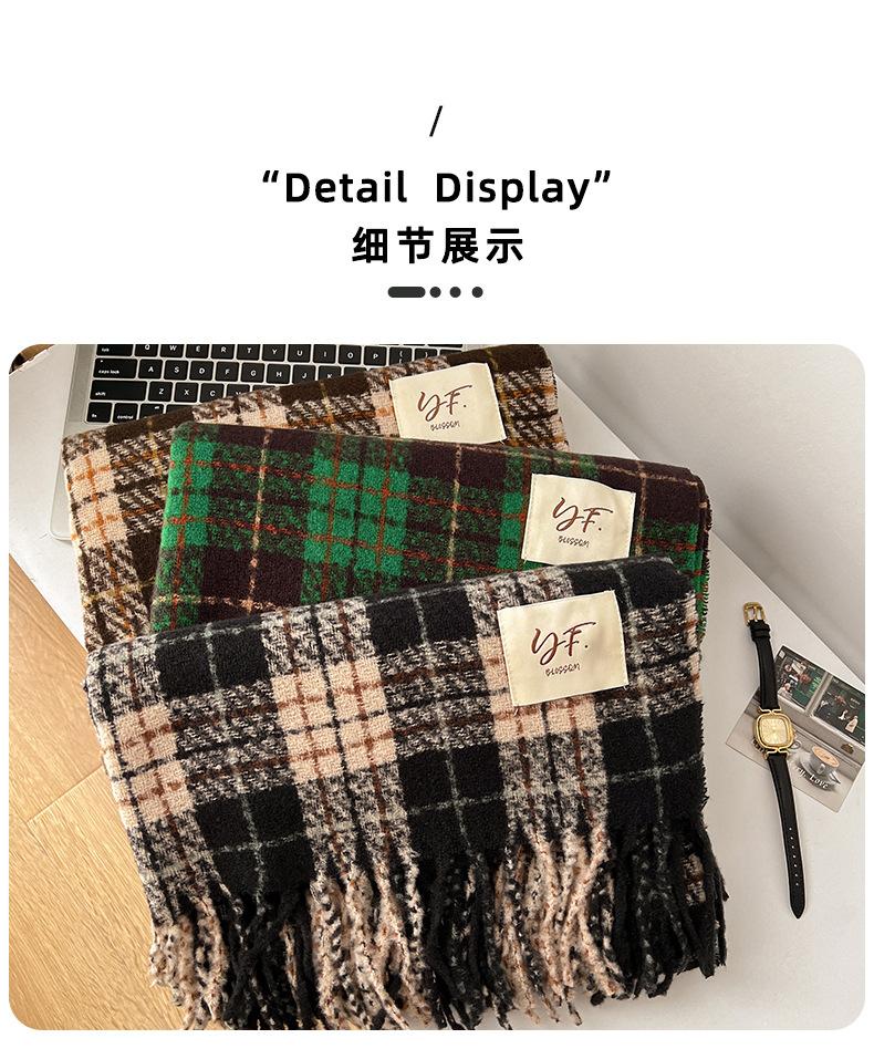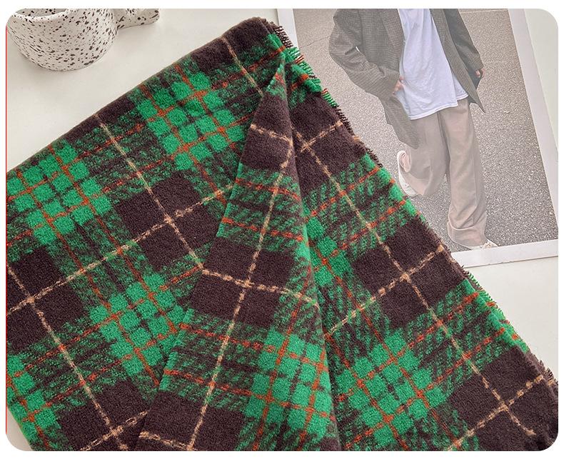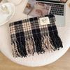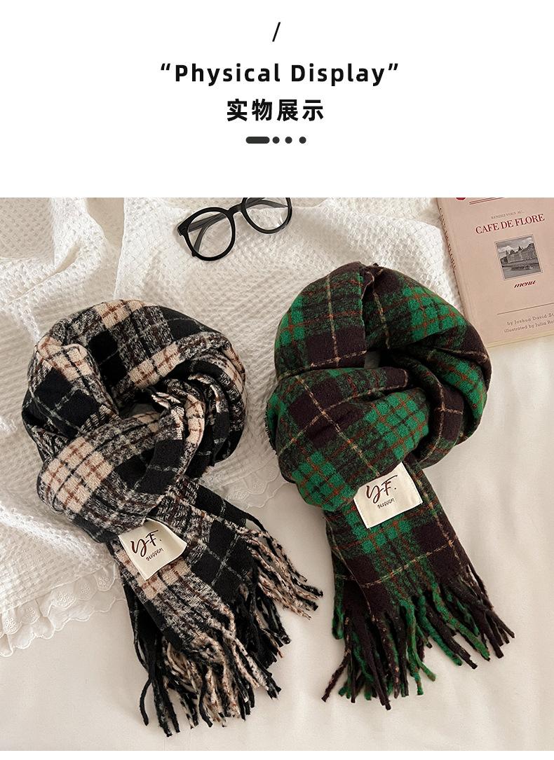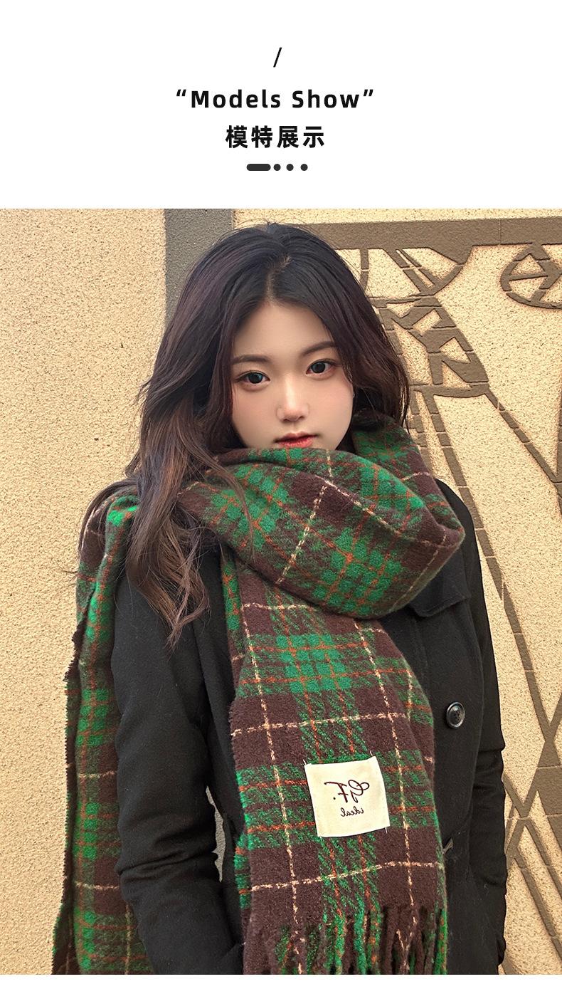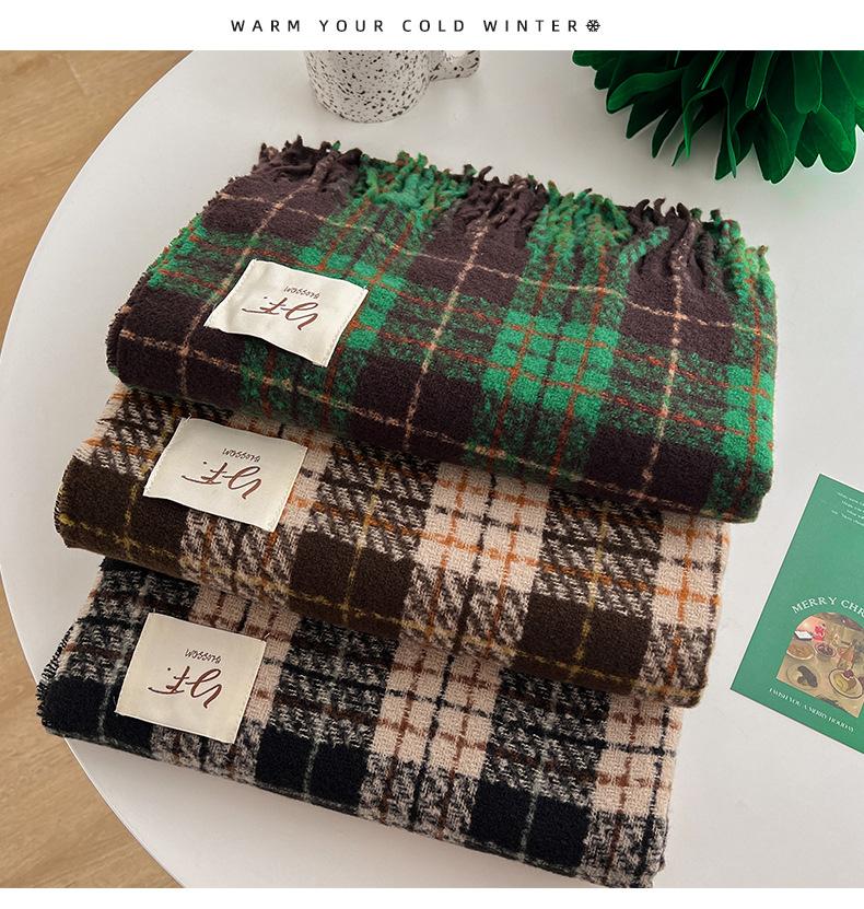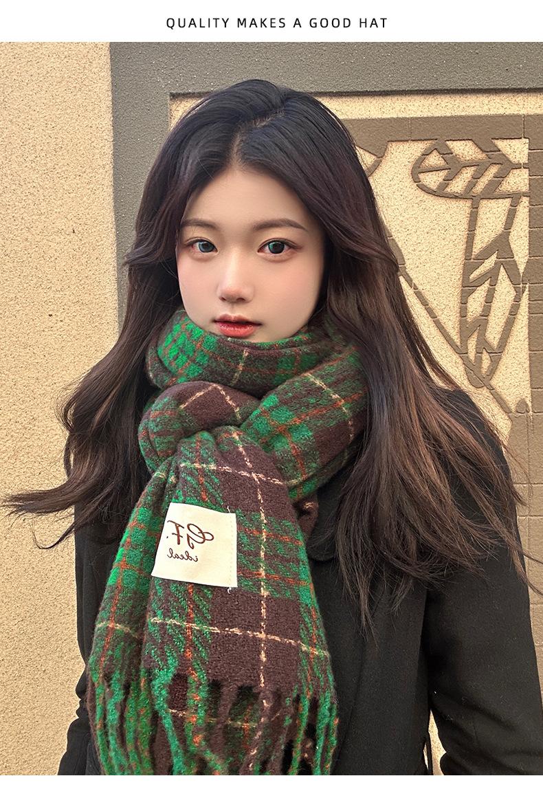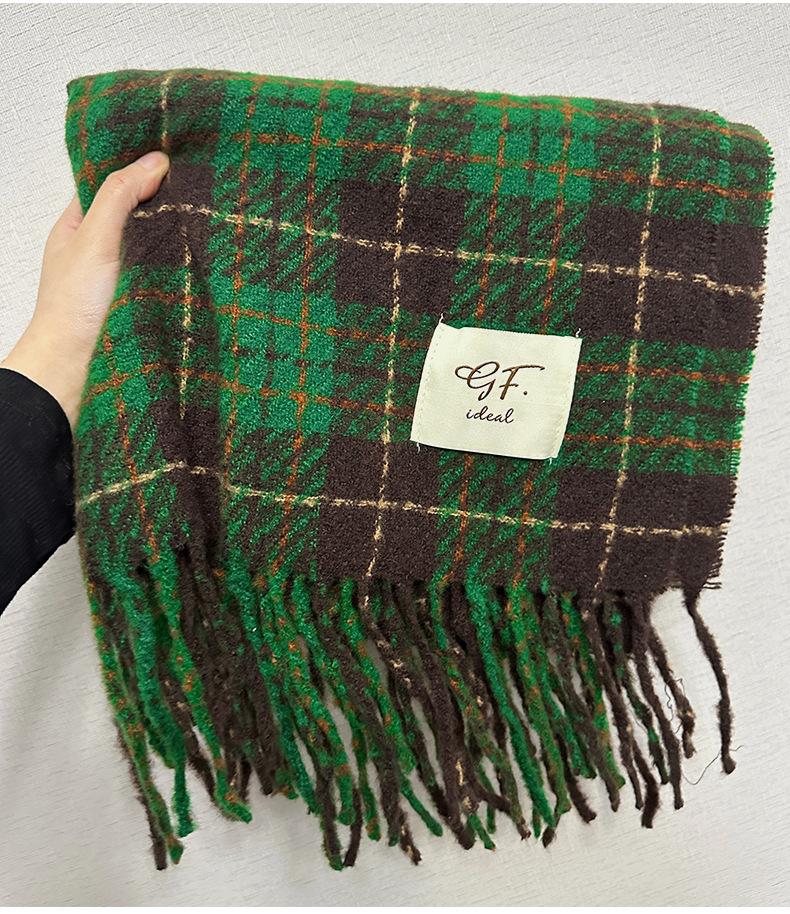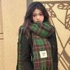 Bufanda de Cuadros Verdes con Borlas para Mujer Estilo Coreano Combinable Imitación Cachemira Forrada Gruesa a Prueba de Frío Bufanda Chal de Invierno para Estudiantes