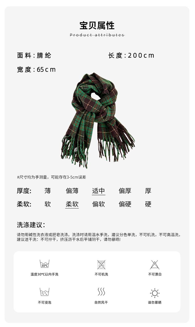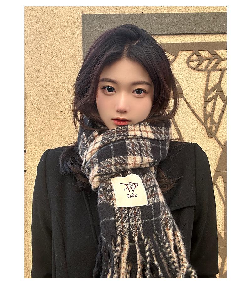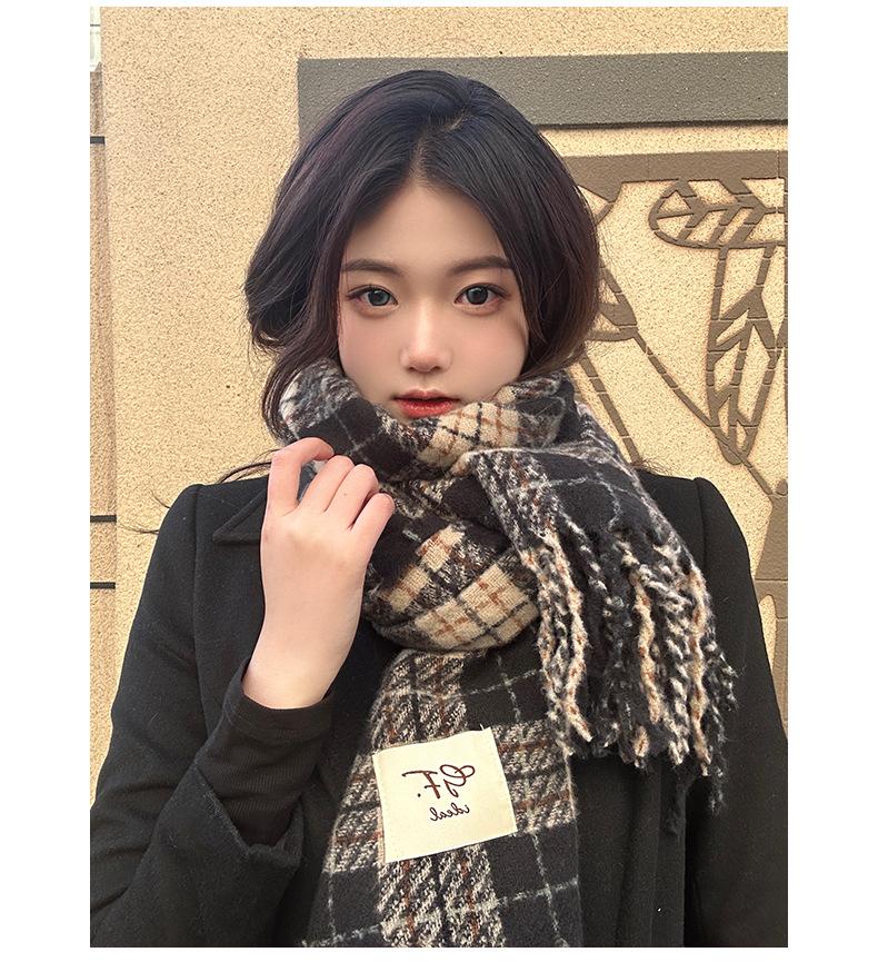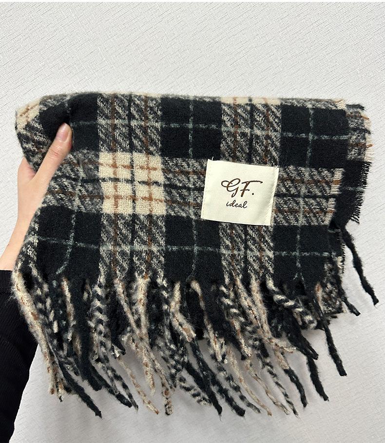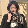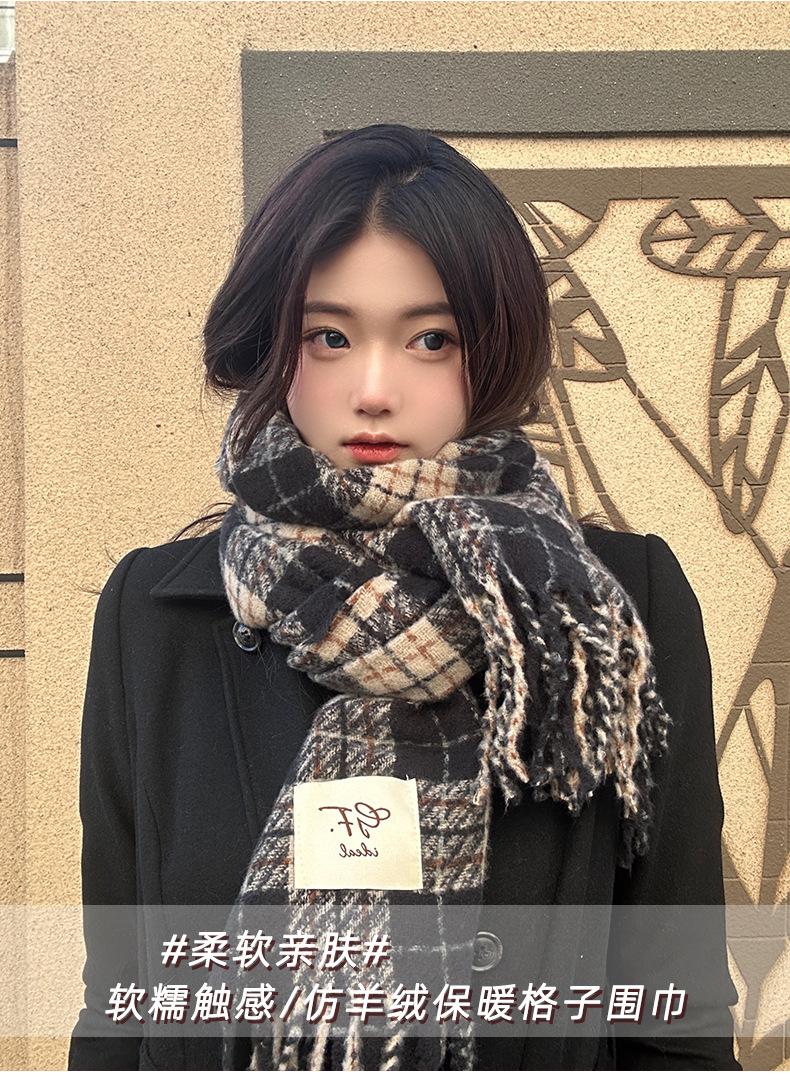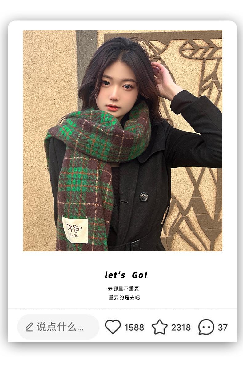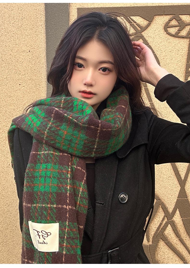 Bufanda de Cuadros Verdes con Borlas para Mujer Estilo Coreano Combinable Imitación Cachemira Forrada Gruesa a Prueba de Frío Bufanda Chal de Invierno para Estudiantes