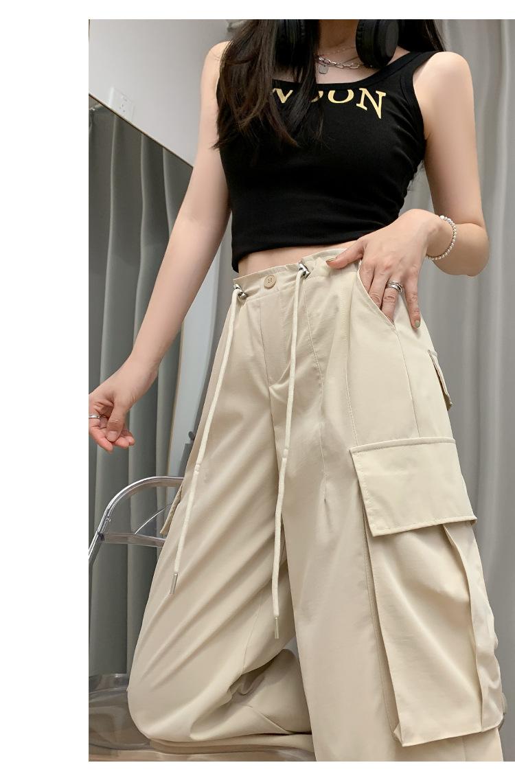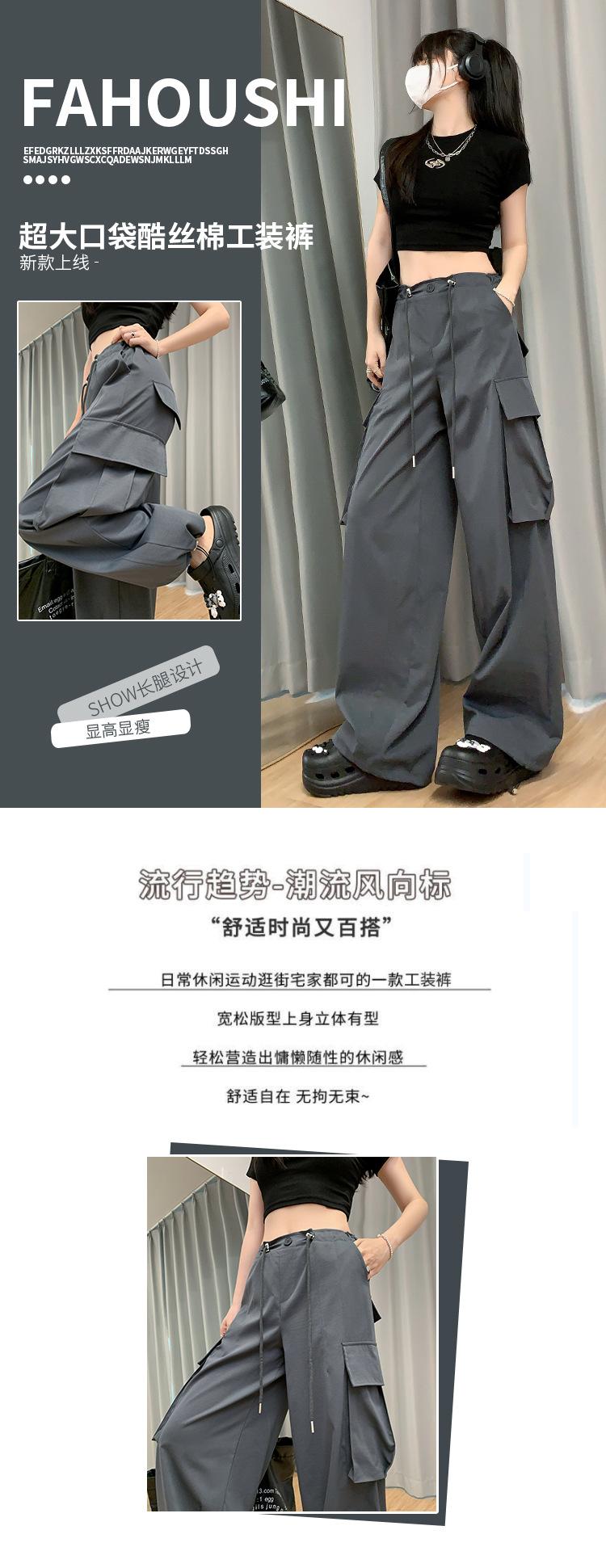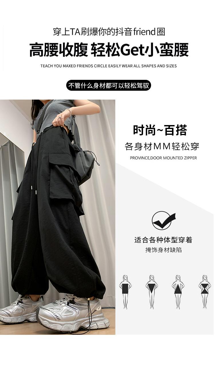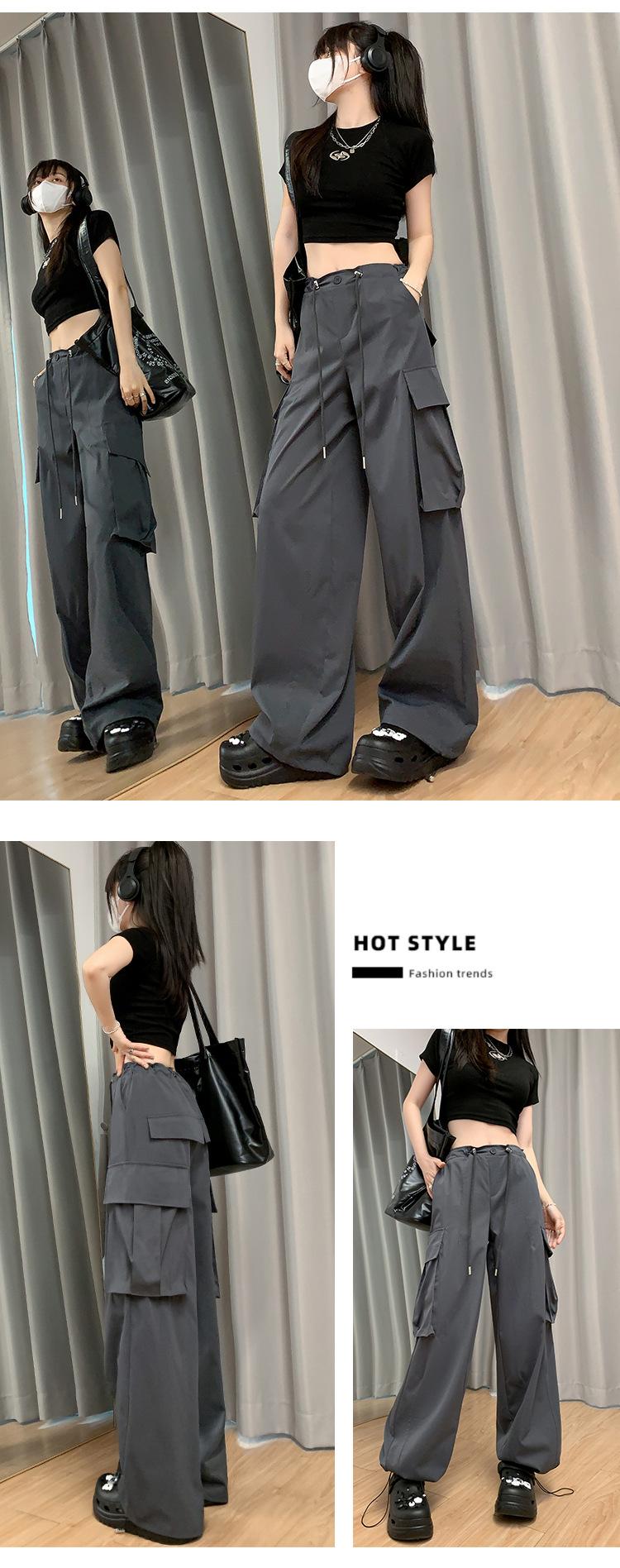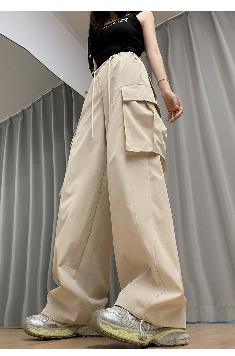 Pantalones Cargo de Nailon para Mujer Verano para Mujer Diseño 2025 Pantalones Rectos de Pierna Ancha Casuales con Bolsillos Grandes con Solapa Pantalones Deportivos Americanos