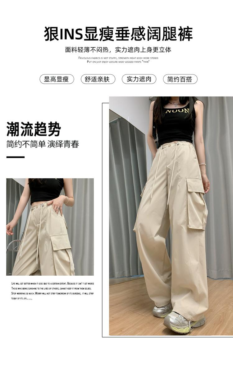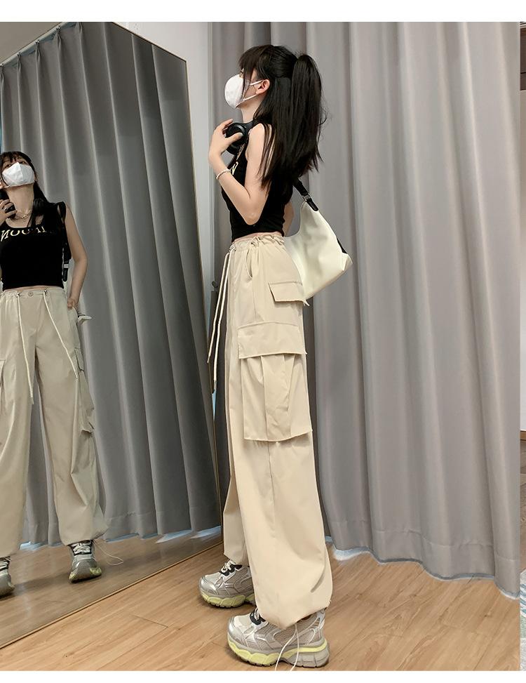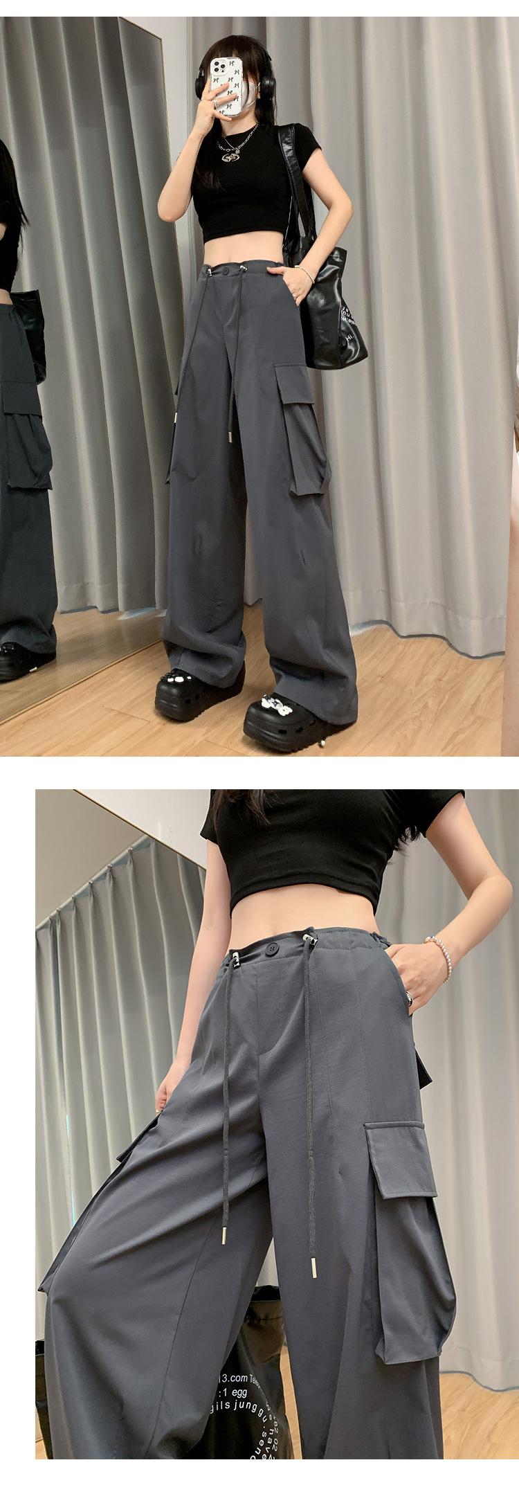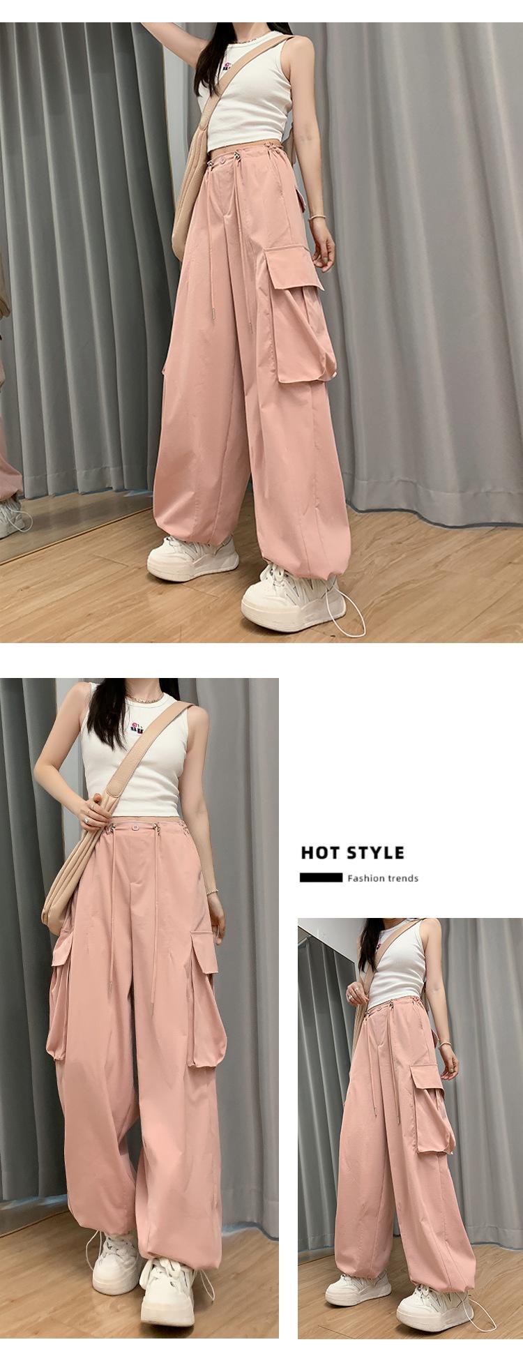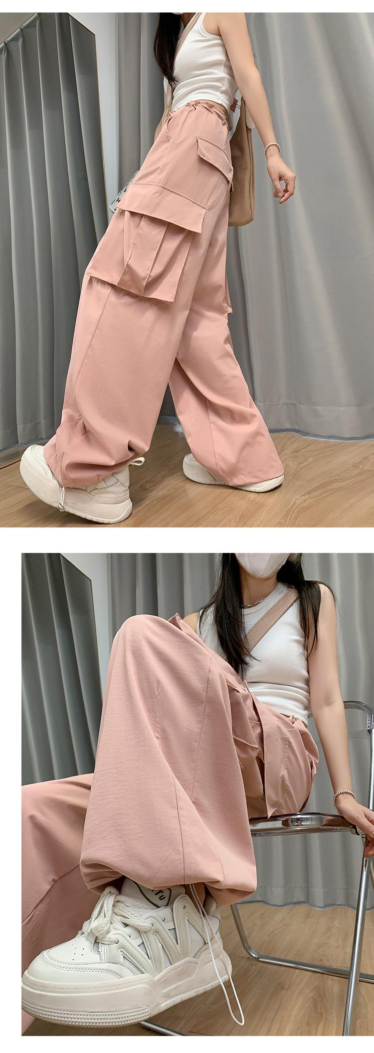 Pantalones Cargo de Nailon para Mujer Verano para Mujer Diseño 2025 Pantalones Rectos de Pierna Ancha Casuales con Bolsillos Grandes con Solapa Pantalones Deportivos Americanos