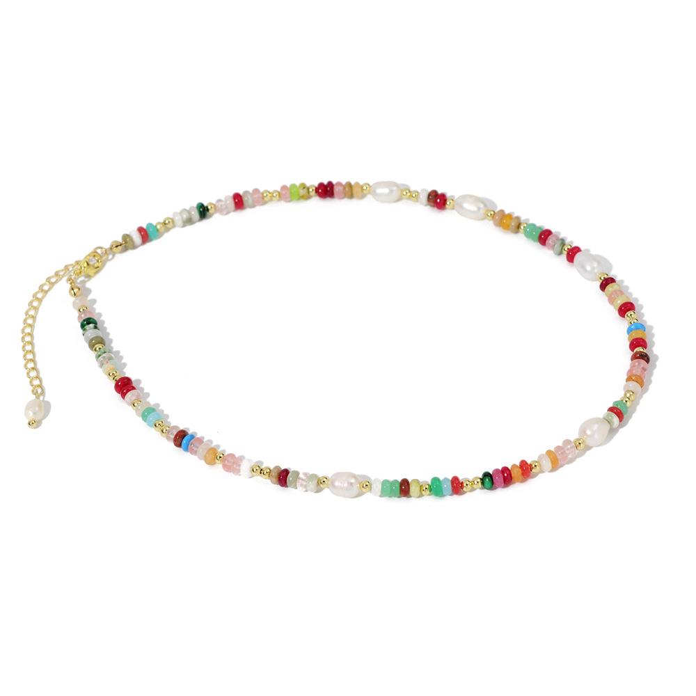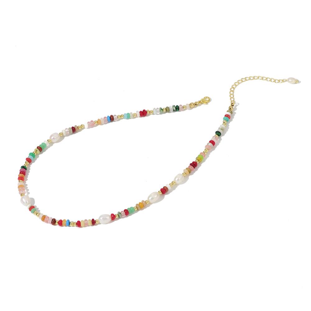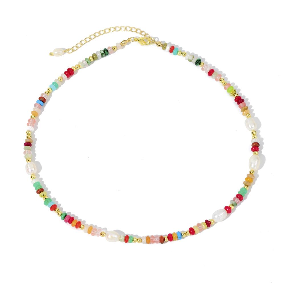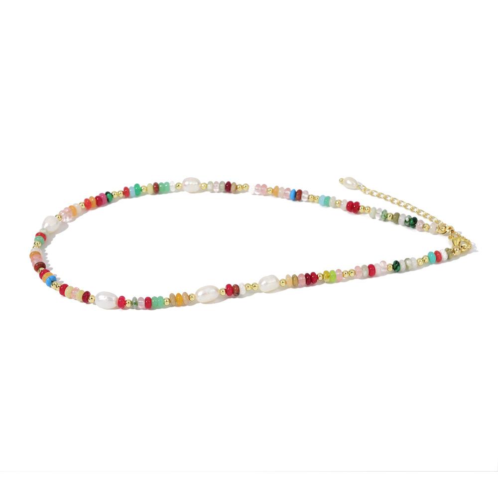 Collar de perlas naturales con cuentas de dopamina de colores, diseño simple y versátil, cadena de clavícula, elegante y moderno.