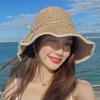 Sombrero de Pescador Tejido de Paja de Verano Estilo Coreano para Mujer Sombrero de Playa Anti-UV para la Costa Sombrero de Paja de Moda Versátil Estilo Fresco