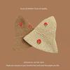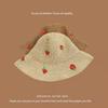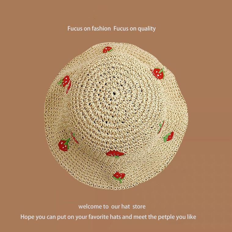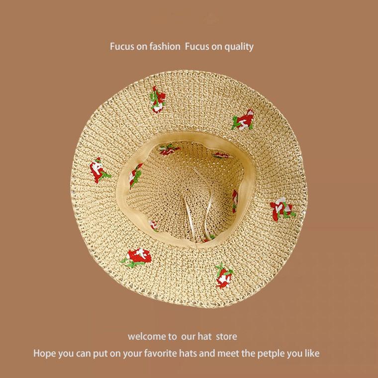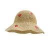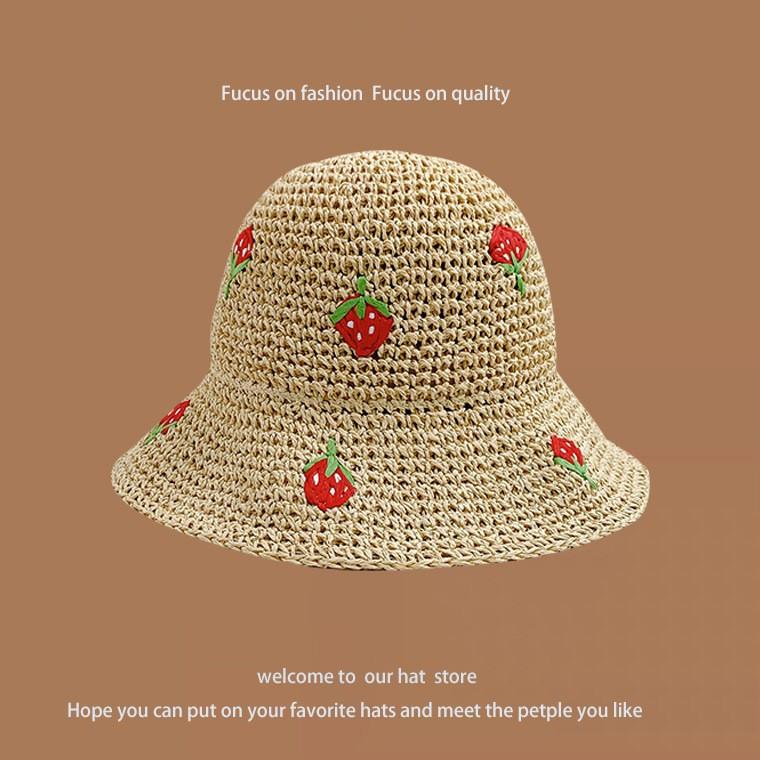 Beige Strawberry Embroidered Straw Hat, Khakis Strawberry Embroidered Straw Hat