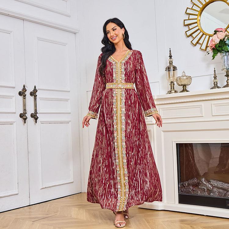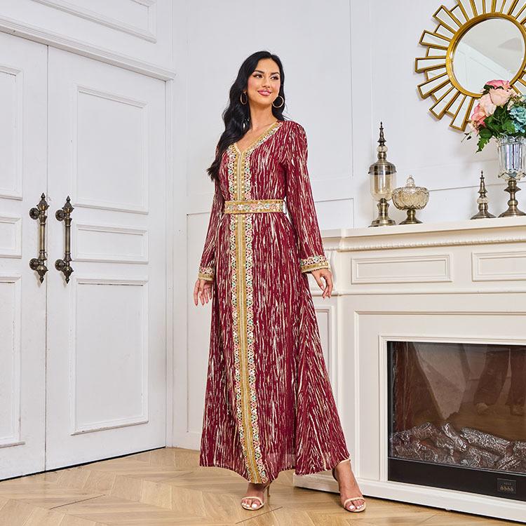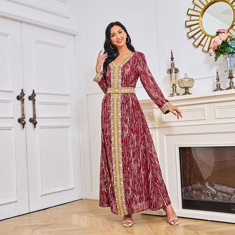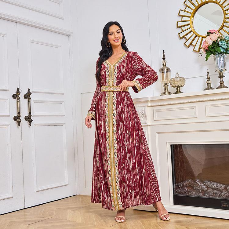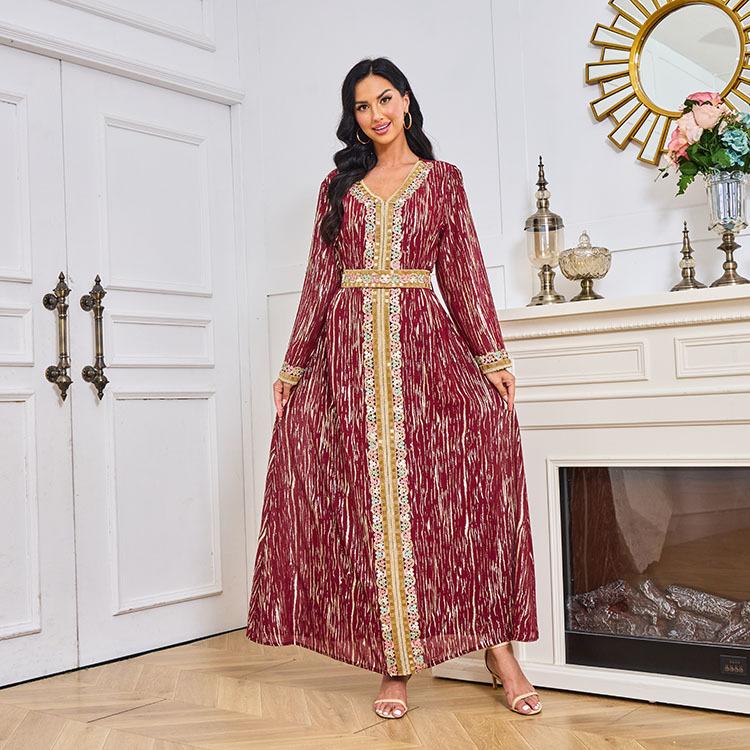 Mt083 Vestido de Temperamento de Moda Dubái de Encaje con Tubo de Cuentas Bronceadoras para Mujeres Musulmanas de Oriente Medio Amazon