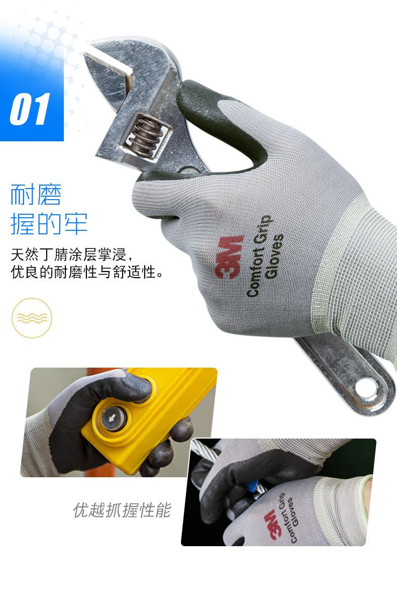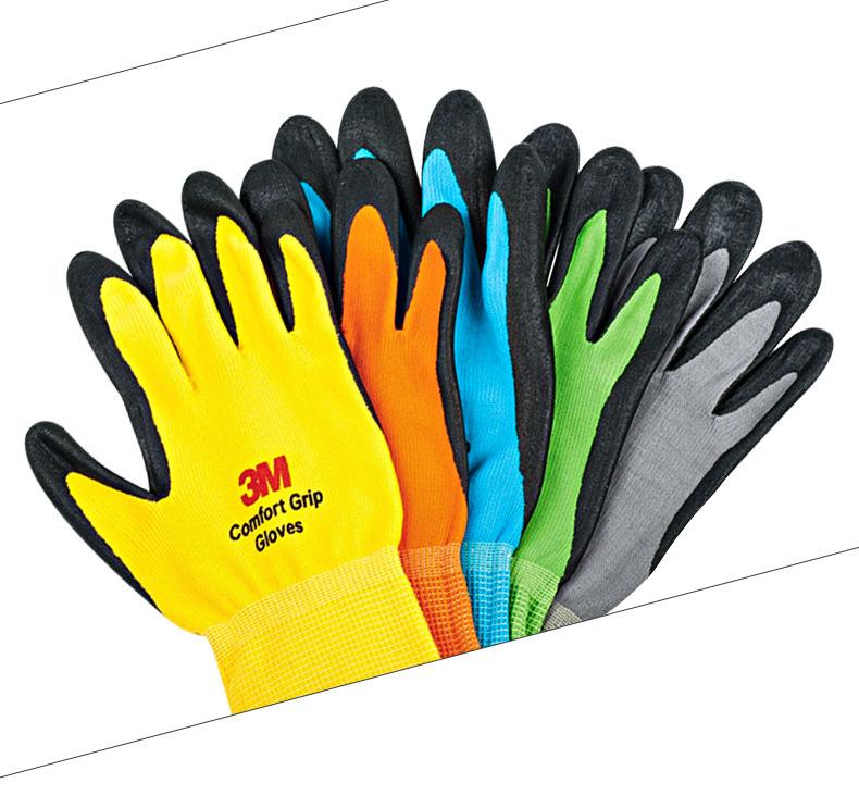 Guantes 3M de protección laboral, antideslizantes, resistentes al desgaste, para taller industrial, de nailon engrosado, recubiertos de nitrilo, con palma de goma empapada y transpirable.