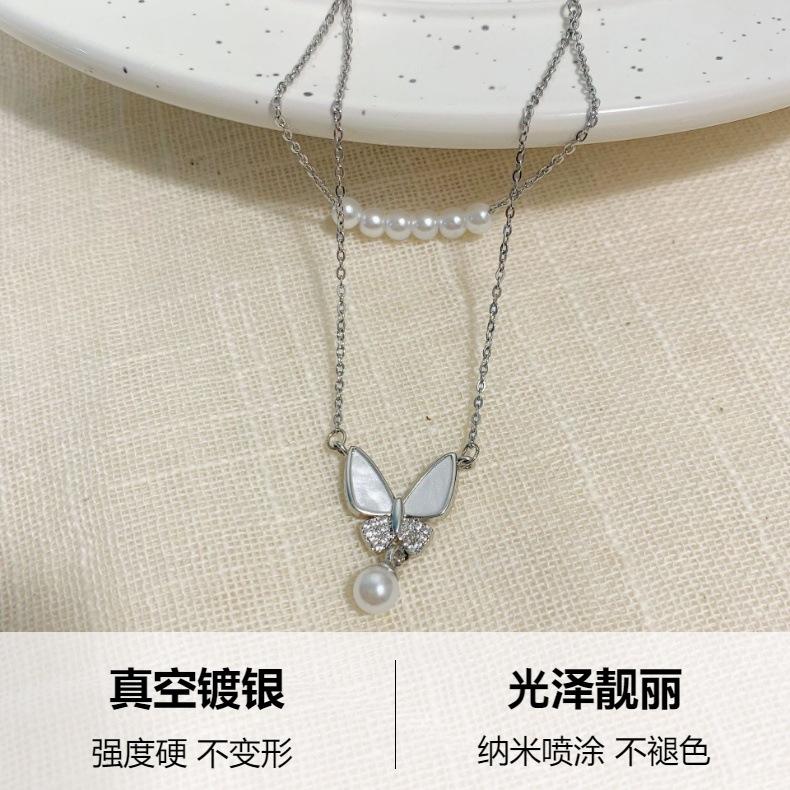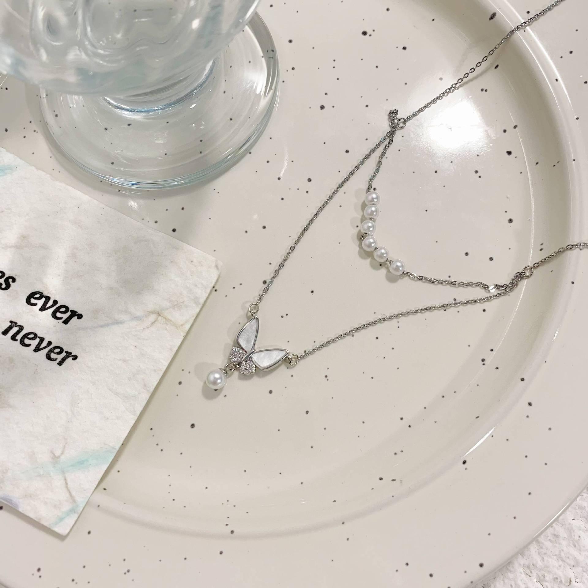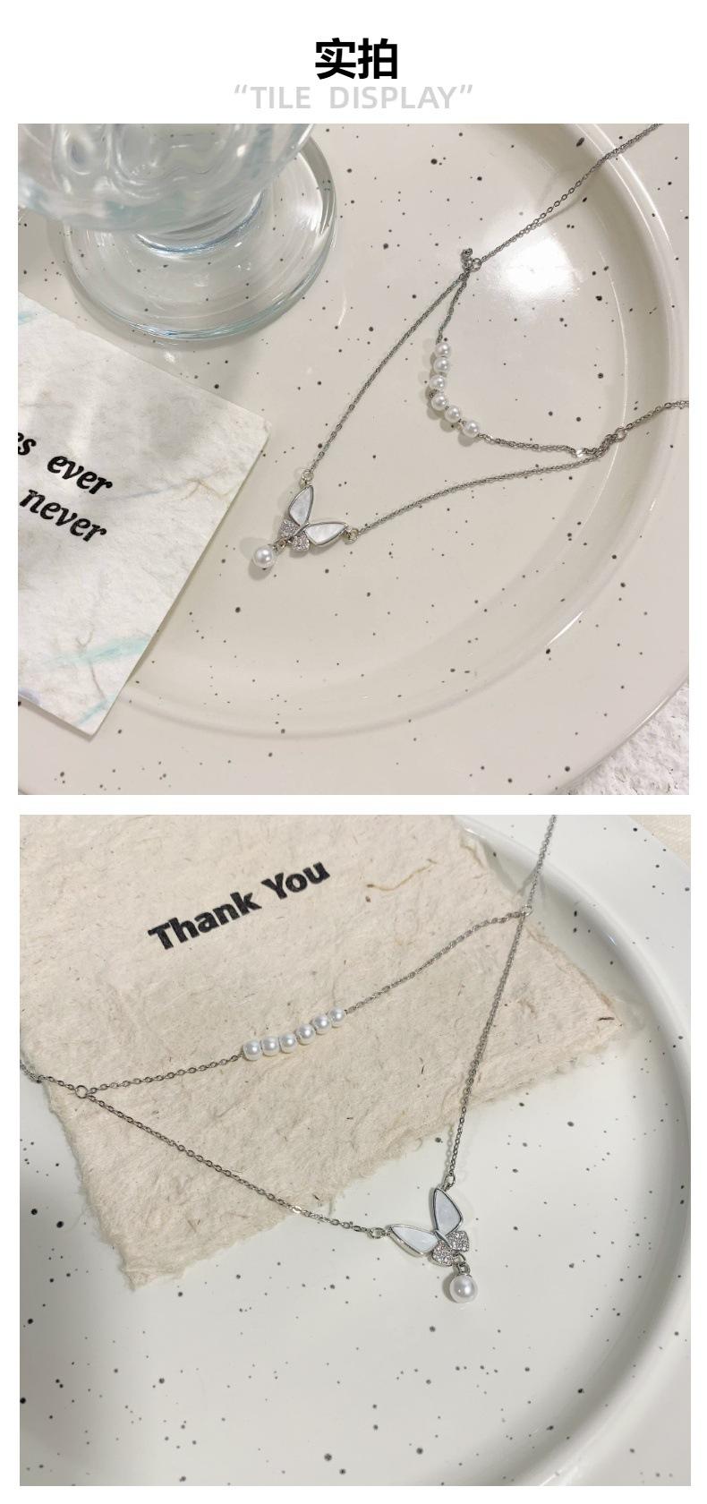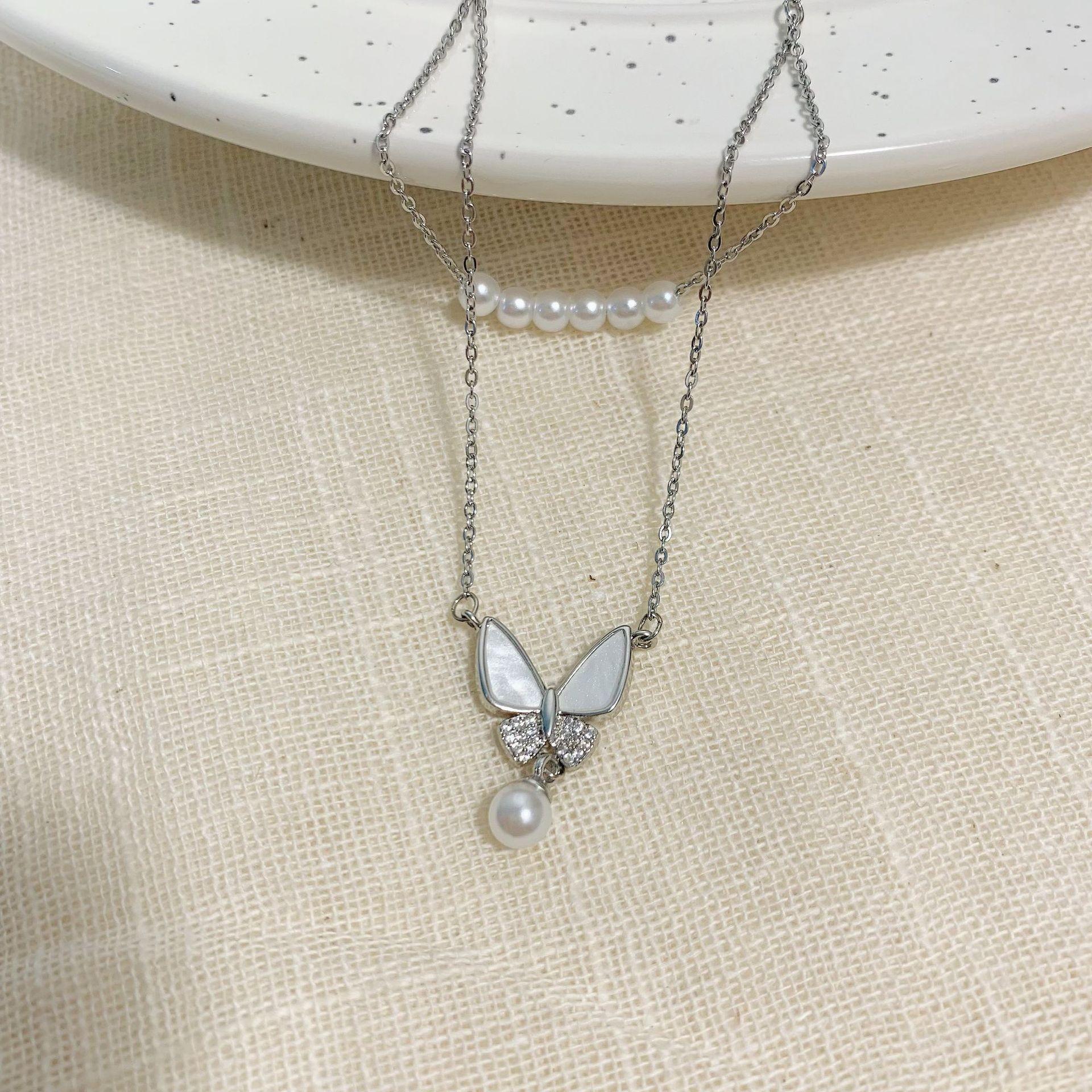 Collar de Perlas Mariposa de Concha Blanca para Mujer Diseño Nicho Doble Capa Apilado Cadena Clavícula Lujo Ligero Alta Gama Todo Combinable Collar Elegante