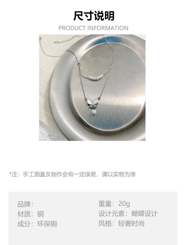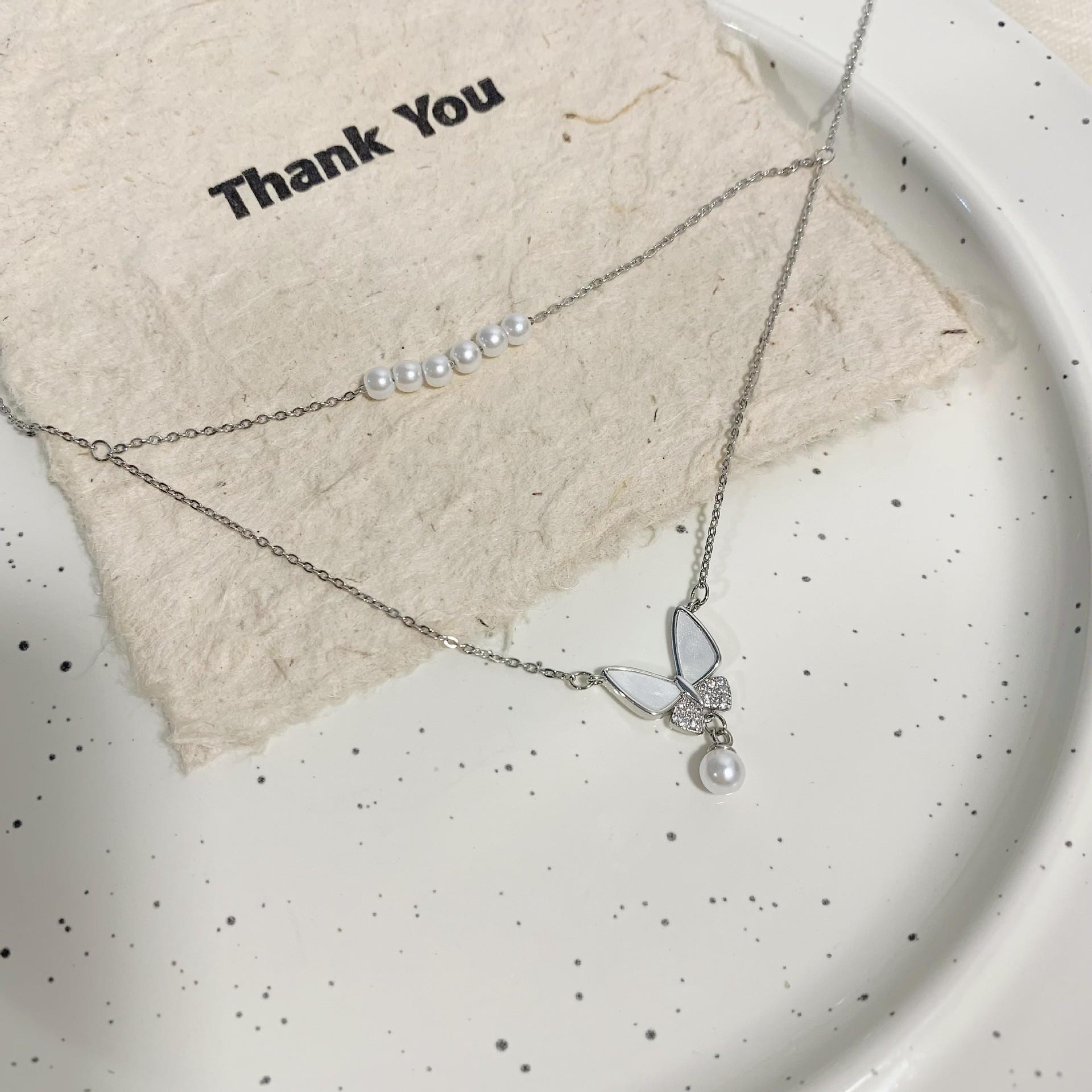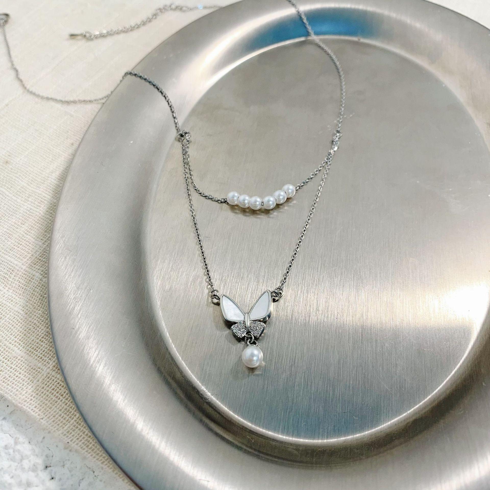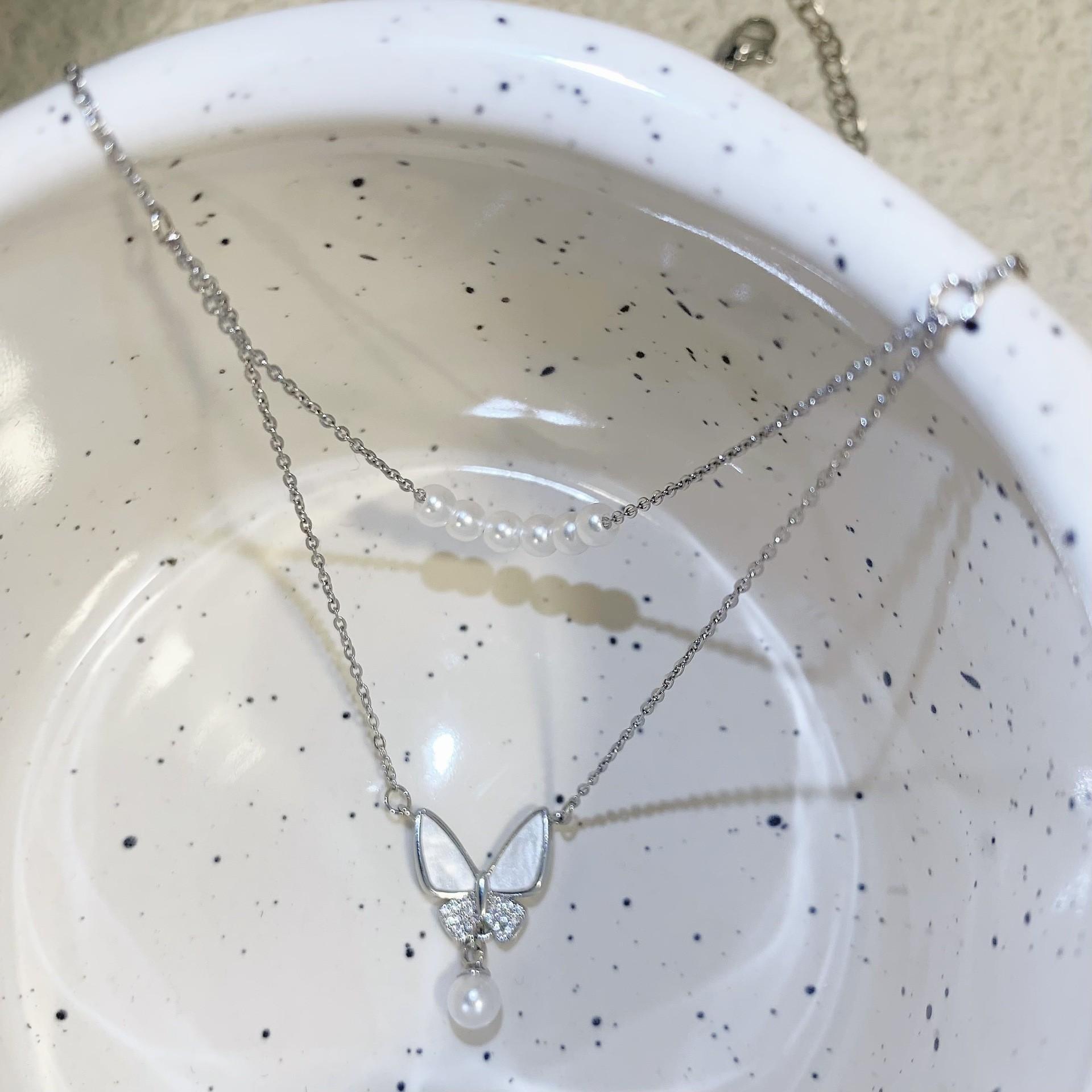 Collar de Perlas Mariposa de Concha Blanca para Mujer Diseño Nicho Doble Capa Apilado Cadena Clavícula Lujo Ligero Alta Gama Todo Combinable Collar Elegante