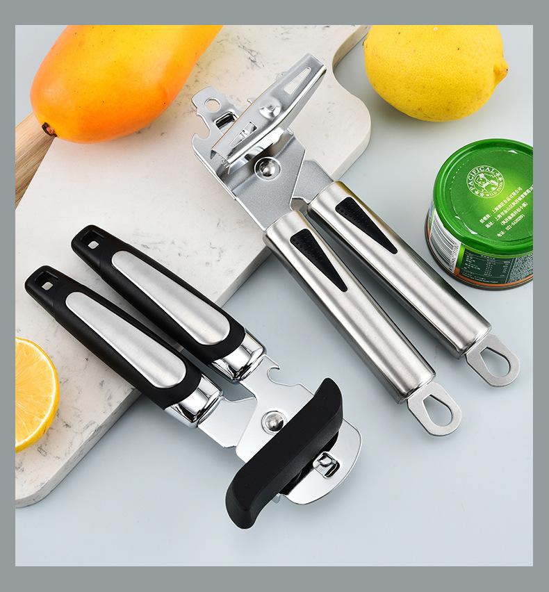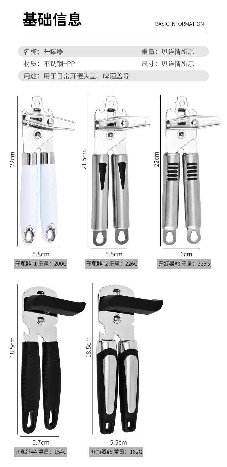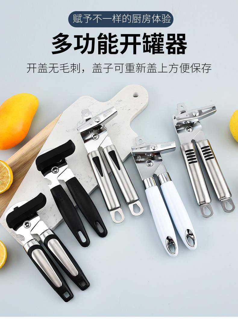 White plastic handle can opener, Stainless steel handle can opener (triangle), Stainless steel handle can open...