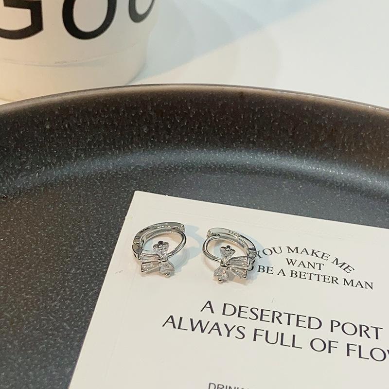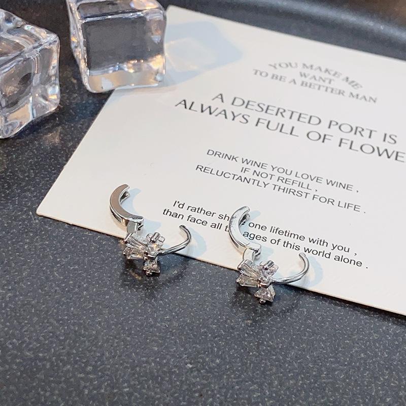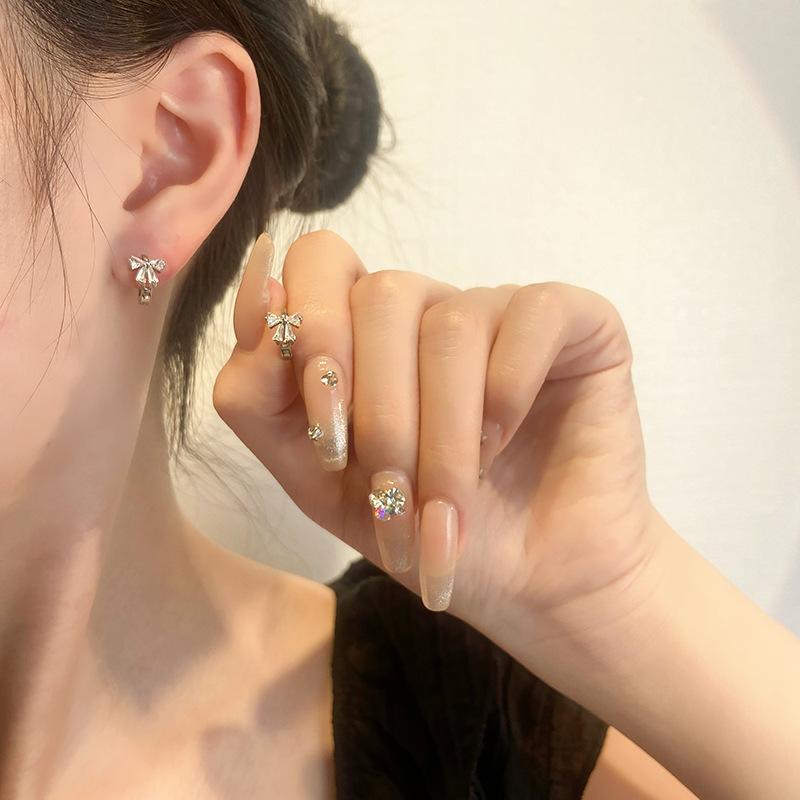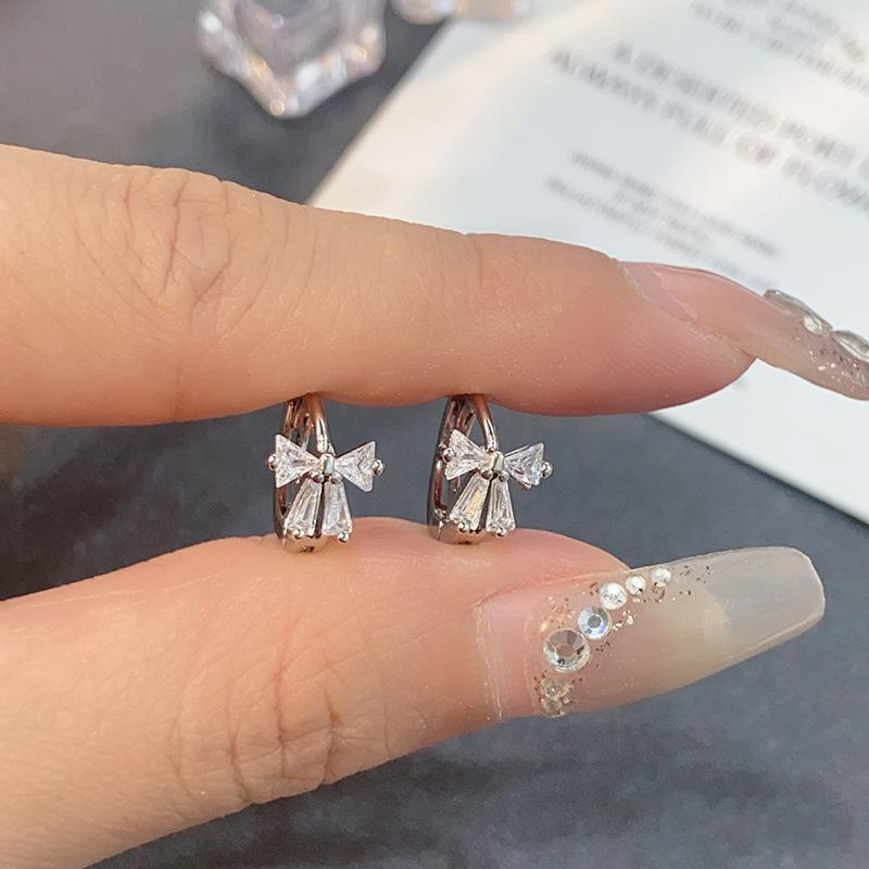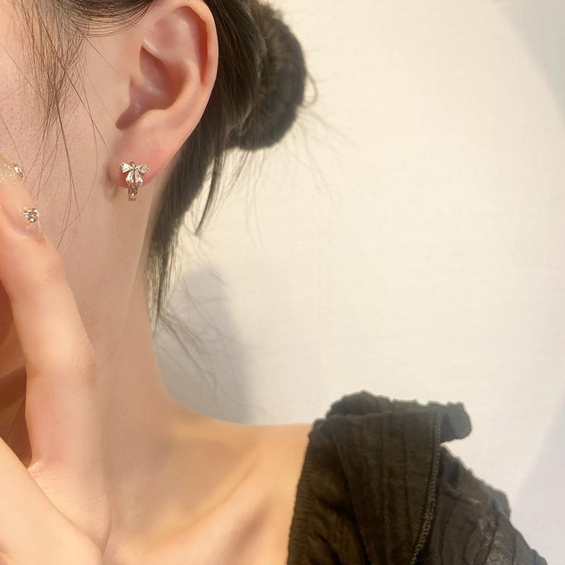 Pendientes elegantes de alta gama con hebilla de lazo de diamantes de lujo ligeros para mujer, pendientes exquisitos que combinan con todo.