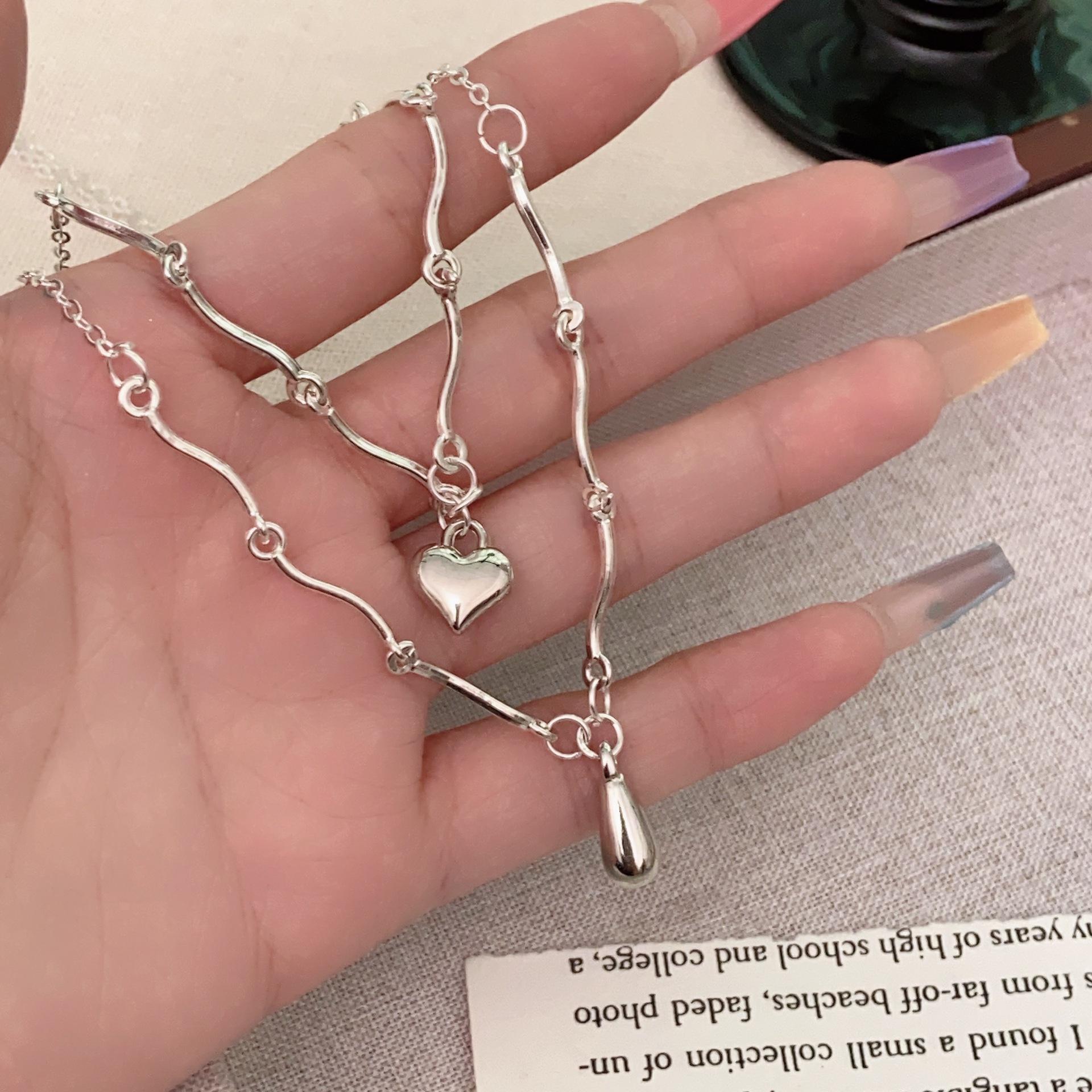 Collar con colgante de gotas de agua estilo coreano, estilo viento frío, cadena de clavícula pequeña y alta de moda, cadena de lana otoñal.