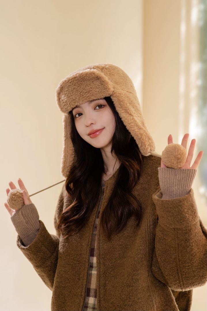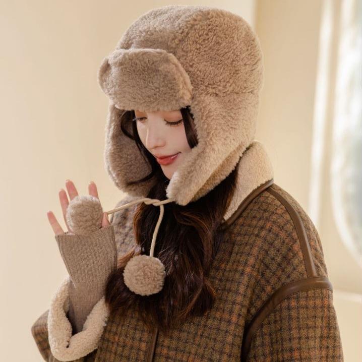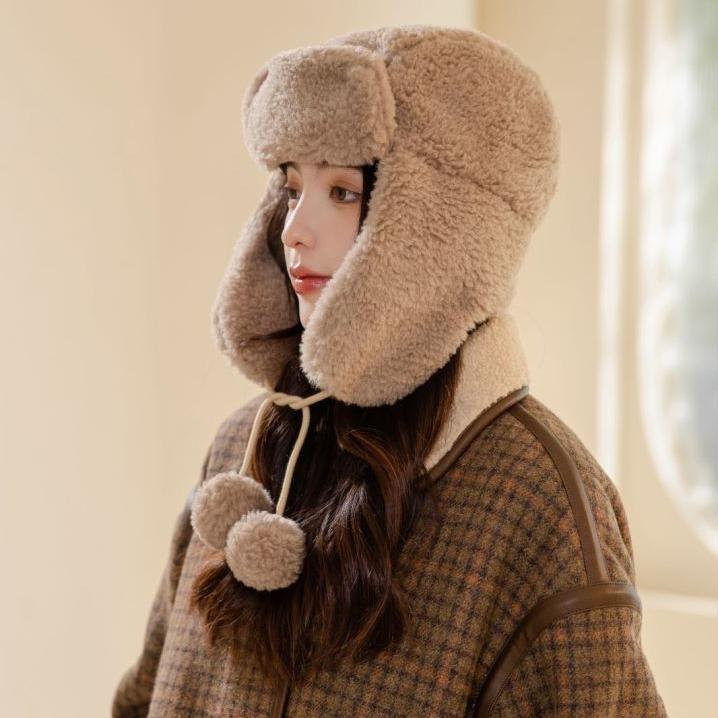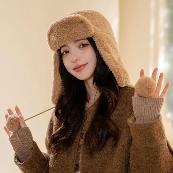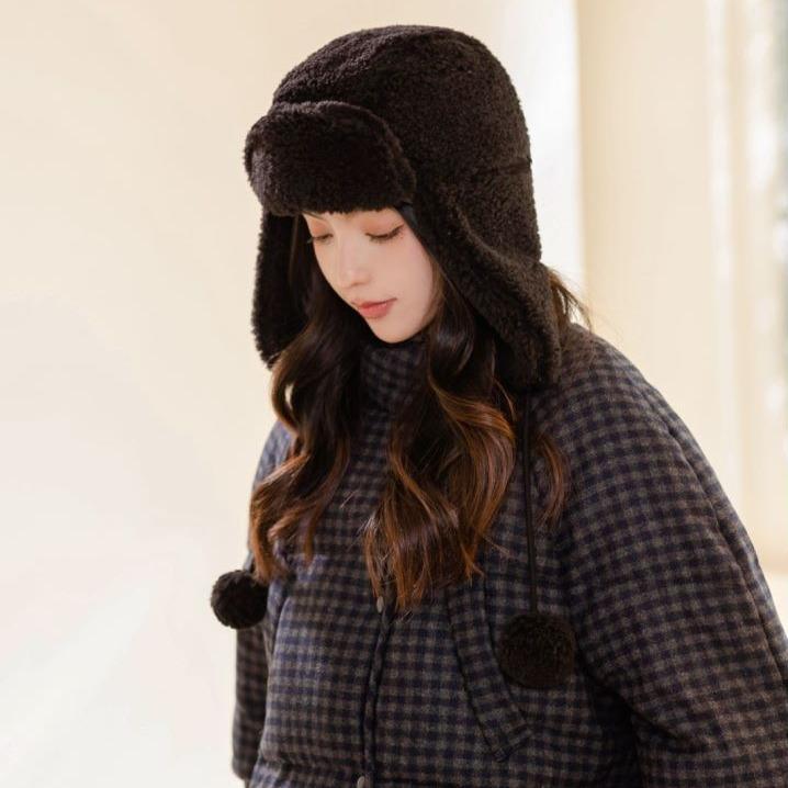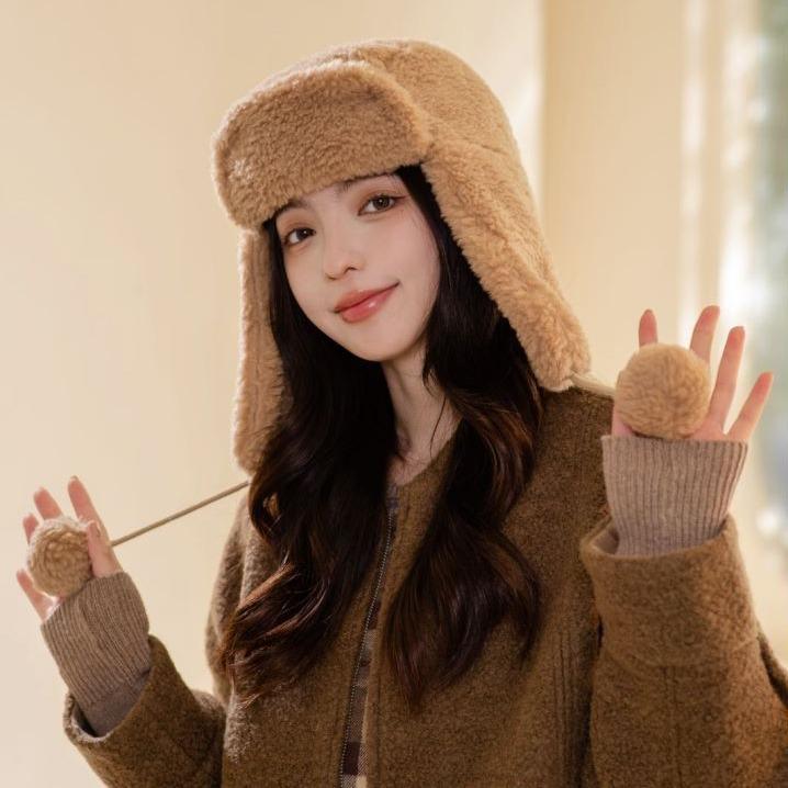 Sombrero Lei Feng de Invierno para Mujer con Protección de Orejas de Felpa, Forrado de Lana, Grueso, a Prueba de Nieve, Sombrero del Noreste Cálido, Combinable con Todo, para Cabeza Grande, Sombrero Wai a Prueba de Frío