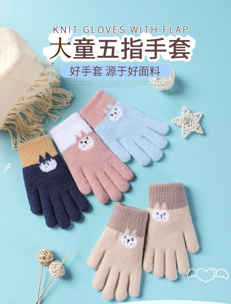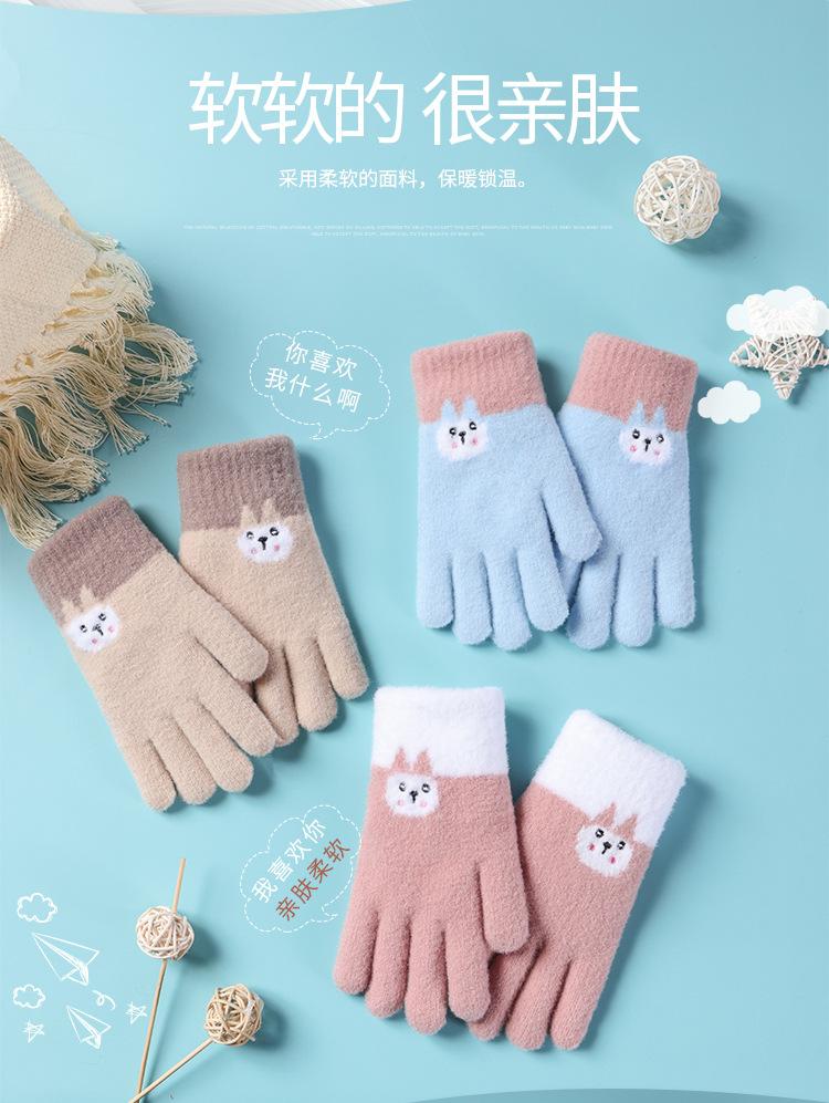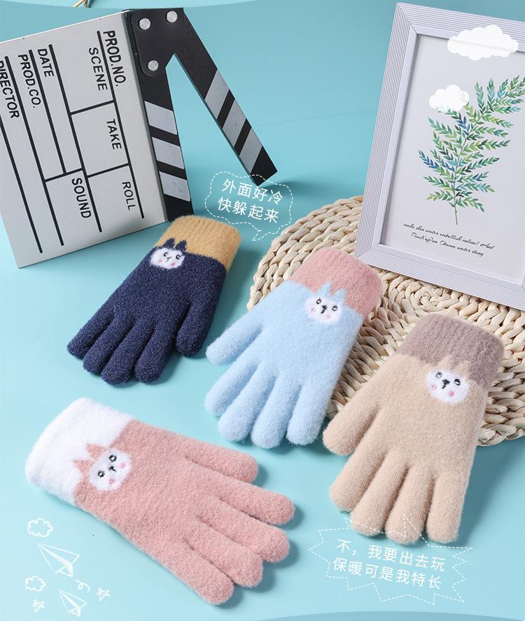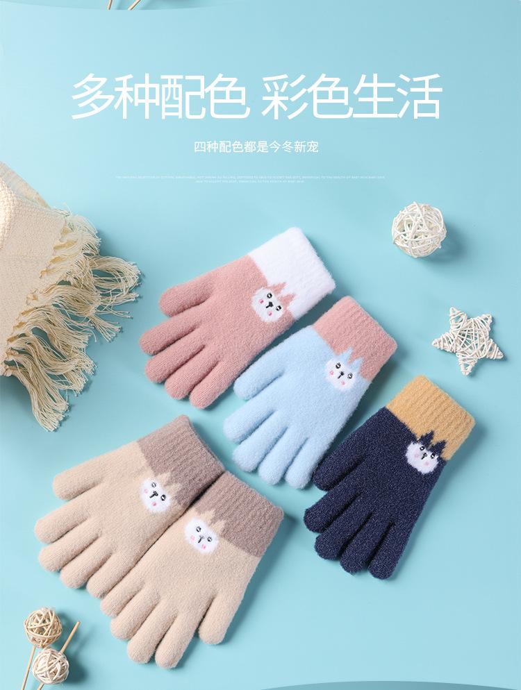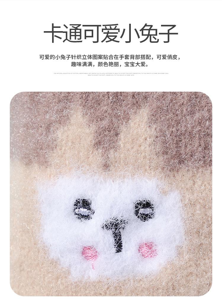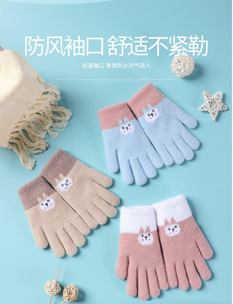 Guantes de invierno para niños y niñas, de punto, con cinco dedos, gruesos y cálidos, resistentes al frío, con diseño de conejo de dibujos animados.