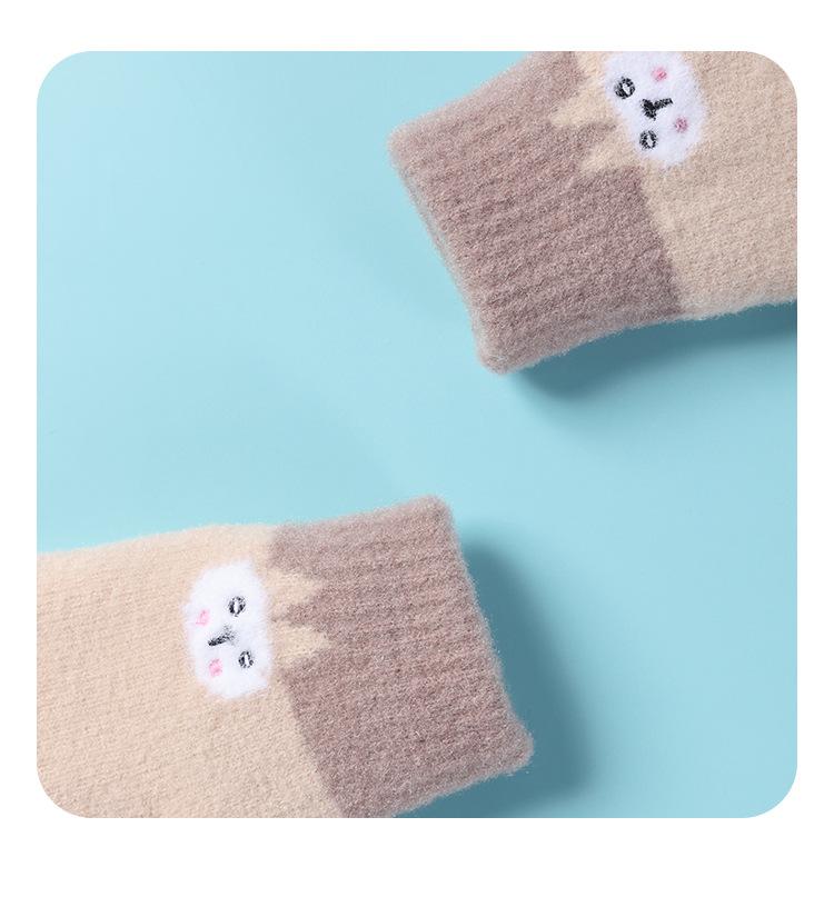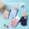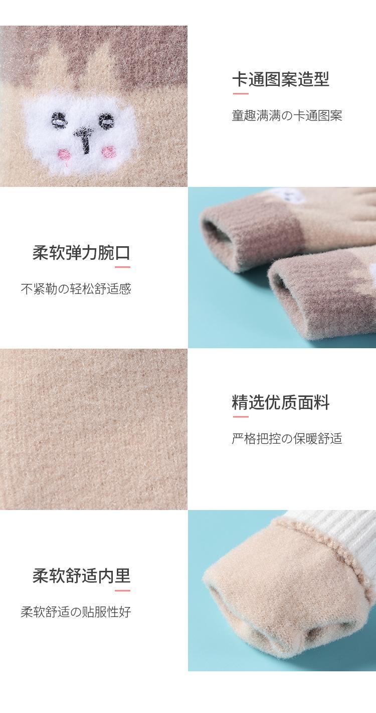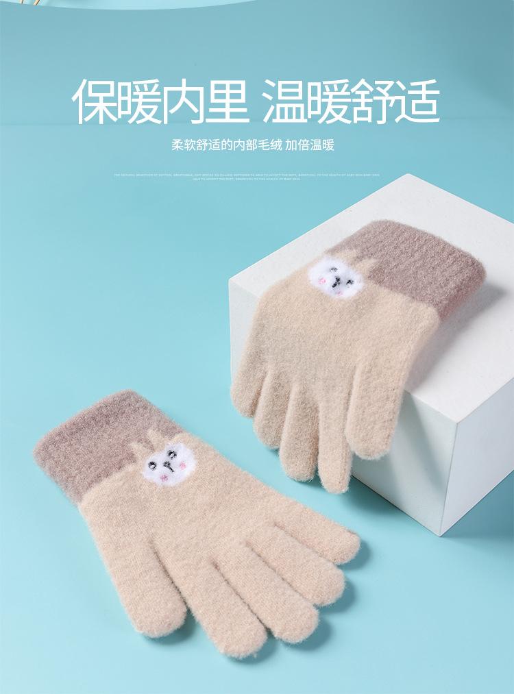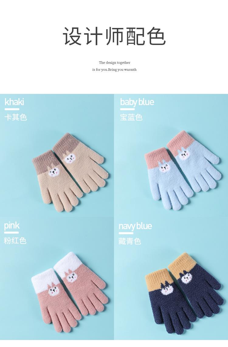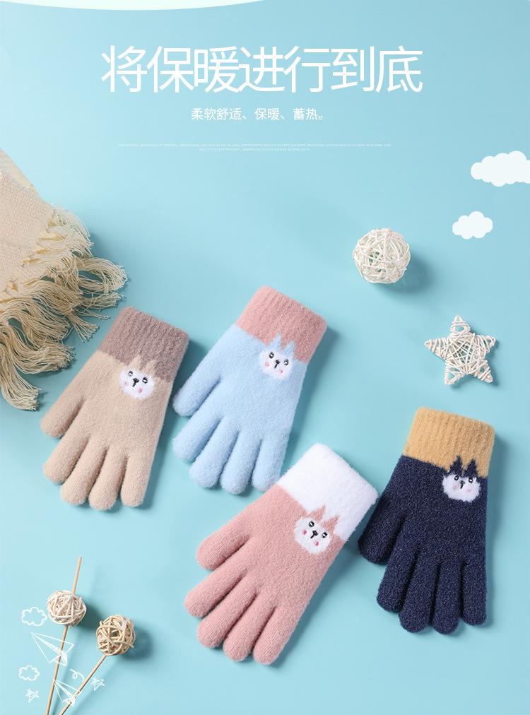 Guantes de invierno para niños y niñas, de punto, con cinco dedos, gruesos y cálidos, resistentes al frío, con diseño de conejo de dibujos animados.