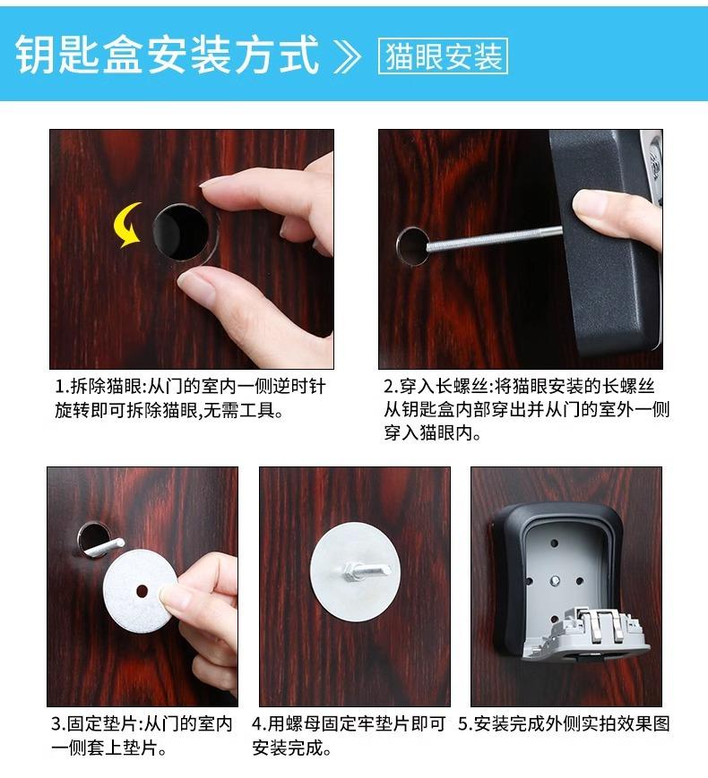 Caja de contraseña con llave decorativa para obra de construcción, cerradura de contraseña con forma de ojo de gato para puerta, caja de llaves antirrobo de metal sin perforaciones para casa de familia