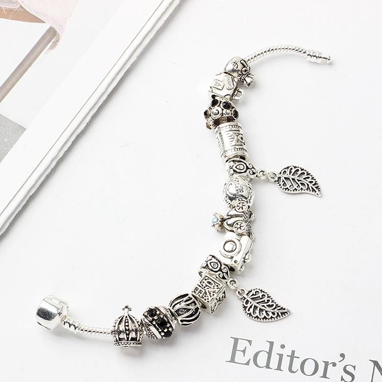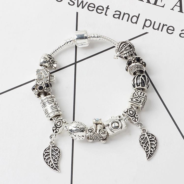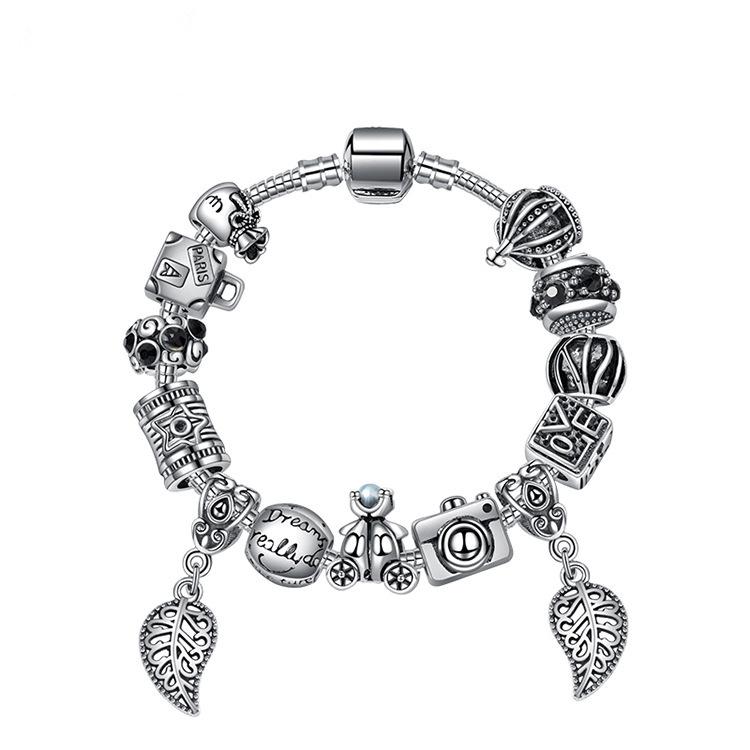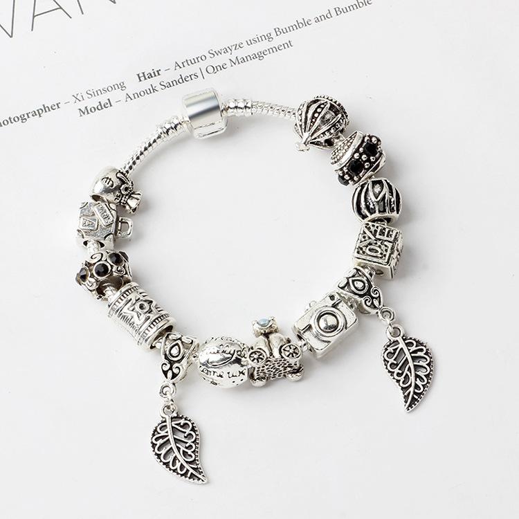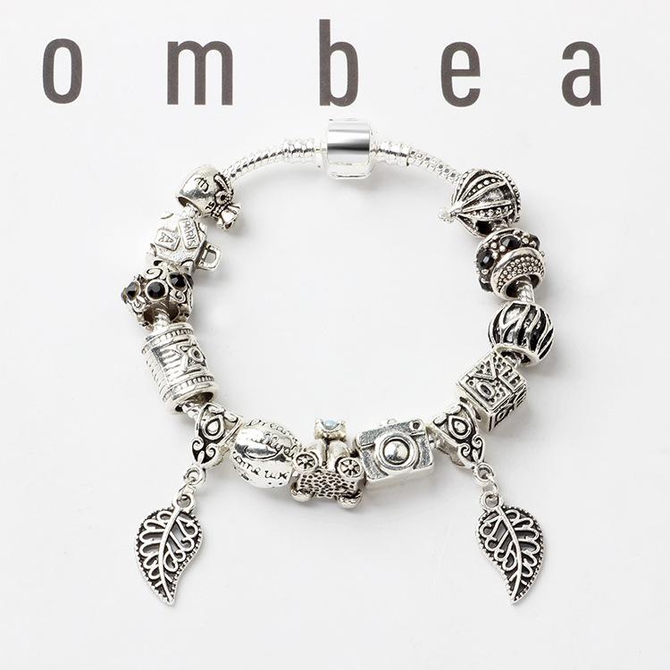 Pulsera Panjia de aleación con colgante de hoja de bricolaje con cuentas de gran agujero de Amazon, oferta de fábrica