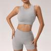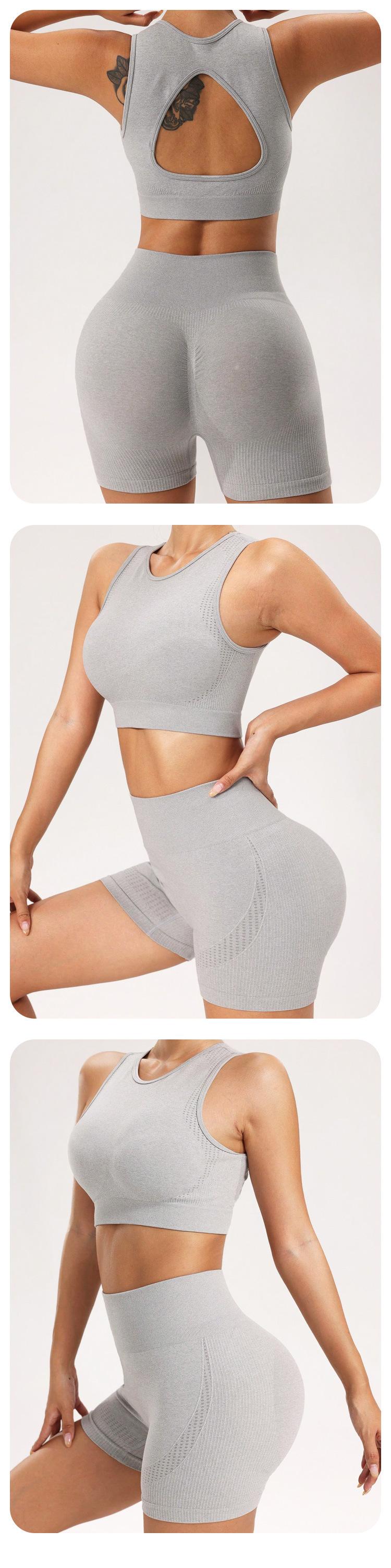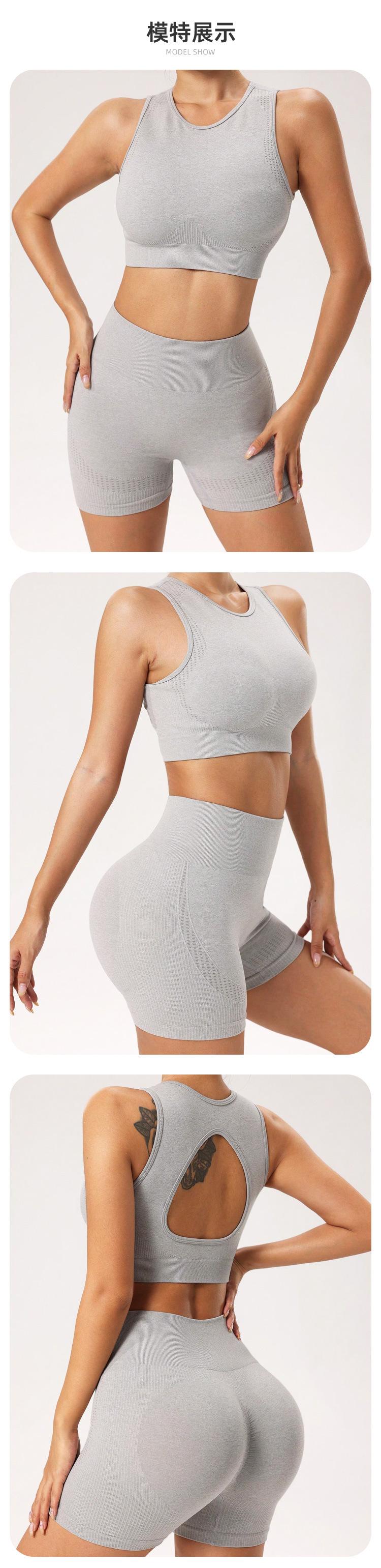 Conjunto de ropa de yoga transfronteriza europea y americana, sujetador deportivo de dos piezas para mujer, pantalones de yoga sin costuras con realce de cadera, pantalones cortos deportivos