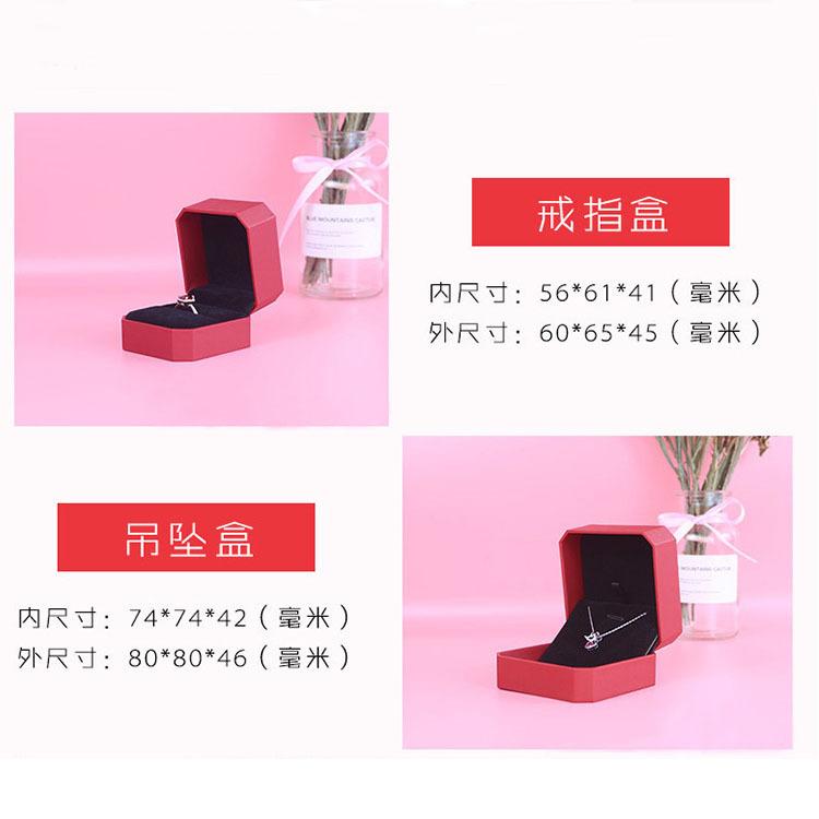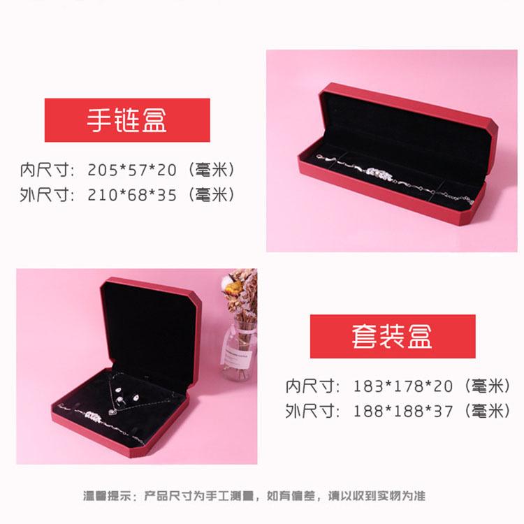 Ring box:60*65*45mm, Pendant box:80*80*46mm, Bracelet box:100*100*56mm, Long chain box: 210*68*35mm, Suit box:208*208*43mm