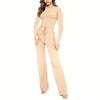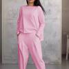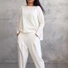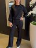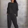 2024 Amazon Europa y Estados Unidos transfronterizo nueva estación independiente para mujeres venta rápida color sólido pies casuales cuello redondo manga larga dos piezas