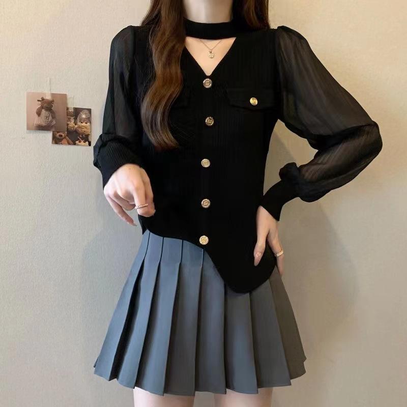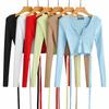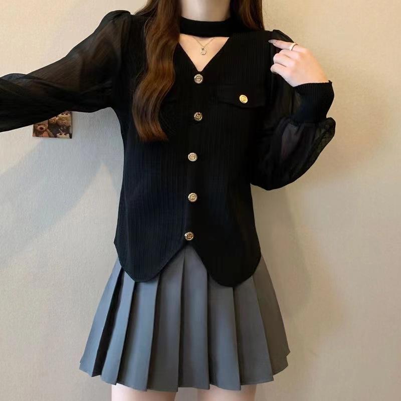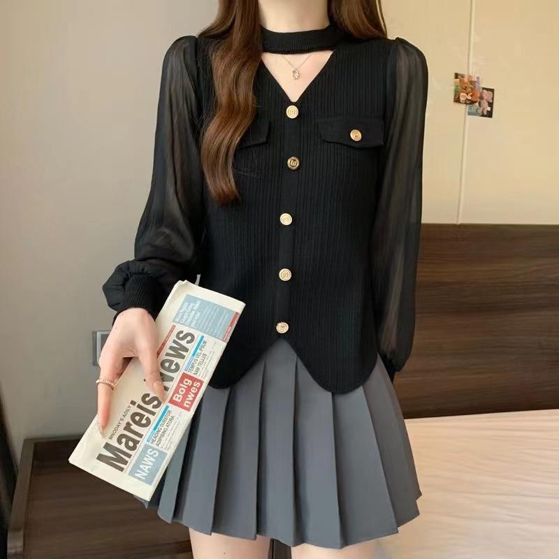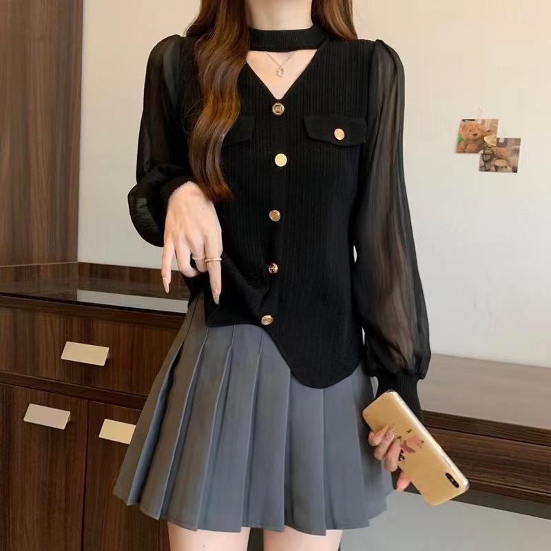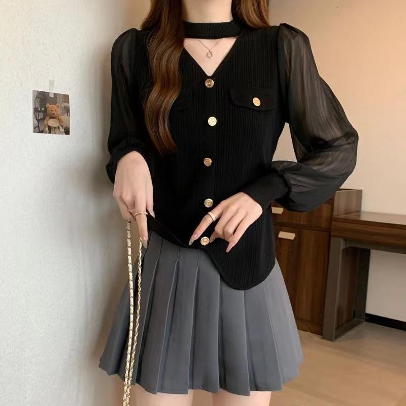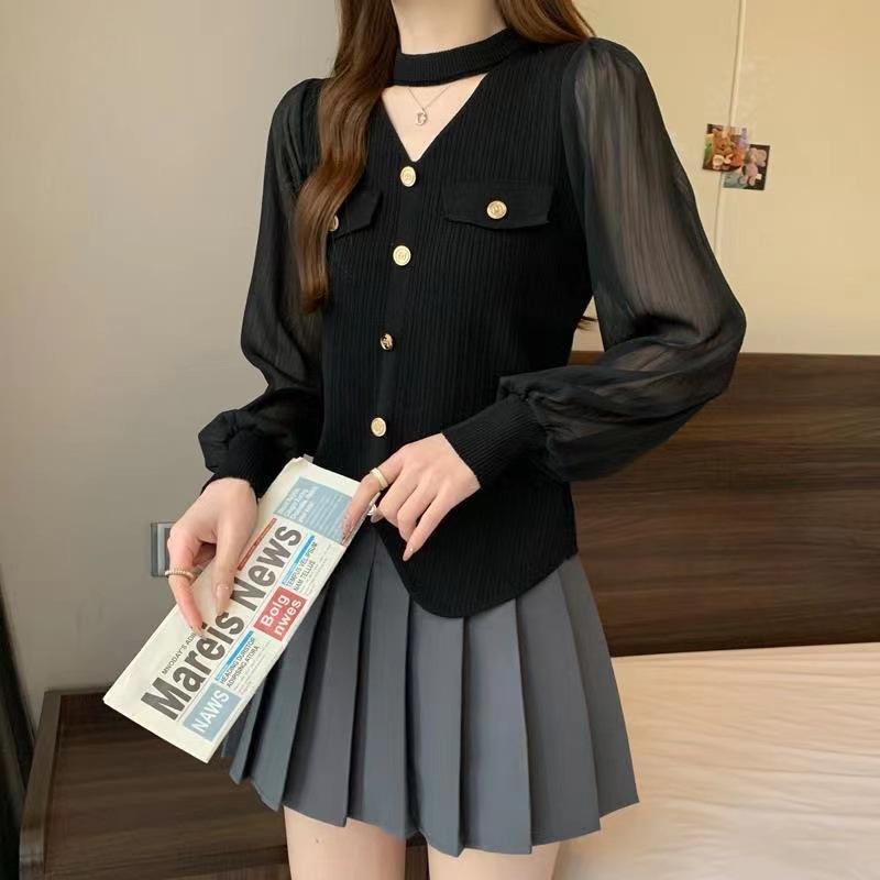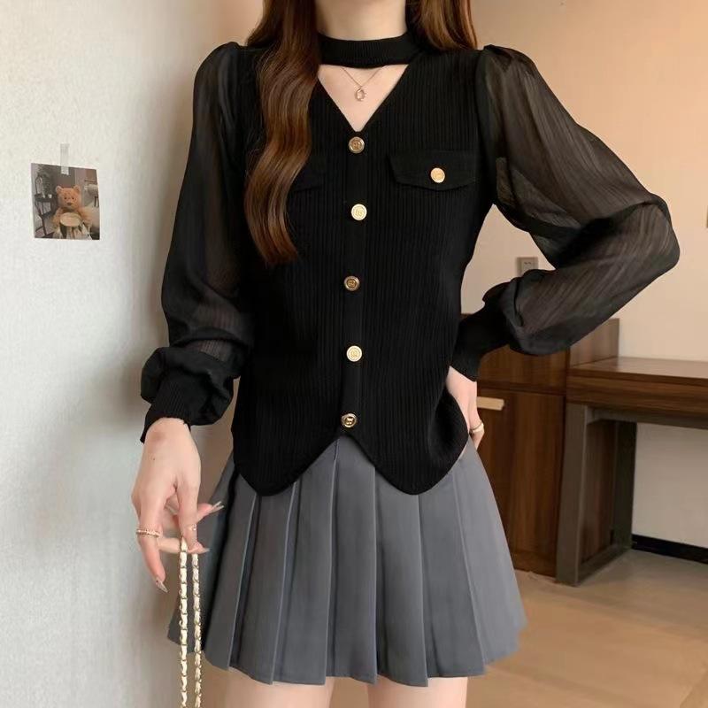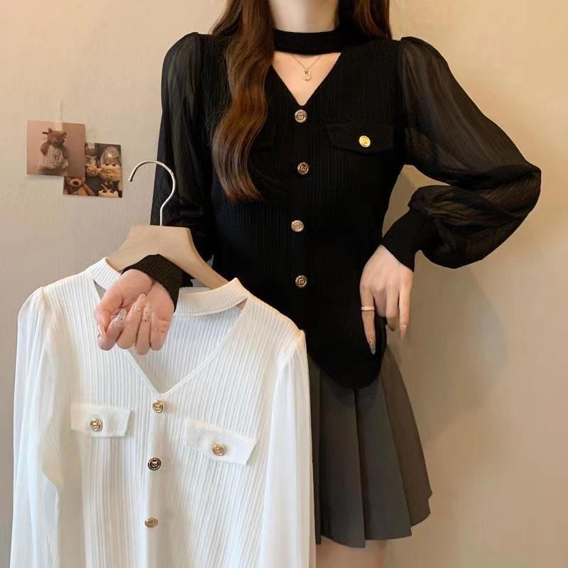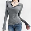 Suéter sexy de manga larga con cuello en V para mujer, nueva moda de primavera y otoño, camisa con base de costura de estilo occidental, top de mujer de tendencia