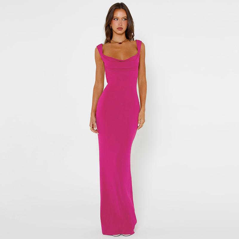 Amazon transfronterizo 2024 Nuevo vestido largo elegante para mujer, sexy sin espalda, corte ajustado con lazo y drapeado en la cadera
