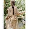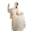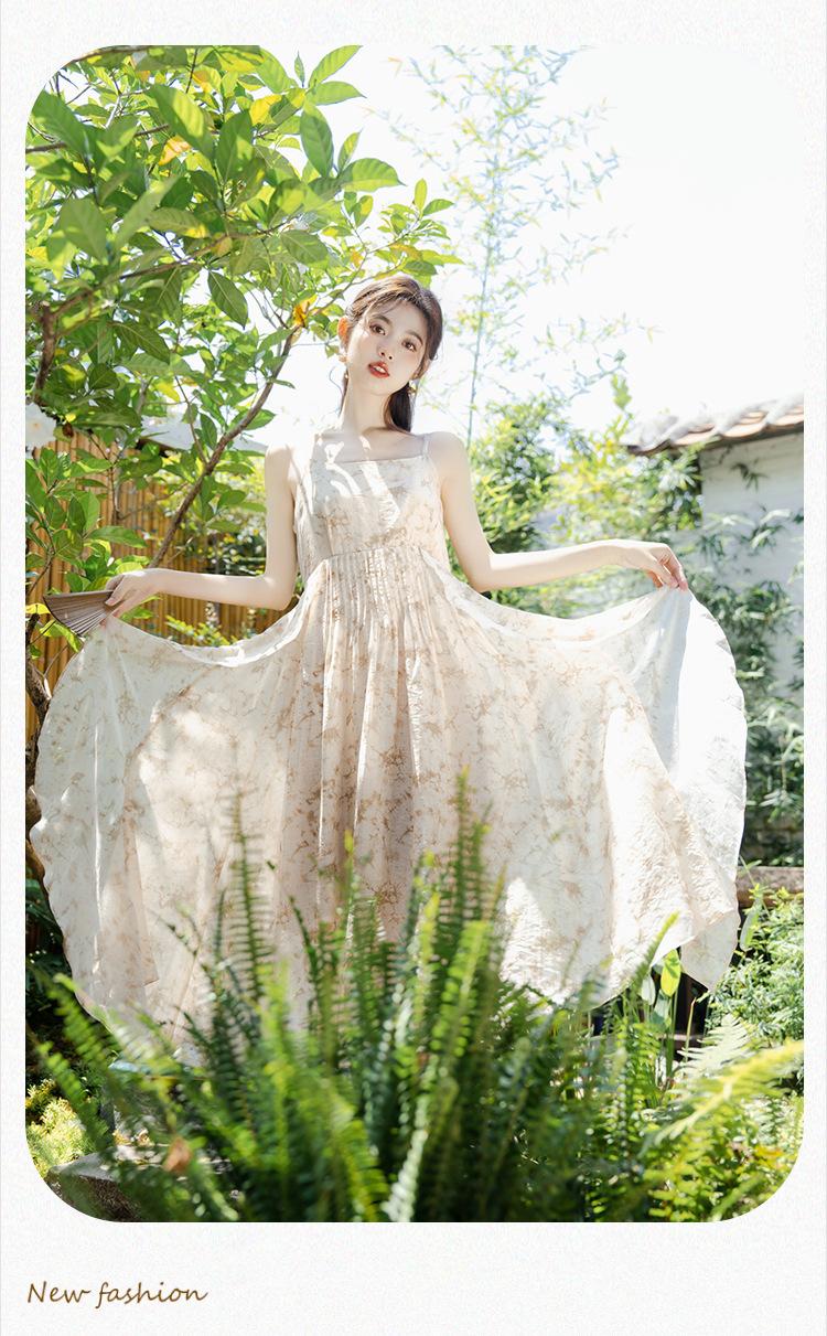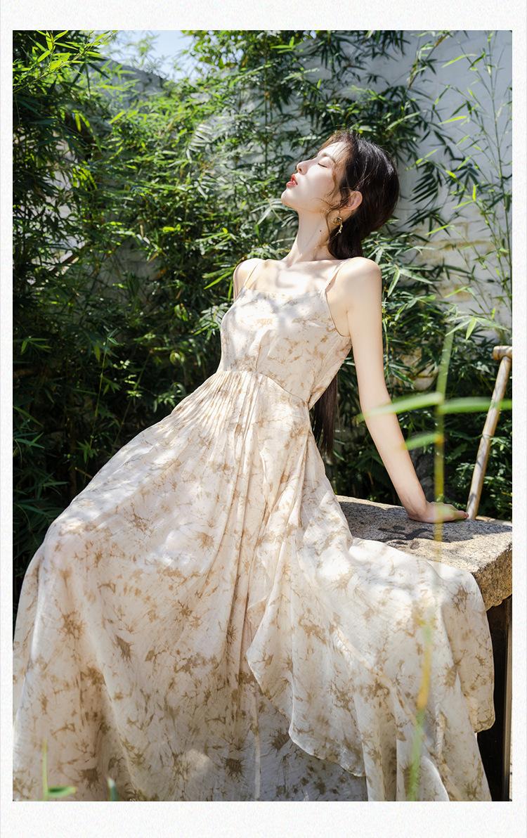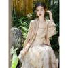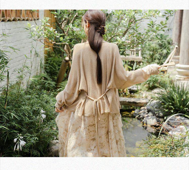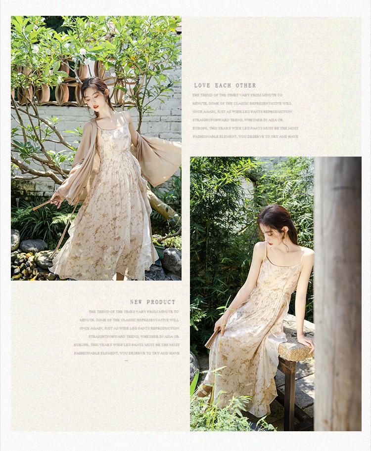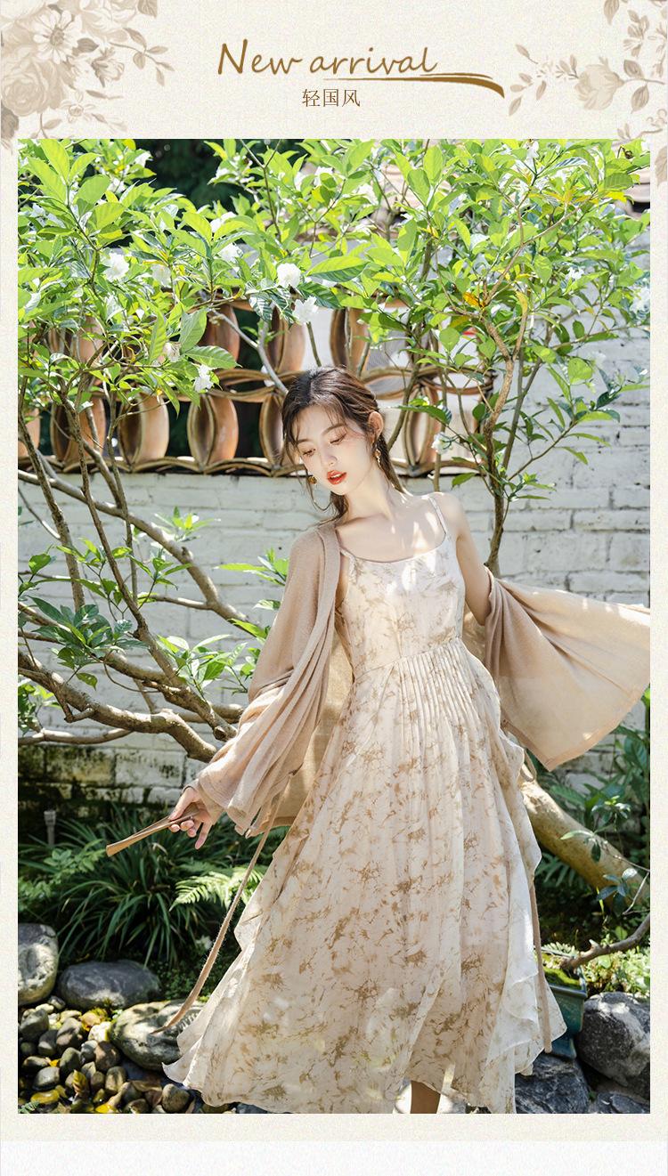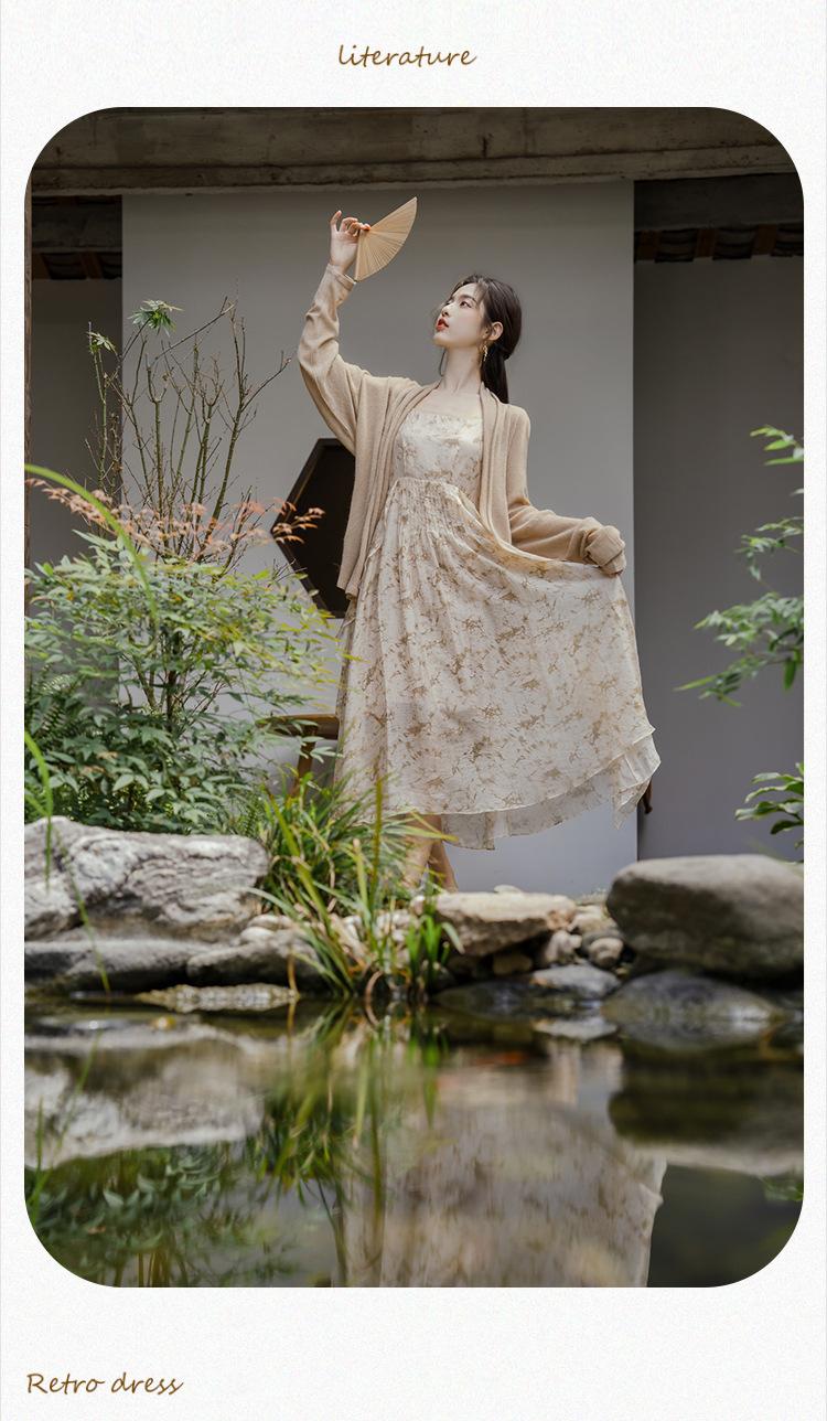 Foto Real de Cárdigan de Suéter de Punto + Vestido de Tirantes de Chifón Estampado y Teñido Primavera 2025 Nuevo Traje de Dos Piezas