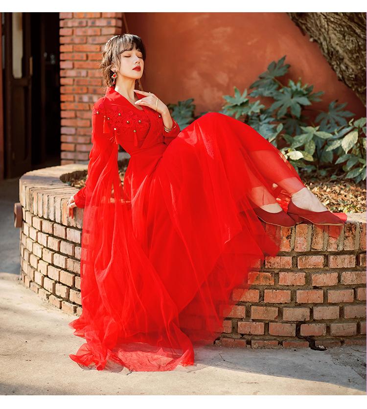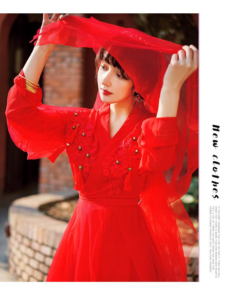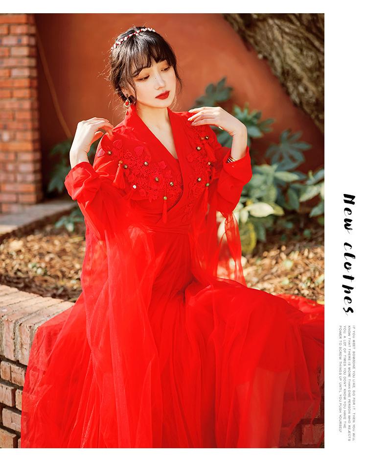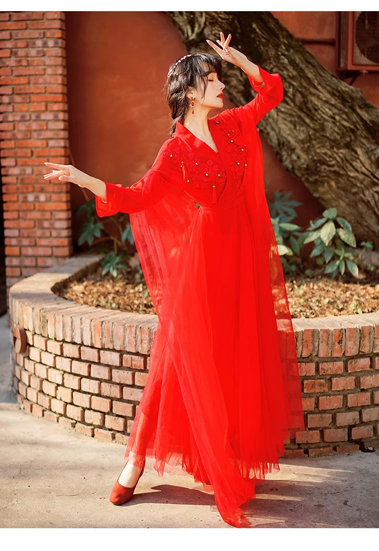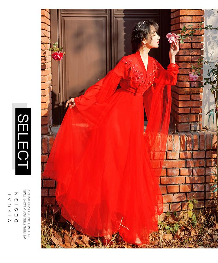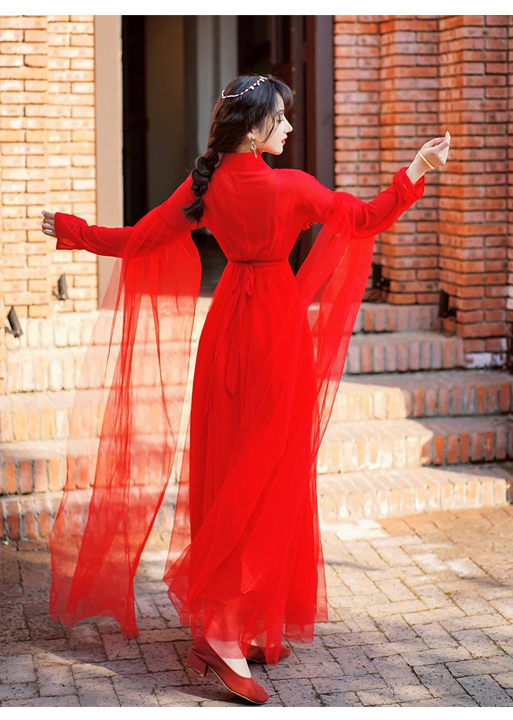Gran Venta Vestido Enagua Estilo Antiguo Chino Dinastía Han Mejorado Falda Rojo Desierto Traje de Hada Traje de Baile