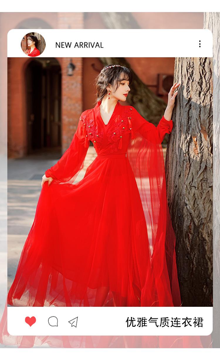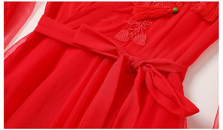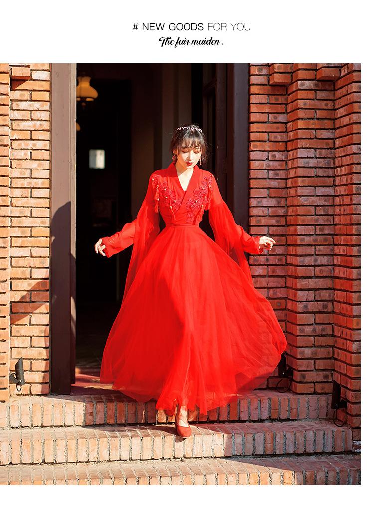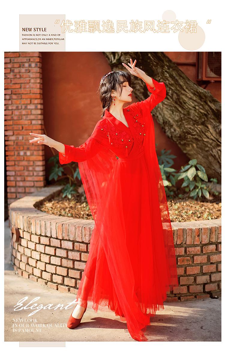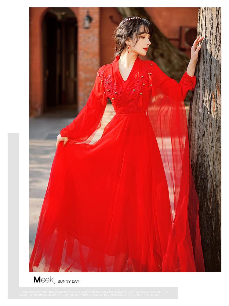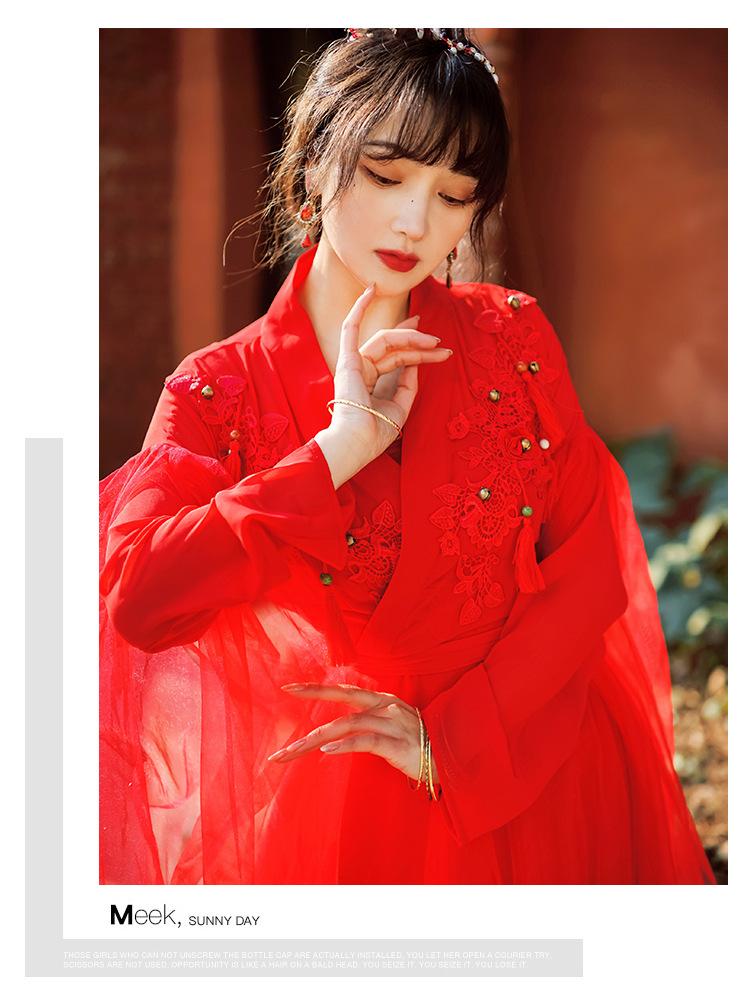 Gran Venta Vestido Enagua Estilo Antiguo Chino Dinastía Han Mejorado Falda Rojo Desierto Traje de Hada Traje de Baile