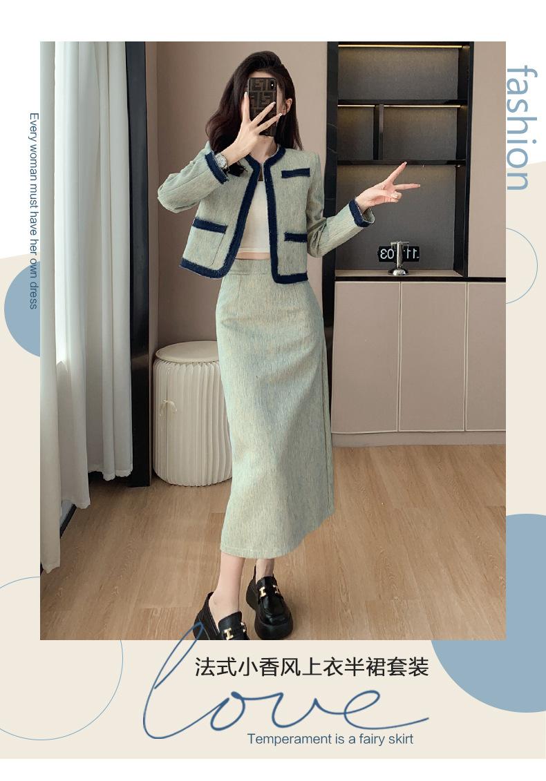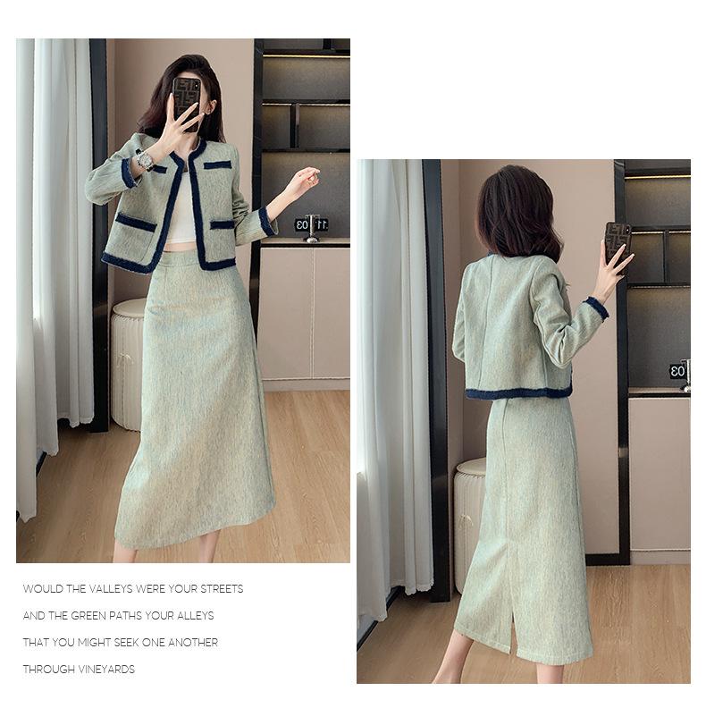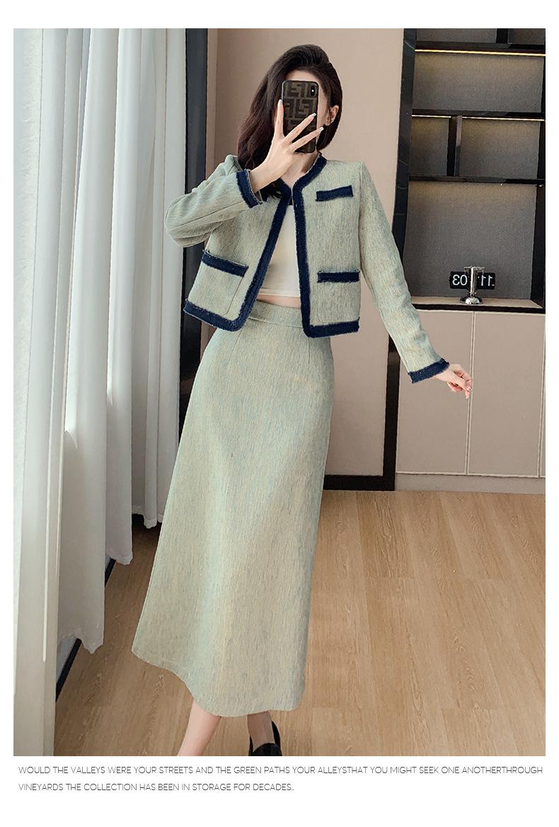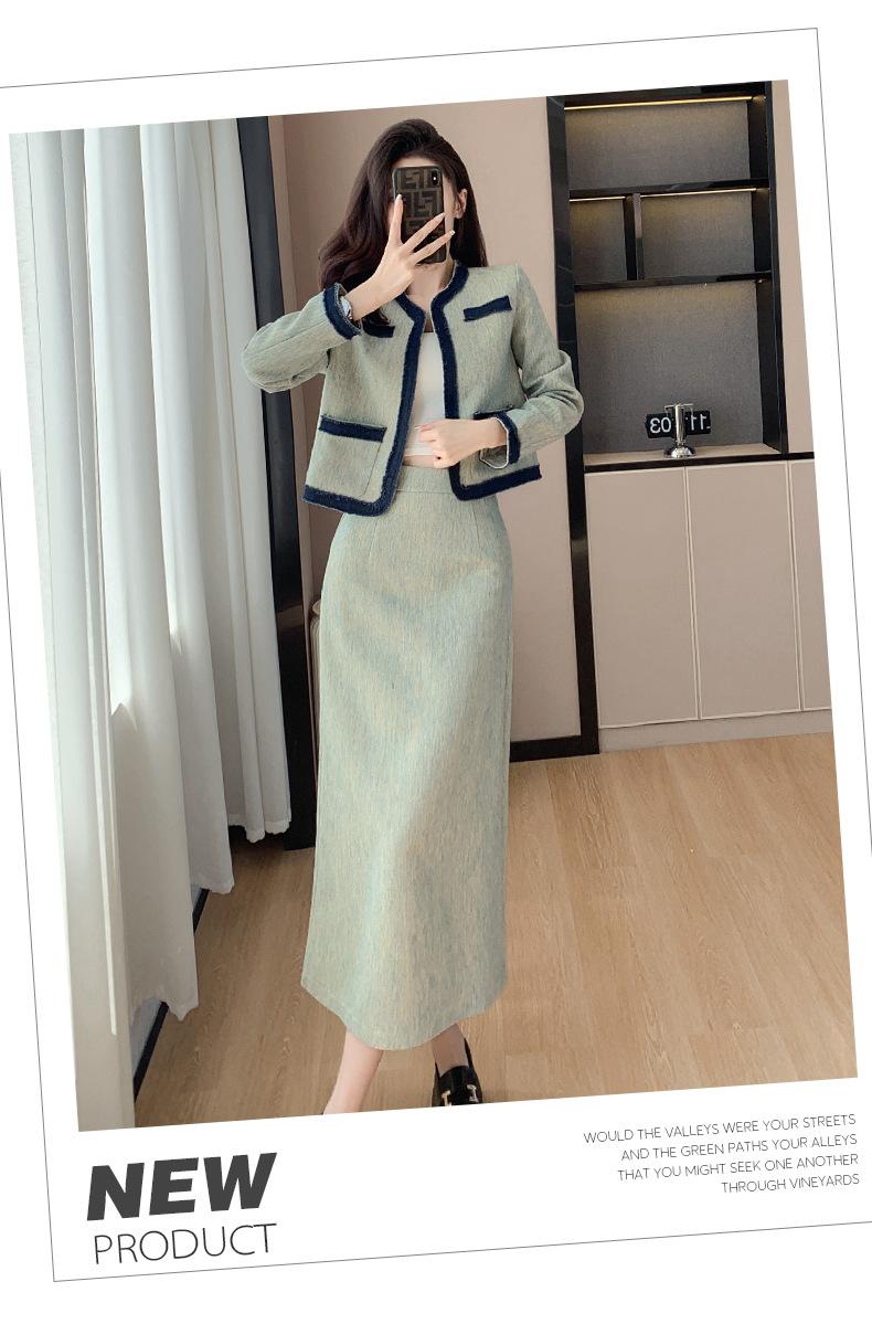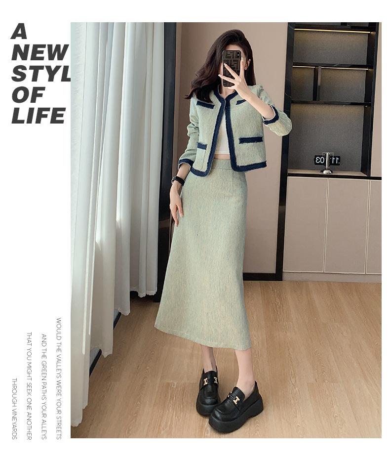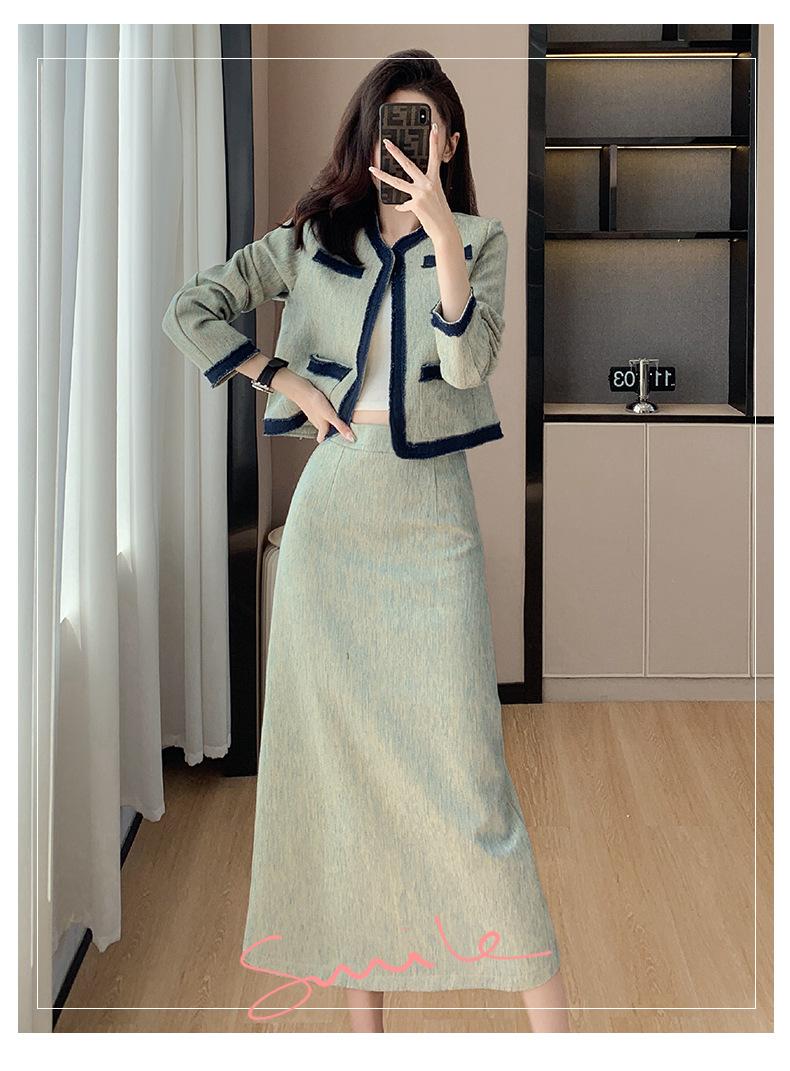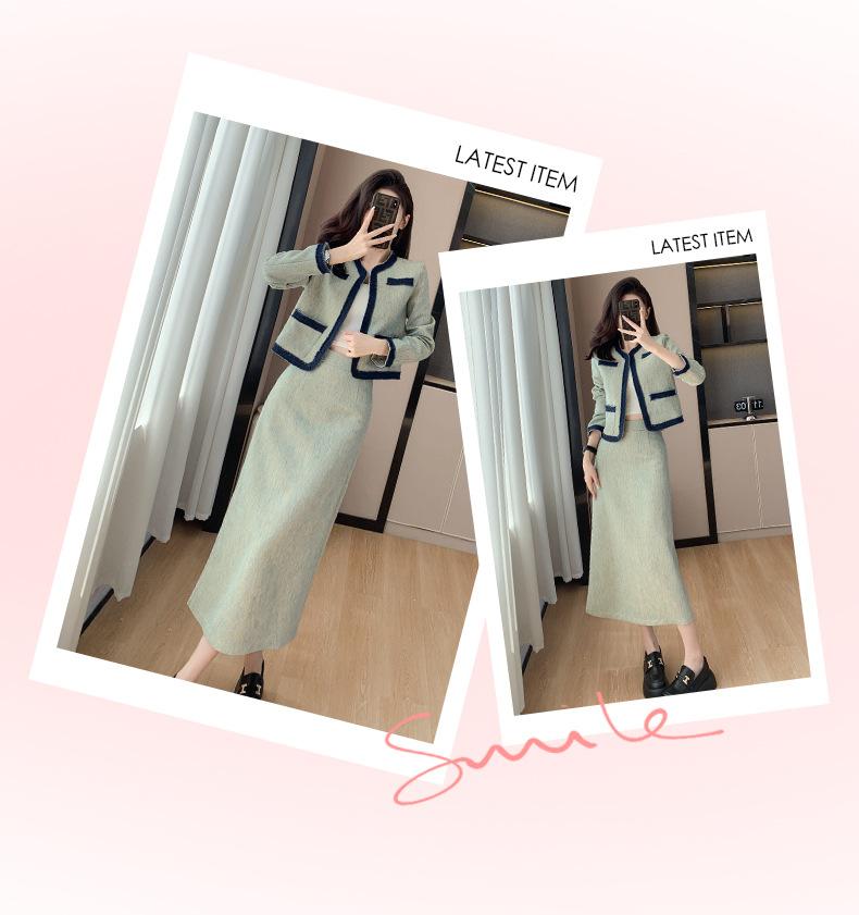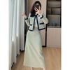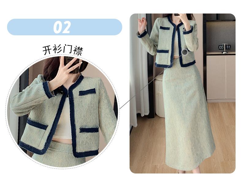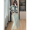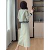 Foto Real de Chaqueta Cárdigan Francesa Estilo Tweed 2025 + Falda Versátil con Abertura Drapeada Conjunto de Dos Piezas para Mujer