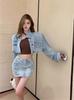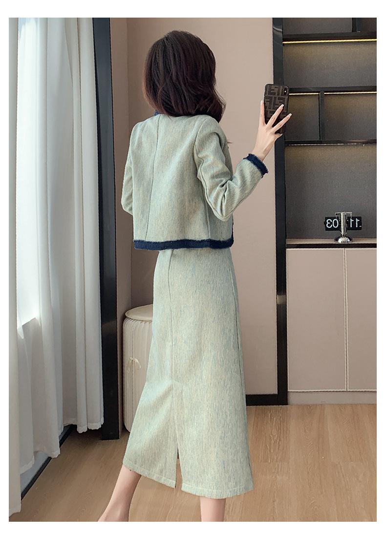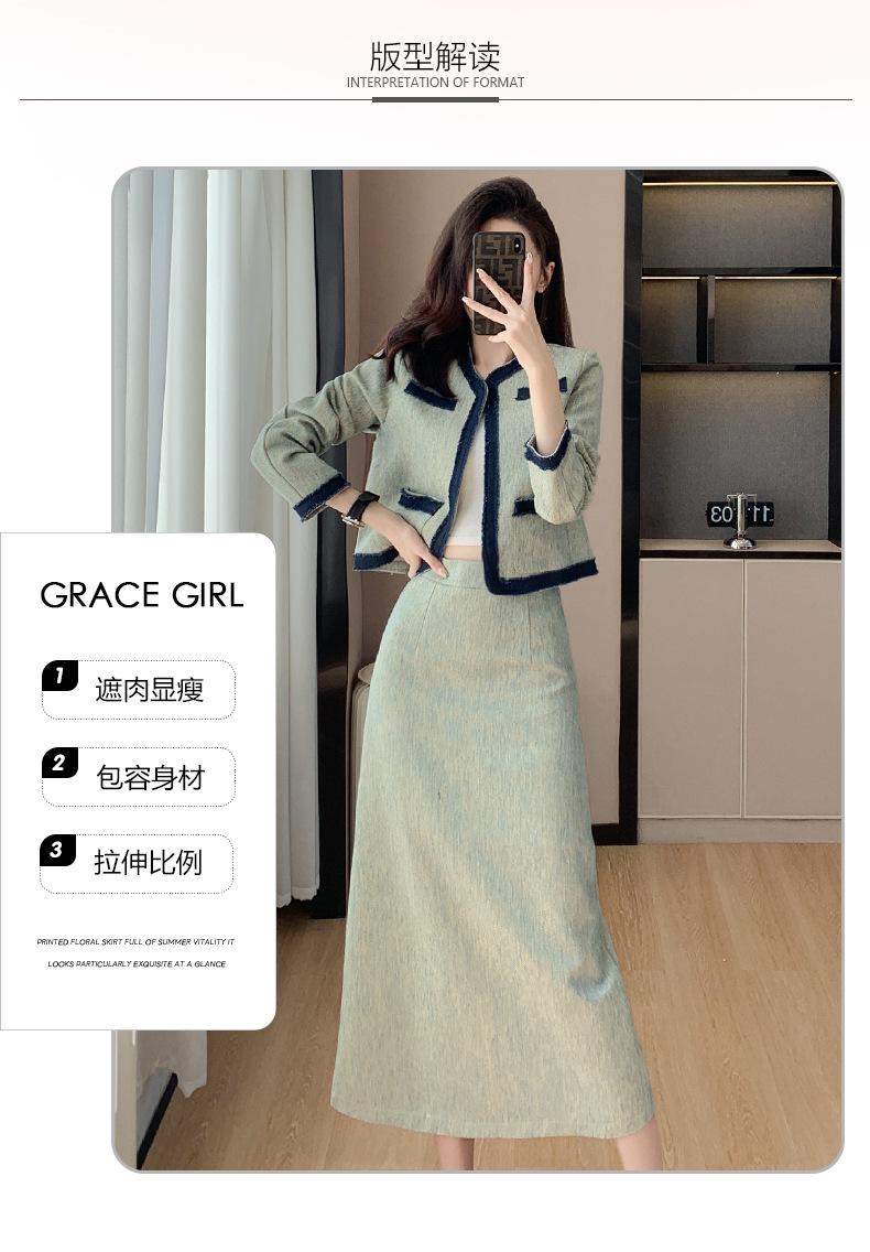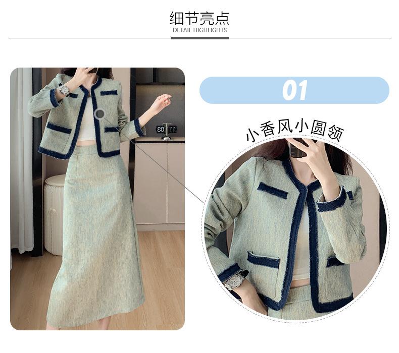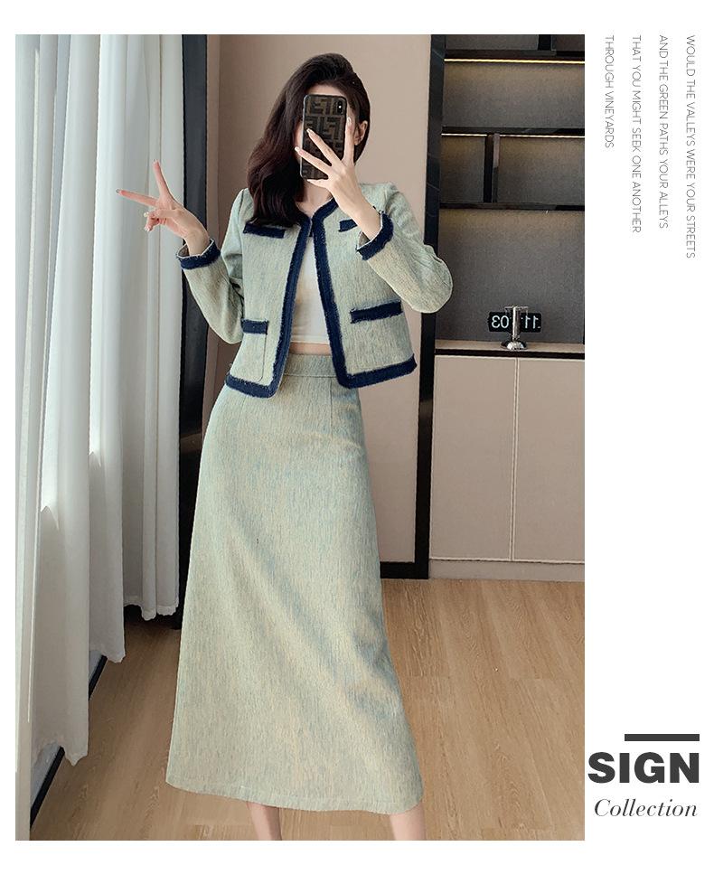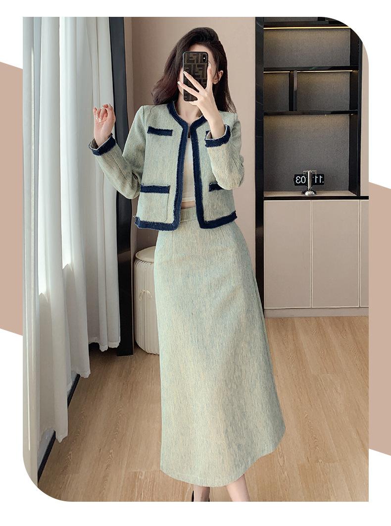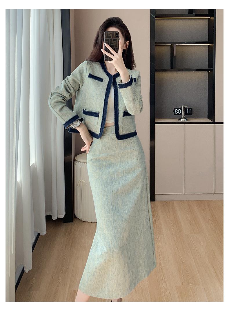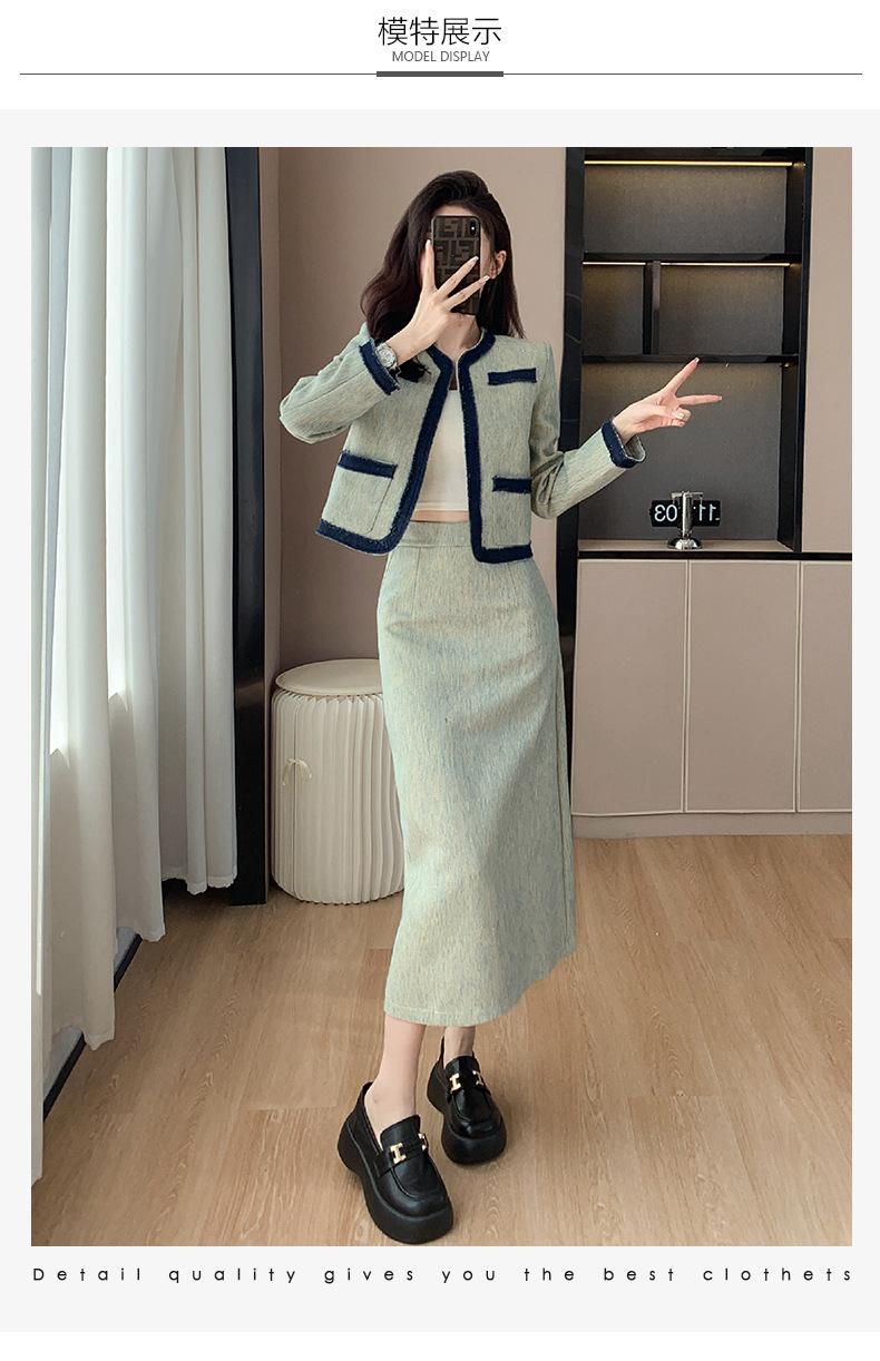 Foto Real de Chaqueta Cárdigan Francesa Estilo Tweed 2025 + Falda Versátil con Abertura Drapeada Conjunto de Dos Piezas para Mujer