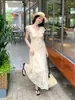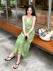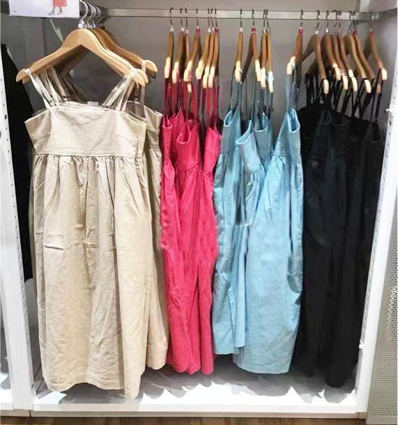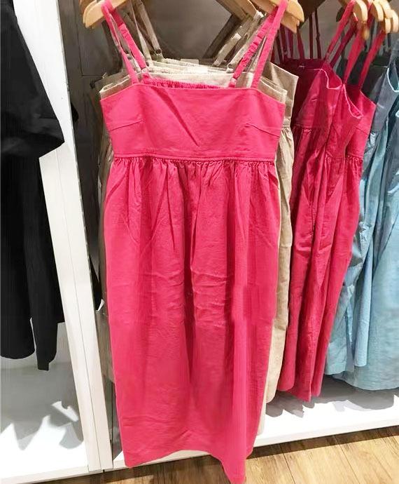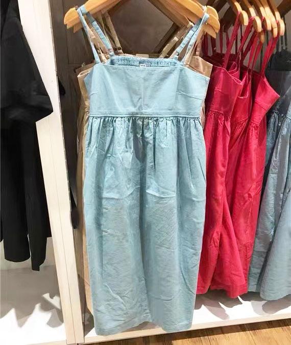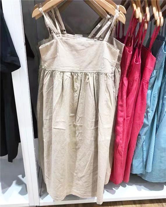 Vestido Japonés Primavera y Verano 2023 Nuevo Cuello Cuadrado Mezcla de Lino Fruncido Sin Mangas Adelgazante 458110