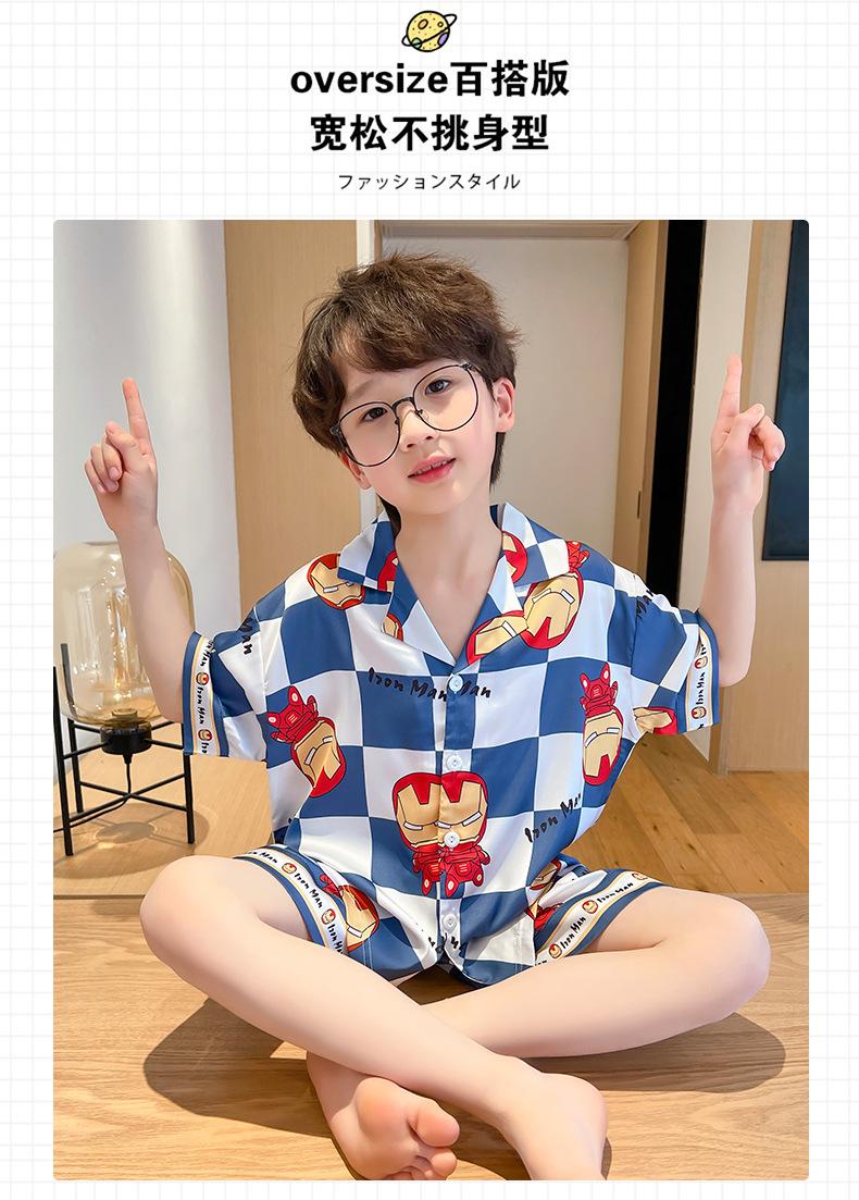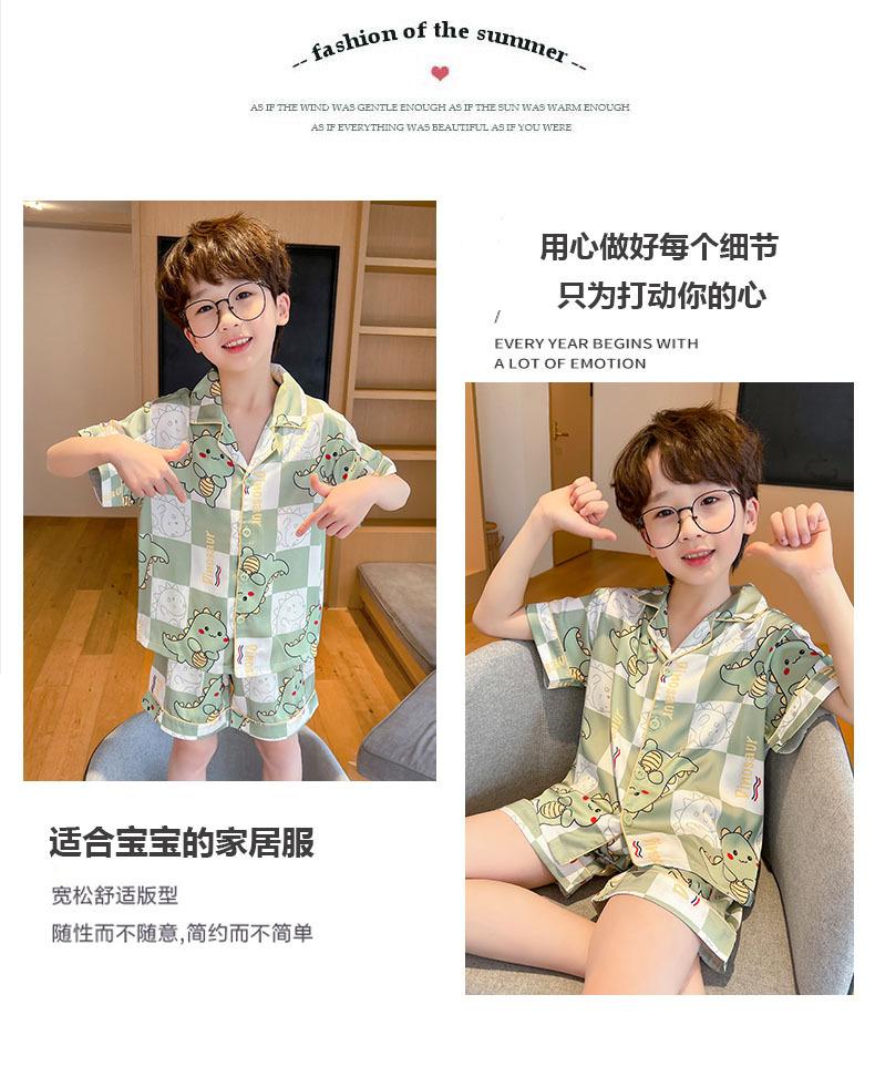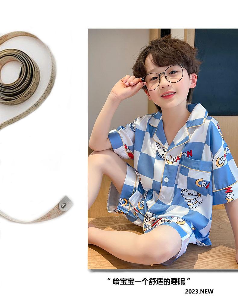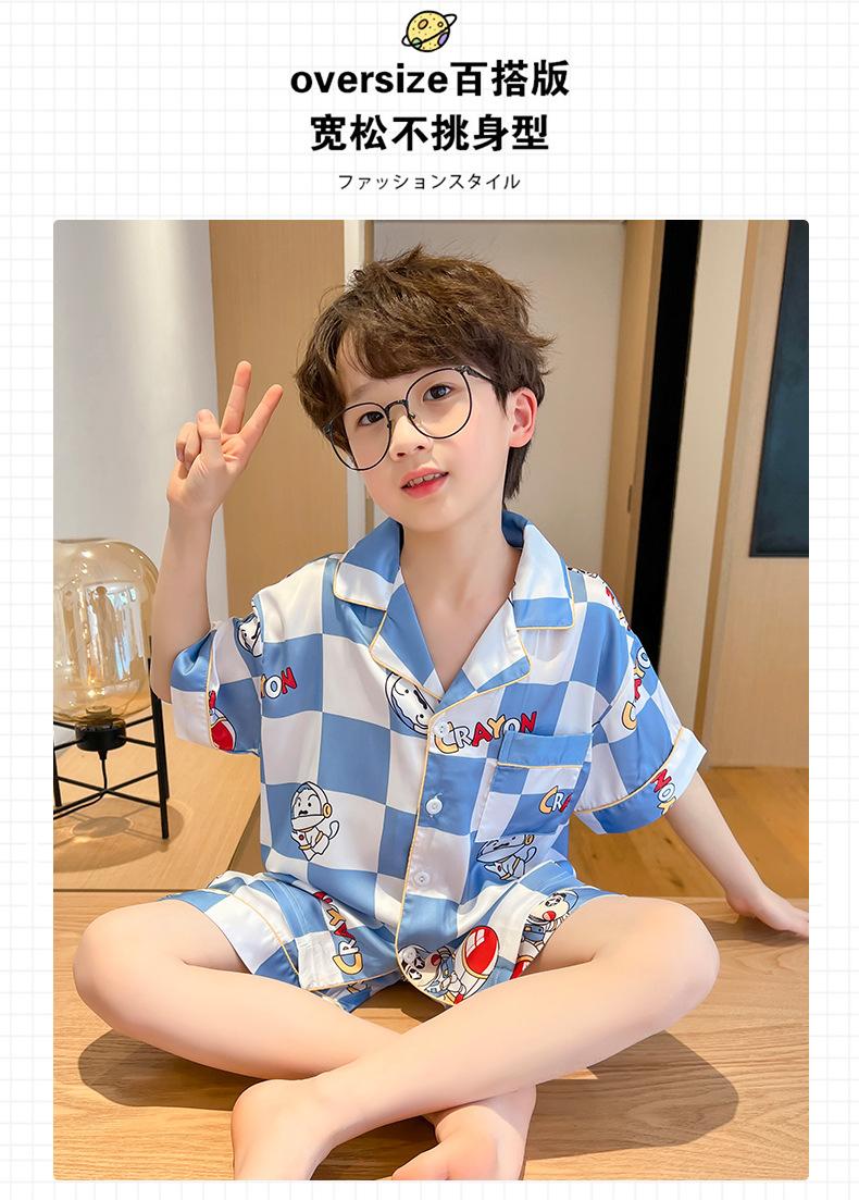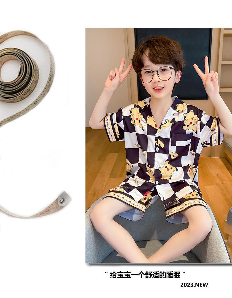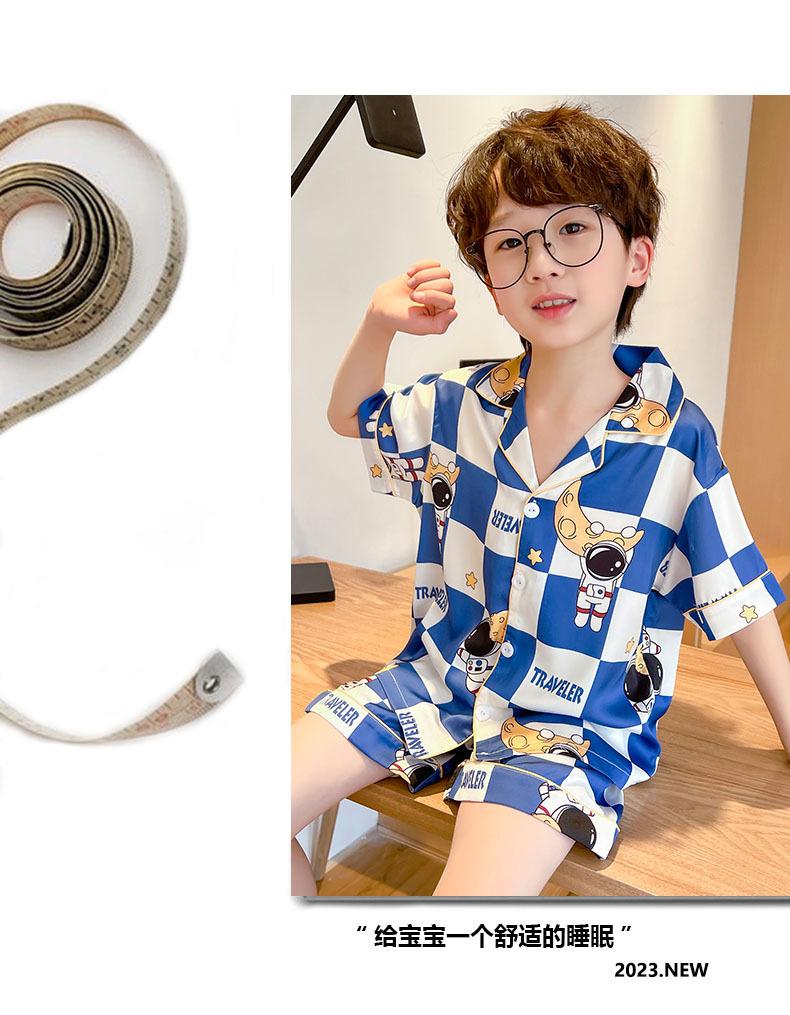 Pijamas de verano delgadas de seda de hielo de manga corta para niños 2023 nuevas para niños medianos y grandes de 12 años, ropa de aire acondicionado para niños