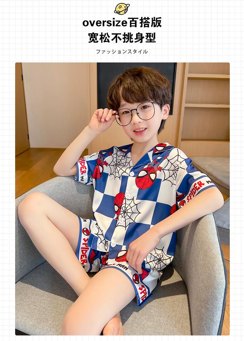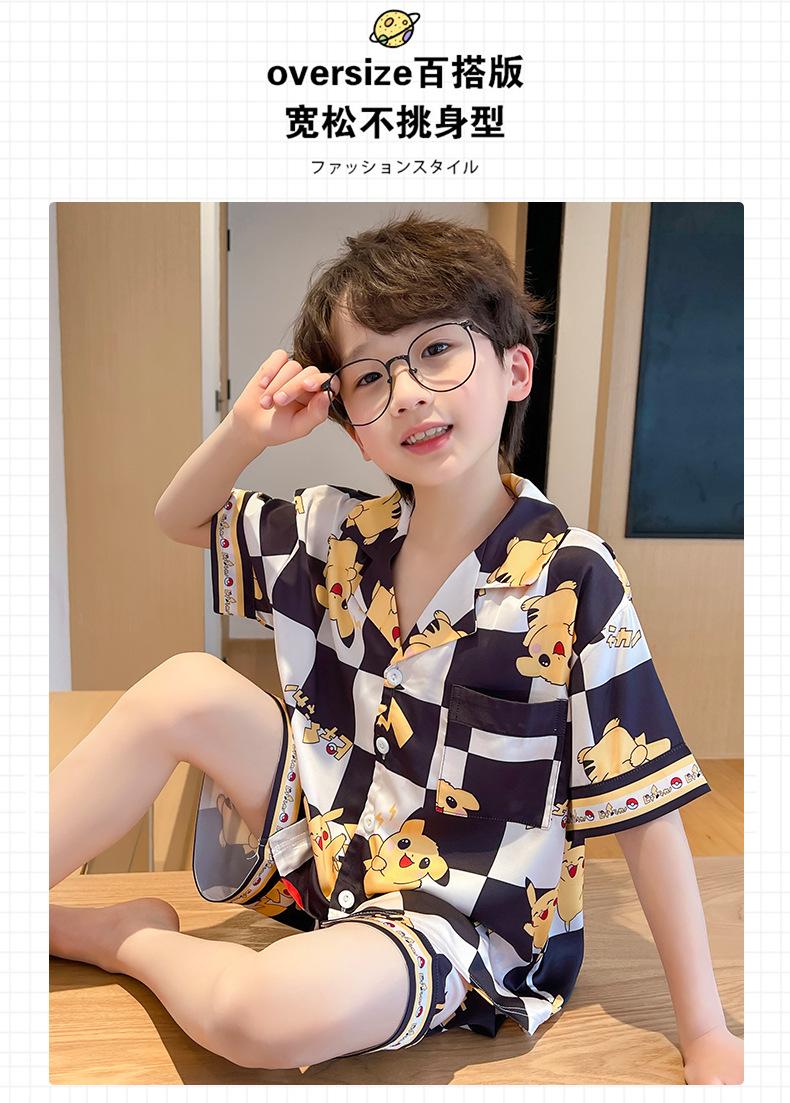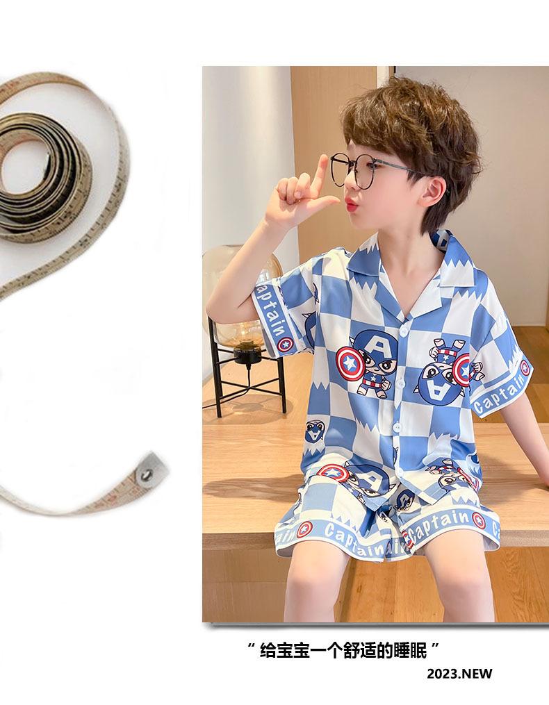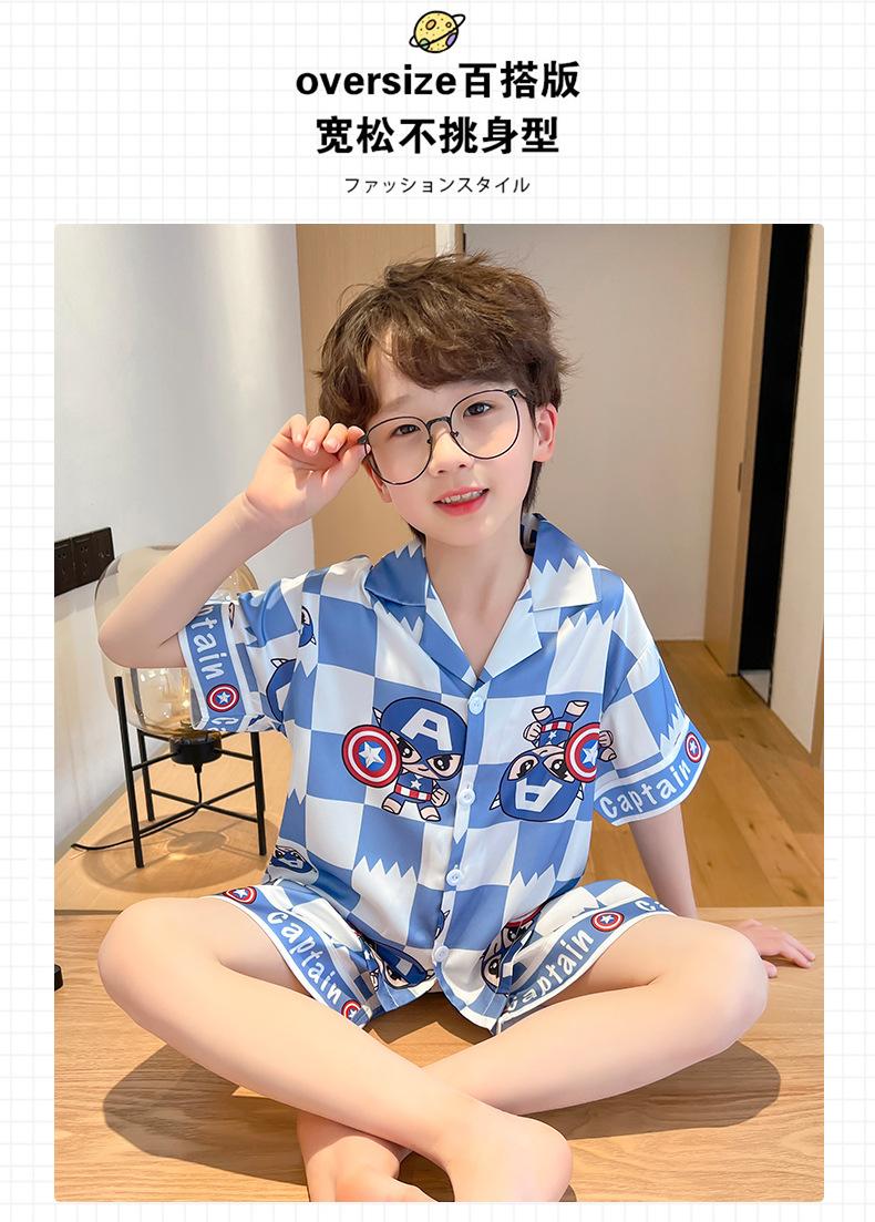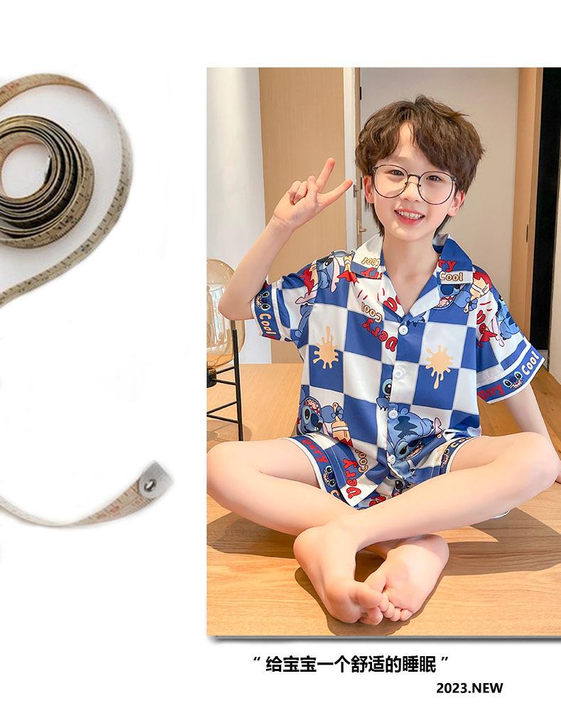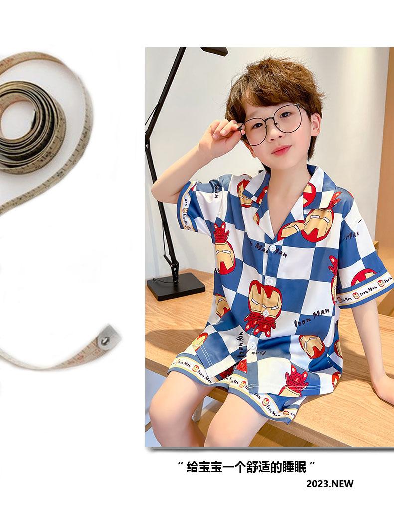 Pijamas de verano delgadas de seda de hielo de manga corta para niños 2023 nuevas para niños medianos y grandes de 12 años, ropa de aire acondicionado para niños