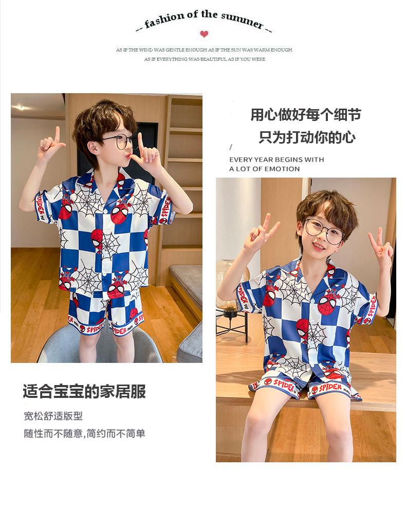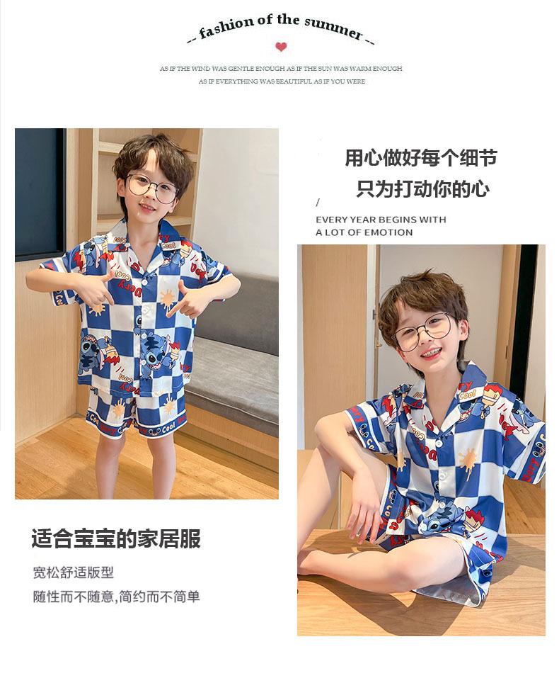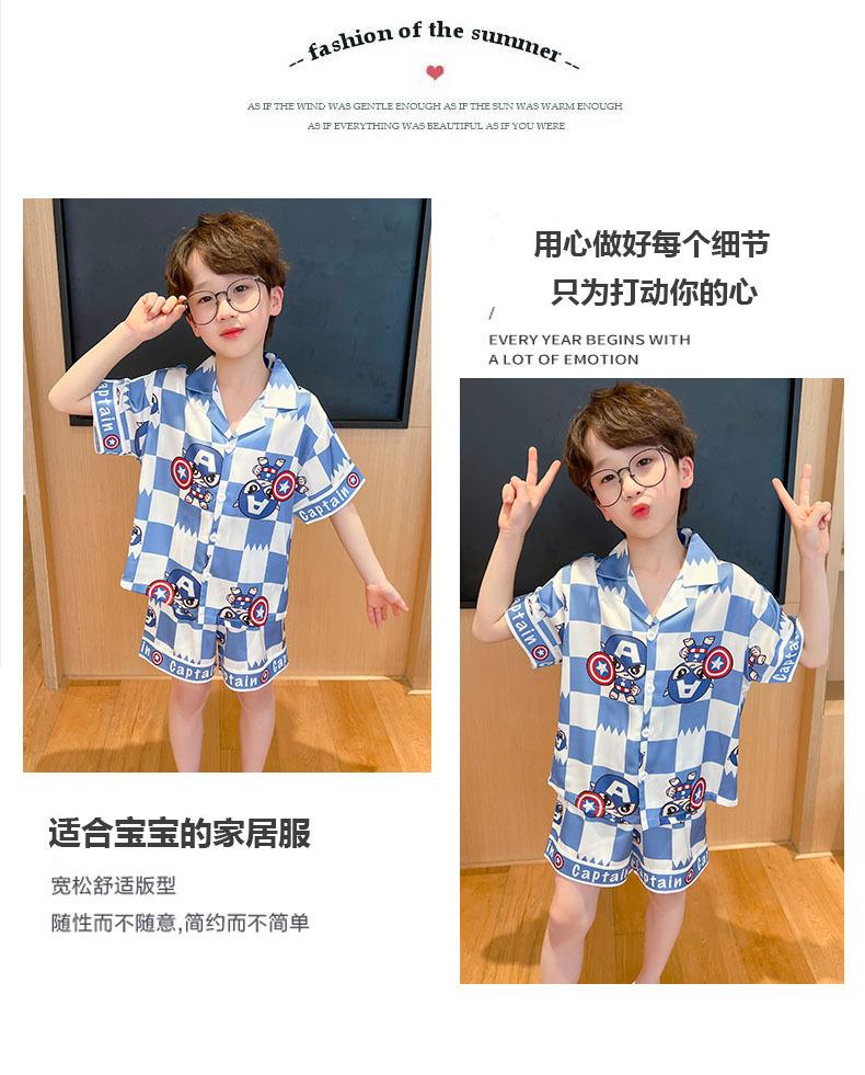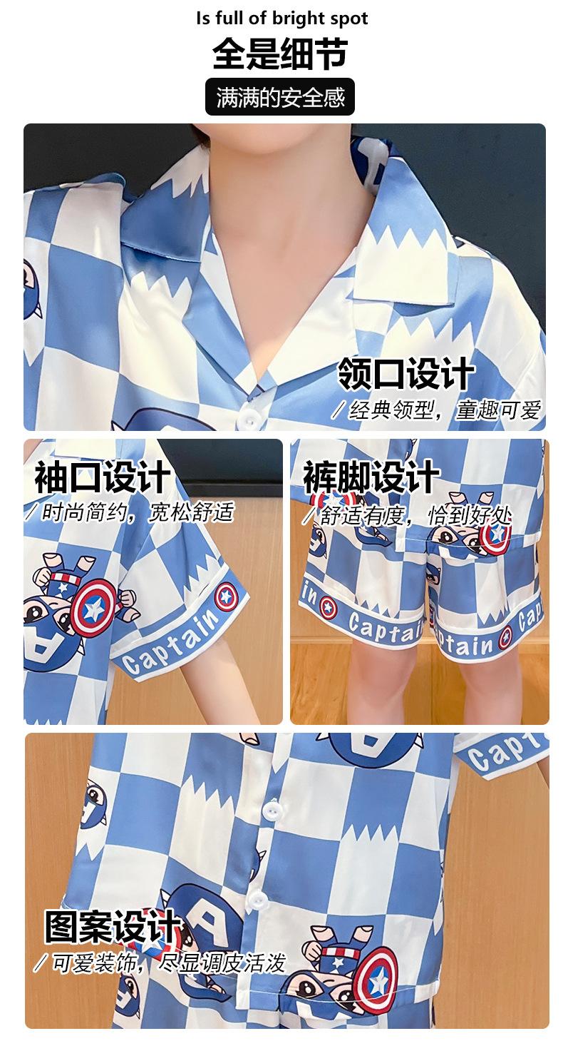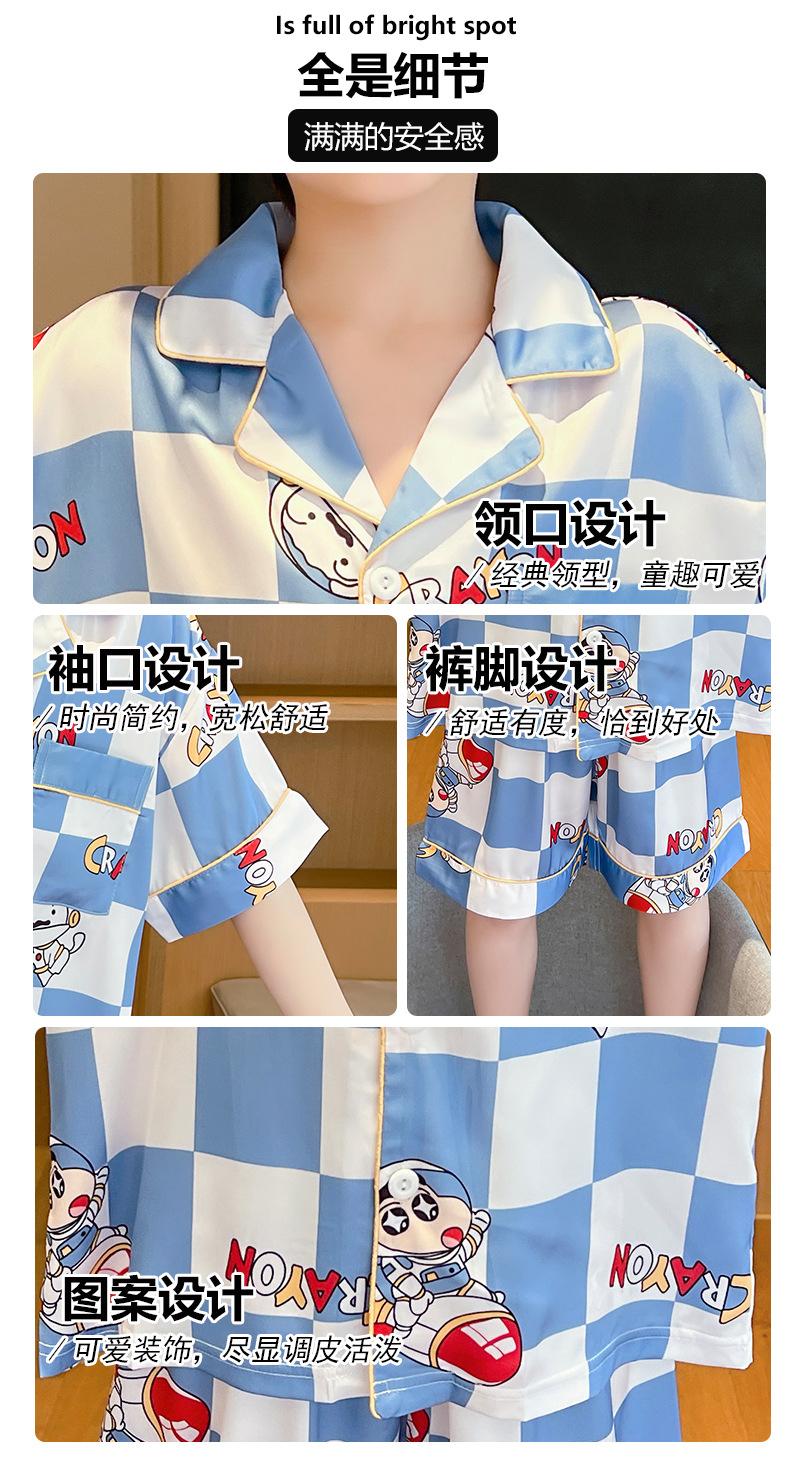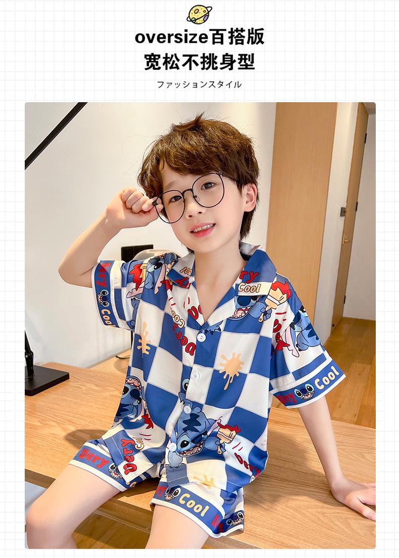 Pijamas de verano delgadas de seda de hielo de manga corta para niños 2023 nuevas para niños medianos y grandes de 12 años, ropa de aire acondicionado para niños