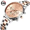 Reloj Hannah Martin multifunción con cronógrafo, calendario, mariposa, doble cierre, resistente al agua, para mujer, dorado