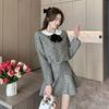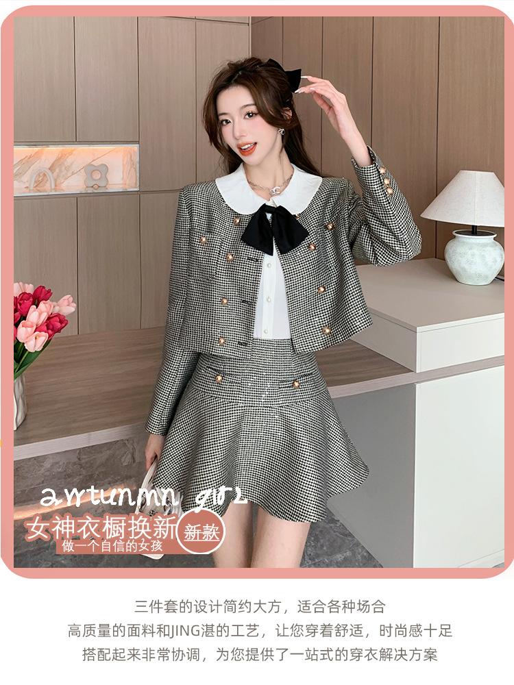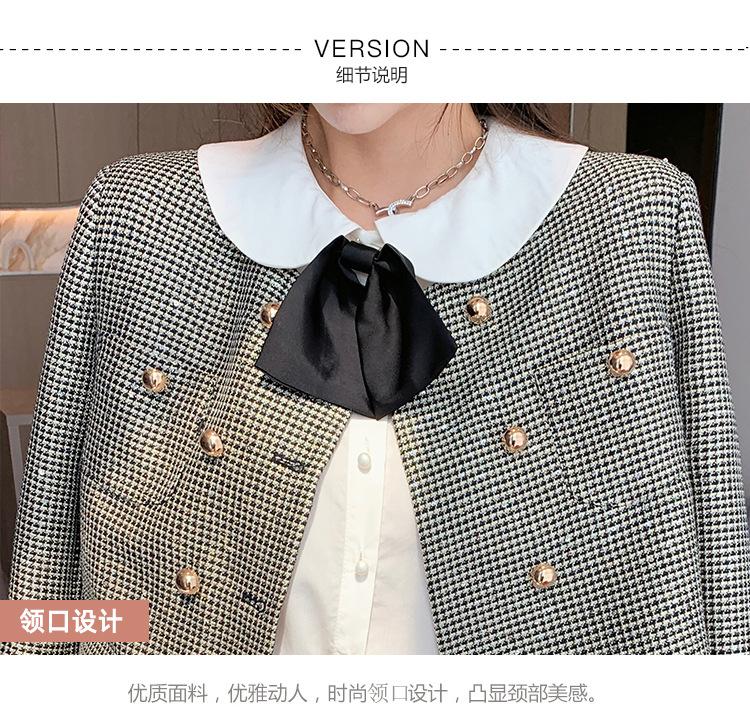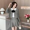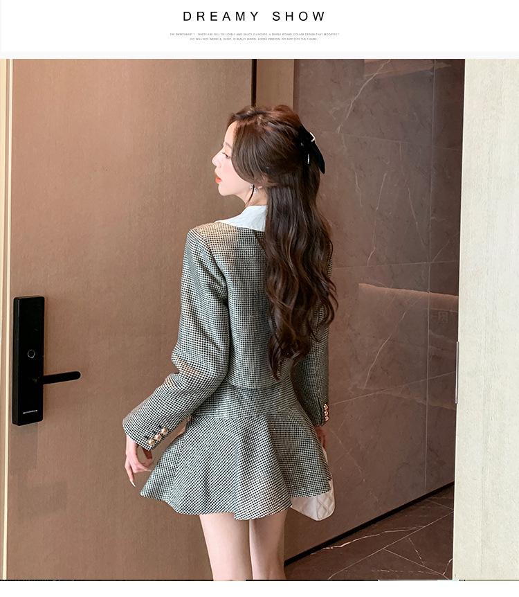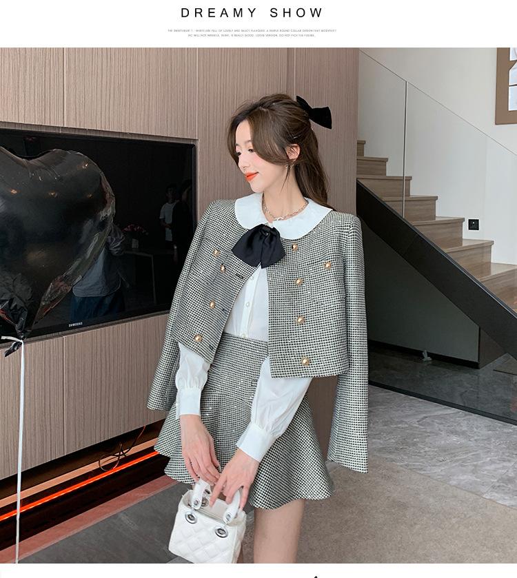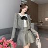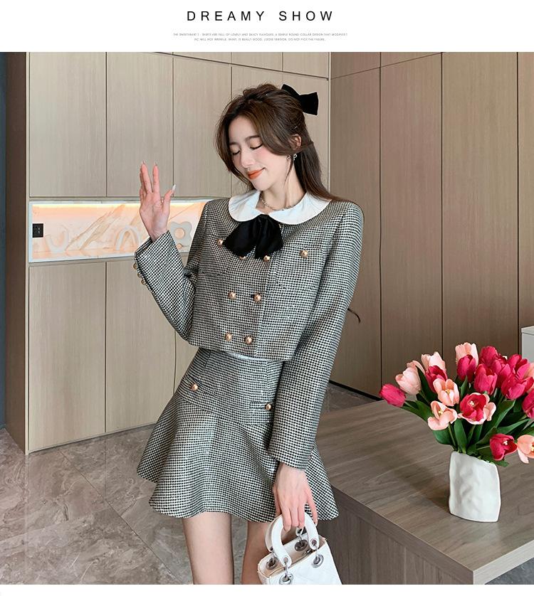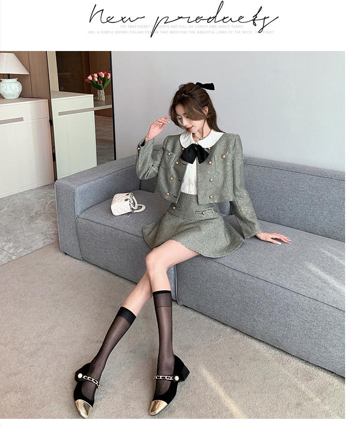 Foto real 2025 en stock temperamento socialité lentejuelas cuadros pequeño viento fragante abrigo primavera y otoño falda línea A conjunto de dos piezas