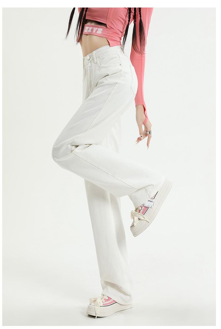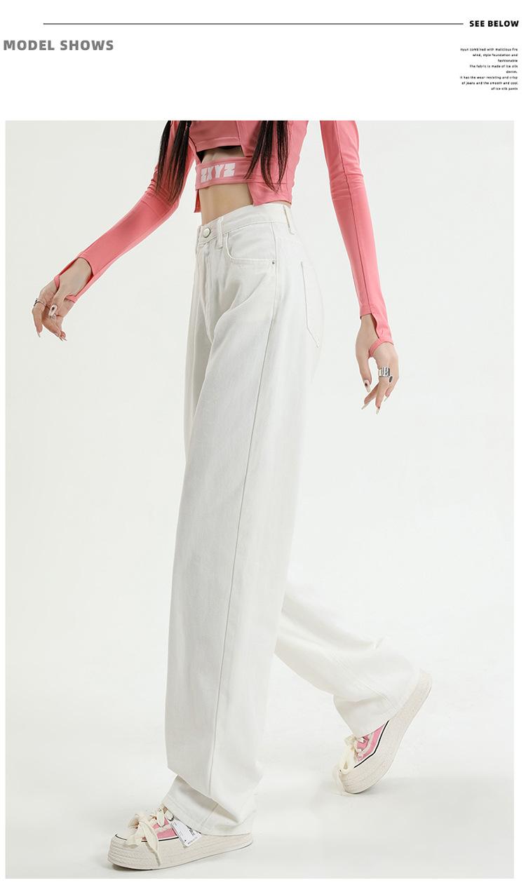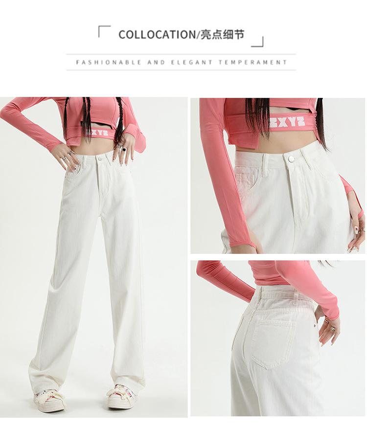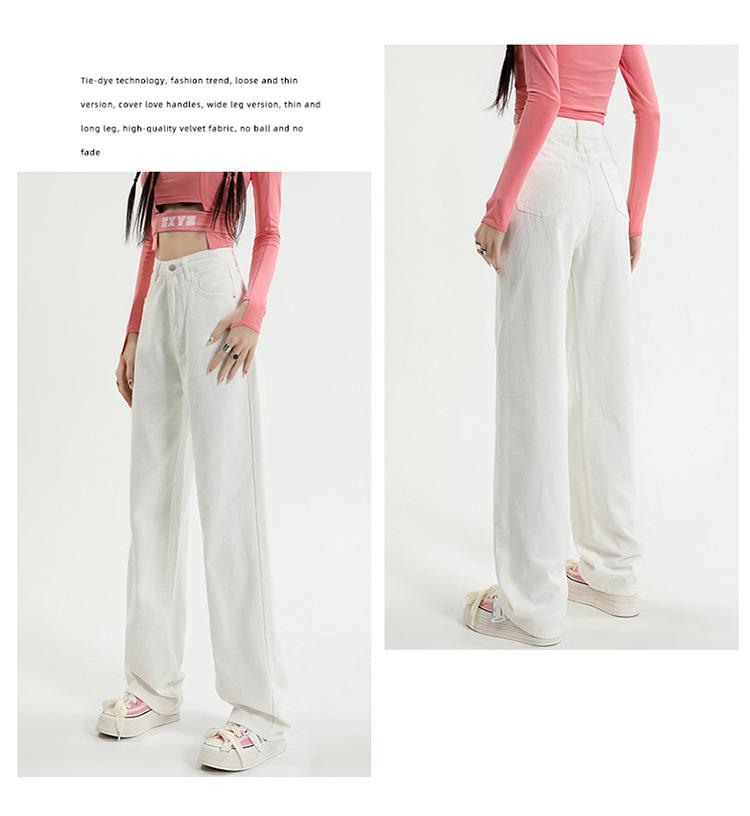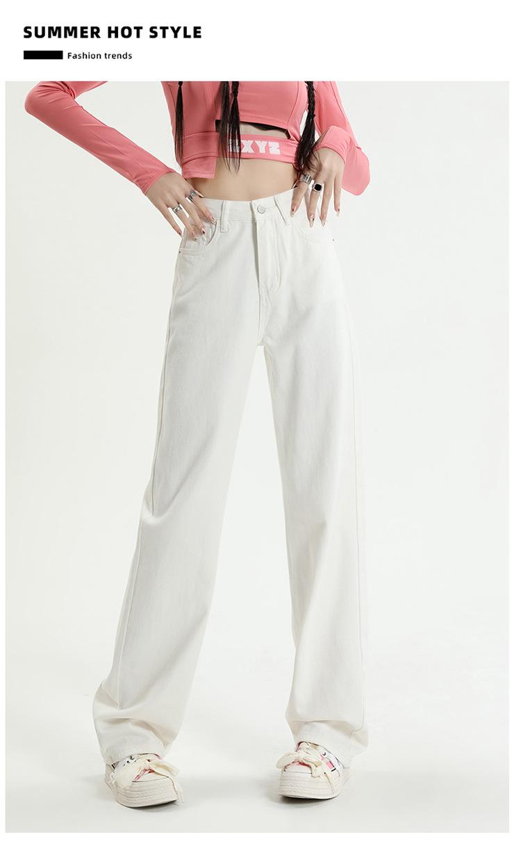 Pantalones vaqueros blancos para mujer, primavera 2024, nuevos, de pierna ancha, cintura alta, holgados, adelgazantes, rectos, largos.